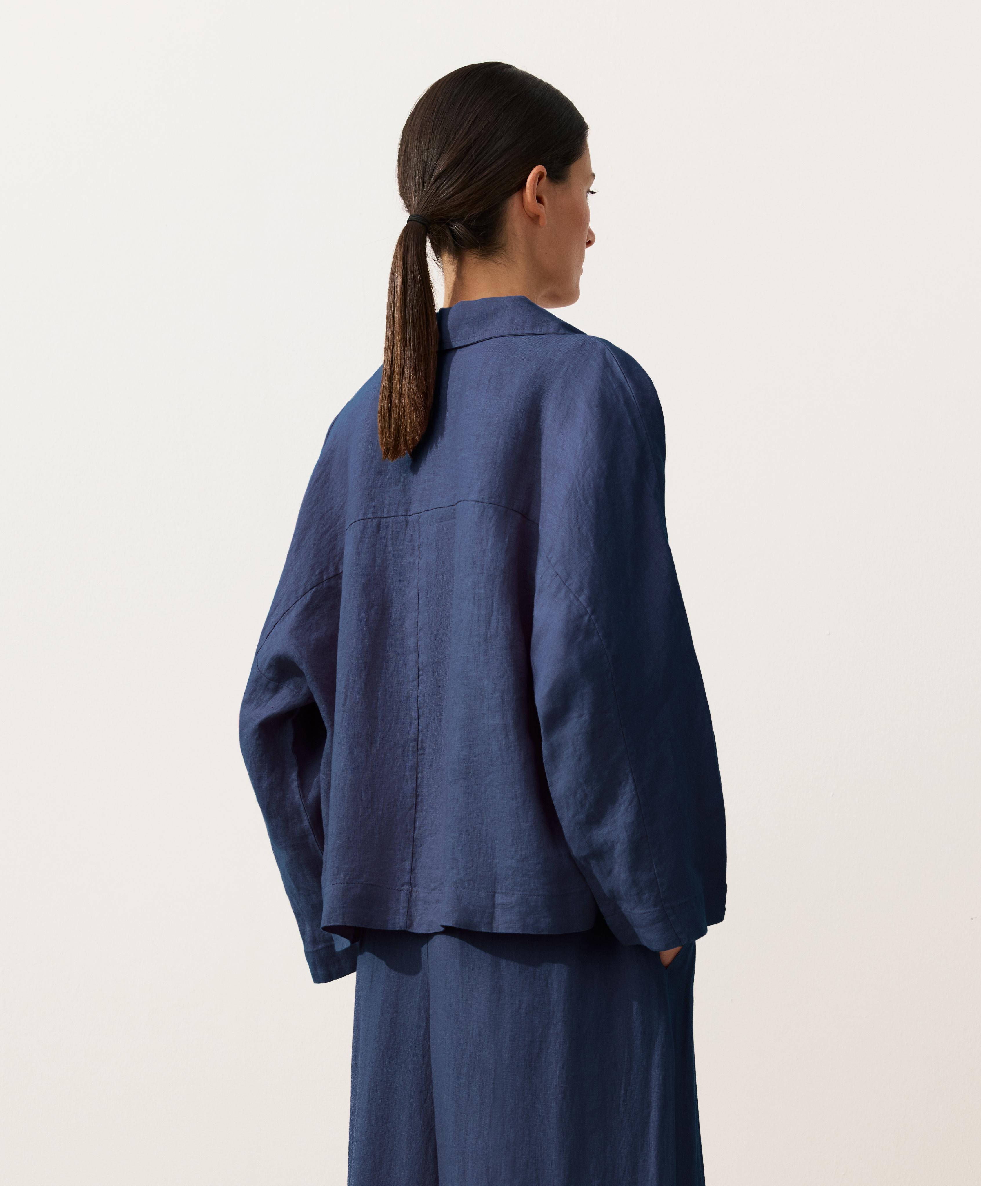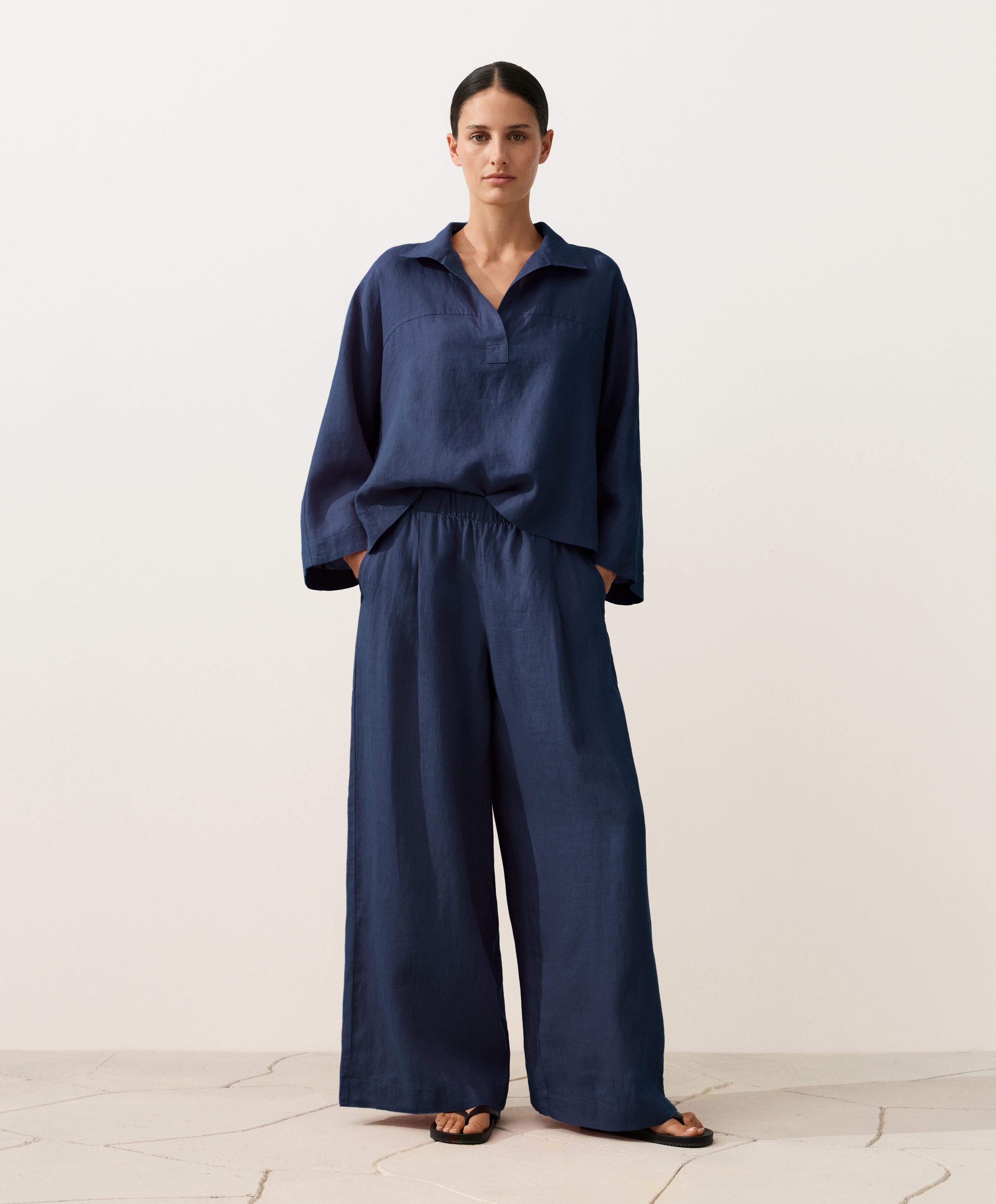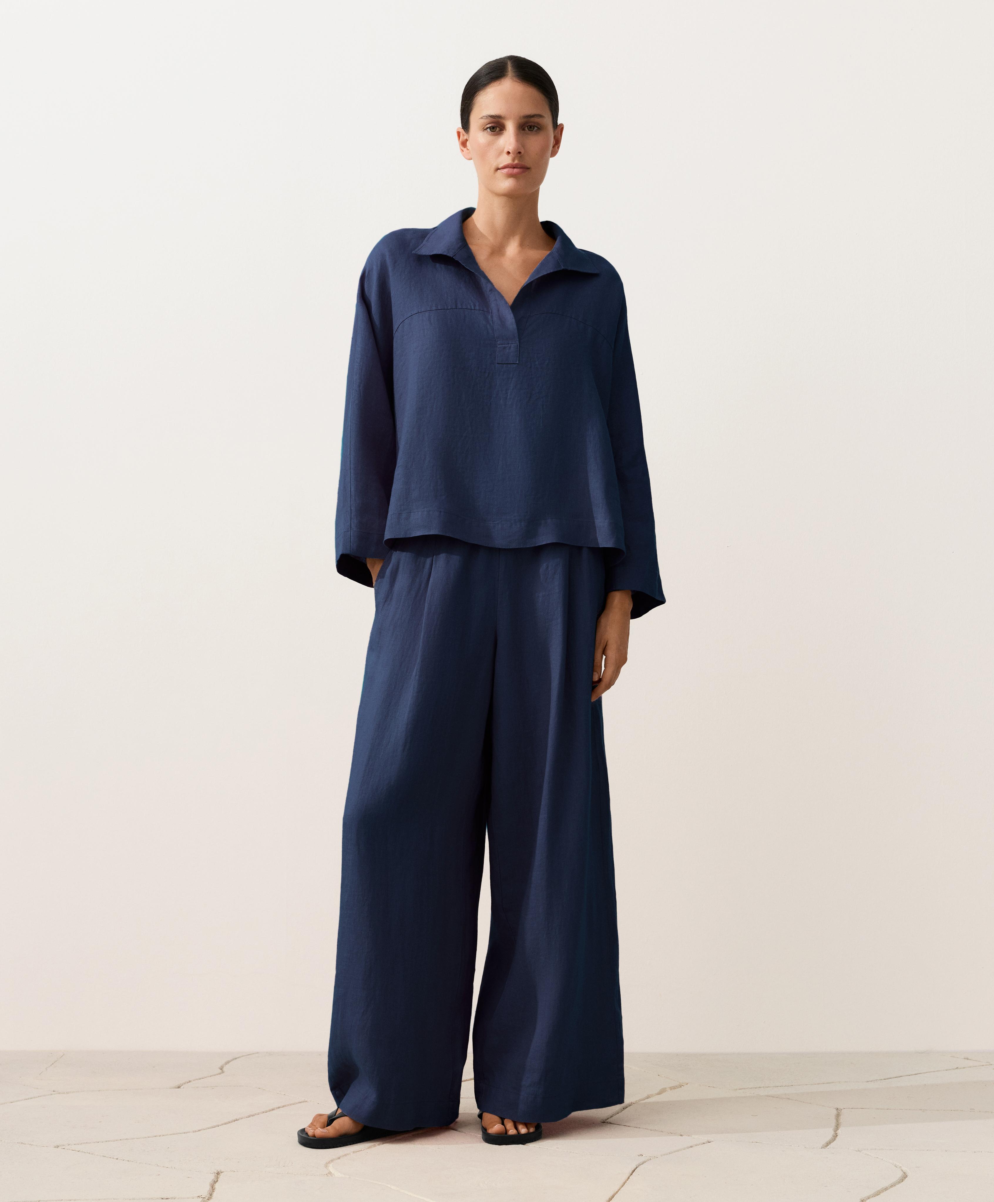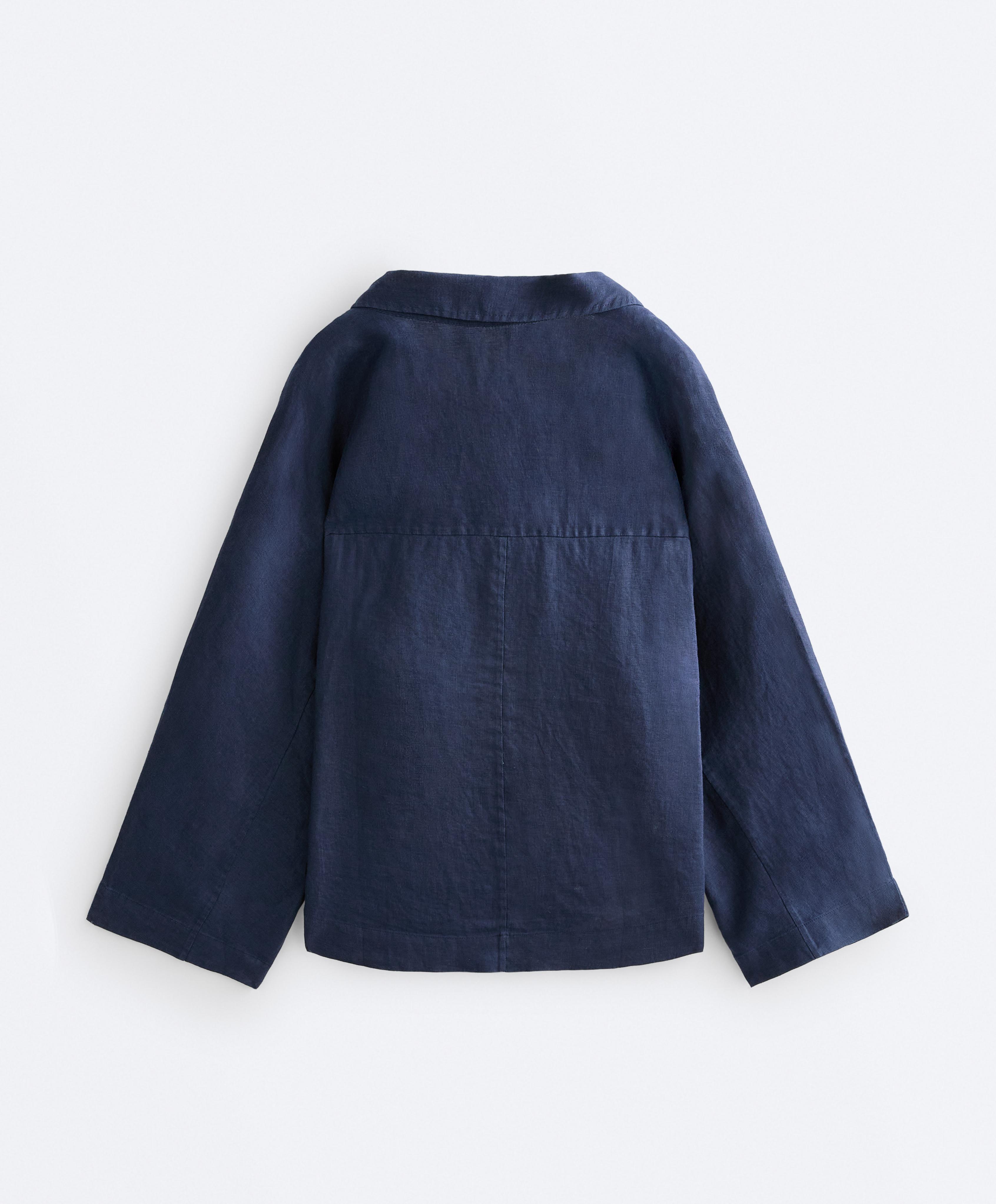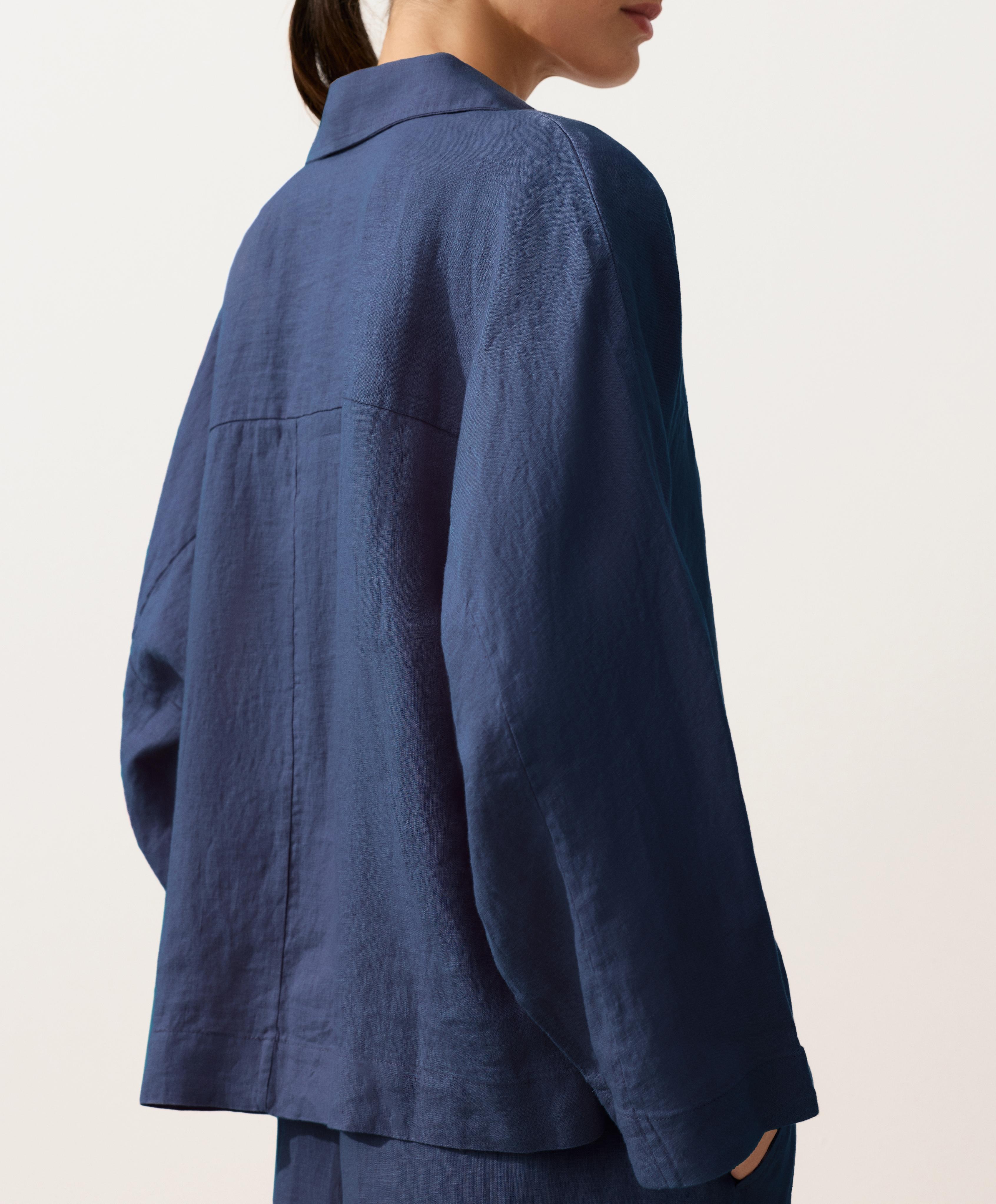 Oysho Рубашка-поло оверсайз с длинными рукавами из 100%-го льна, синий
