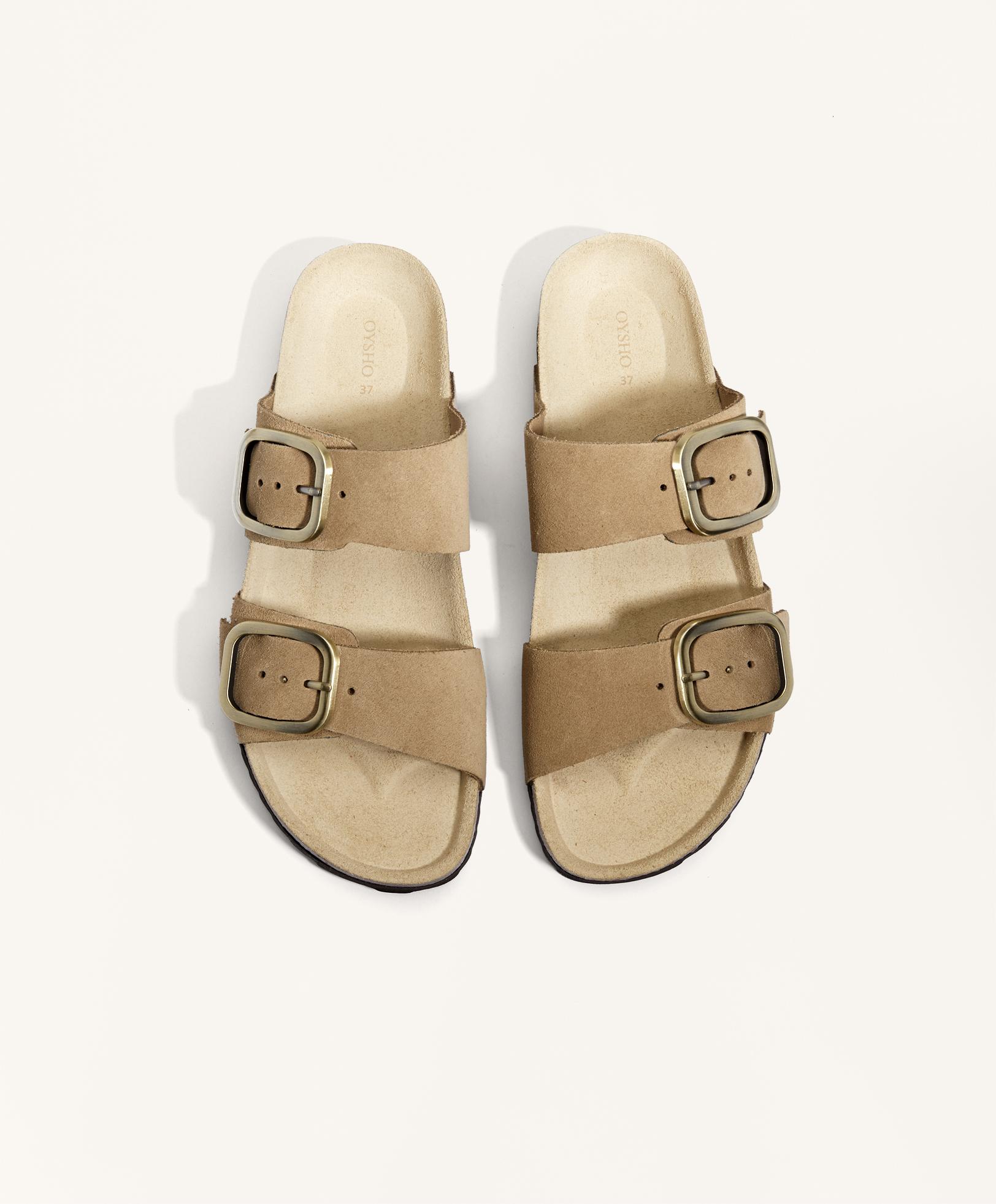 OYSHO Сандалии с двойным ремешком, песочный