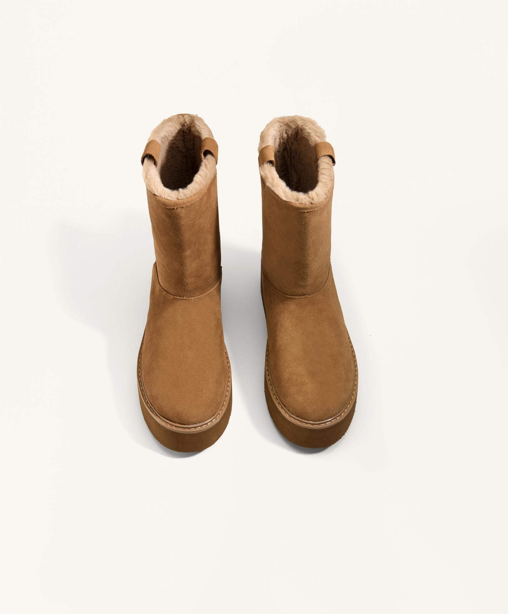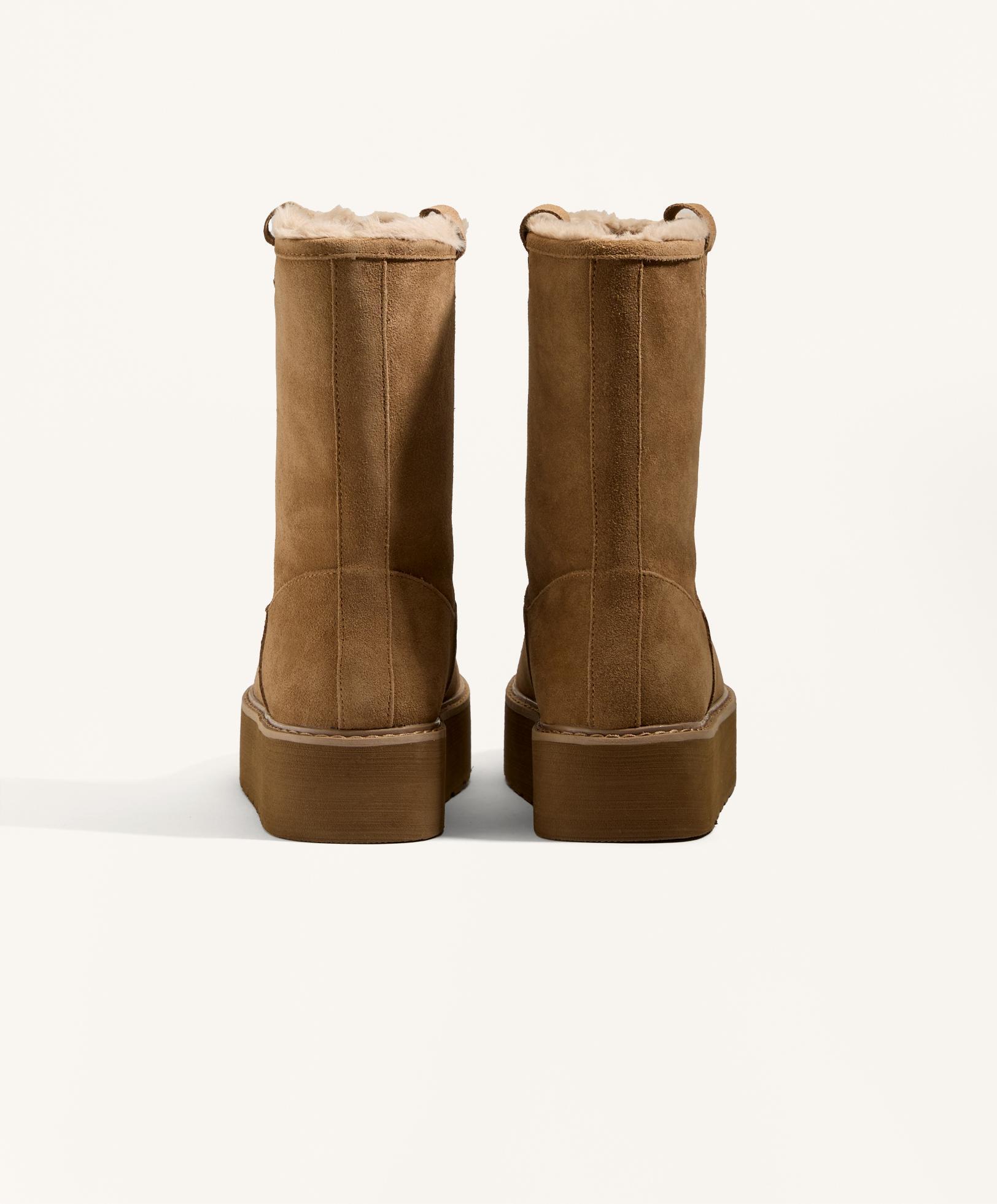 Ботинки из спилка. Изделие изготовлено из натуральной кожи, поэтому любые возможные пятна или изменения цвета являются естественными и подтверждают его подлинность. Высота подошвы: 4 см.