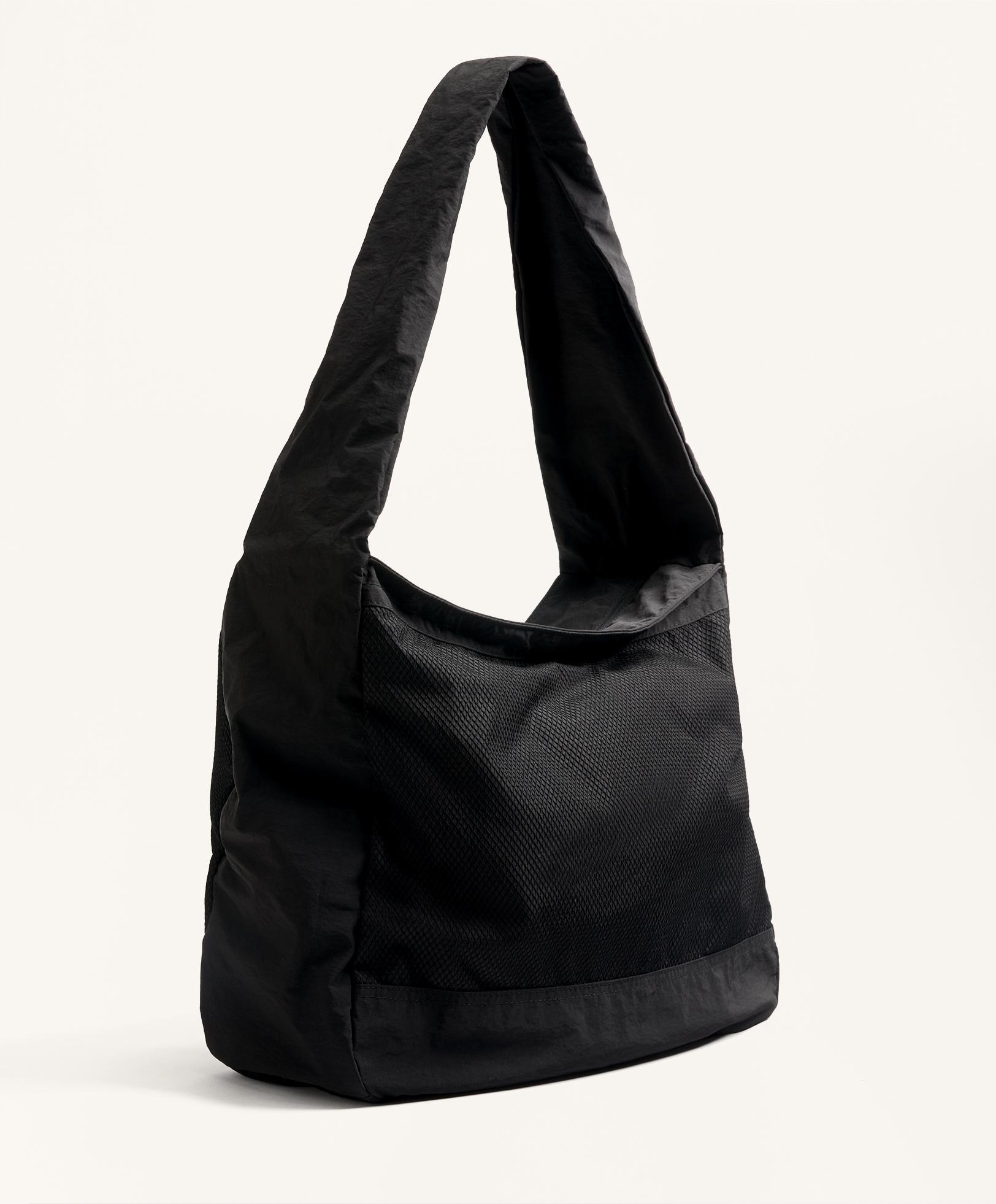 Сумка-шоппер из сетчатой ткани. Внутренний карман. Все застёжки – молнии. Размеры: 36 x 53 x 14 см. Длина ручки: 35 см. Объём: 35 л.