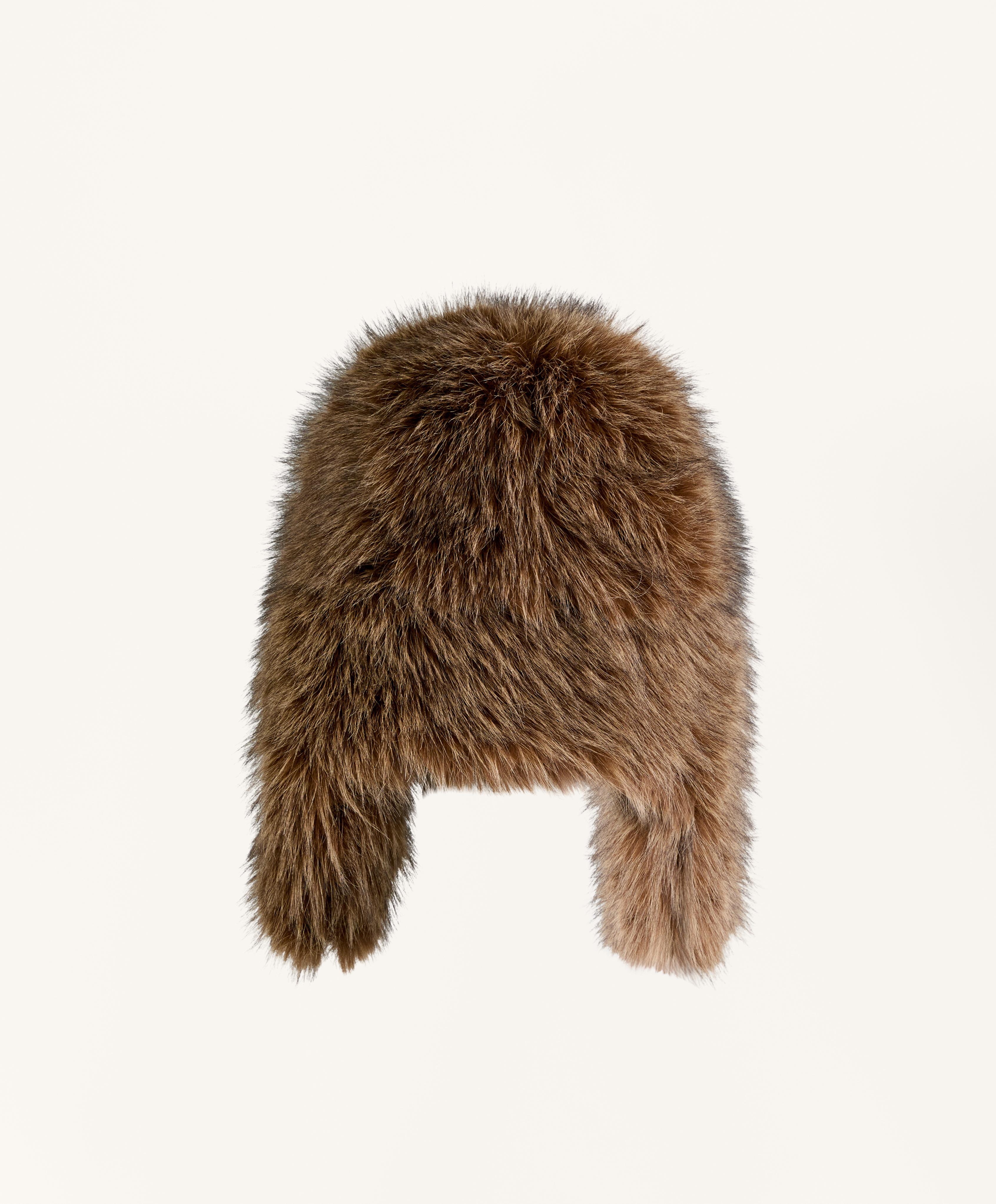Oysho Шапка-авиатор из искусственного меха, коричневый