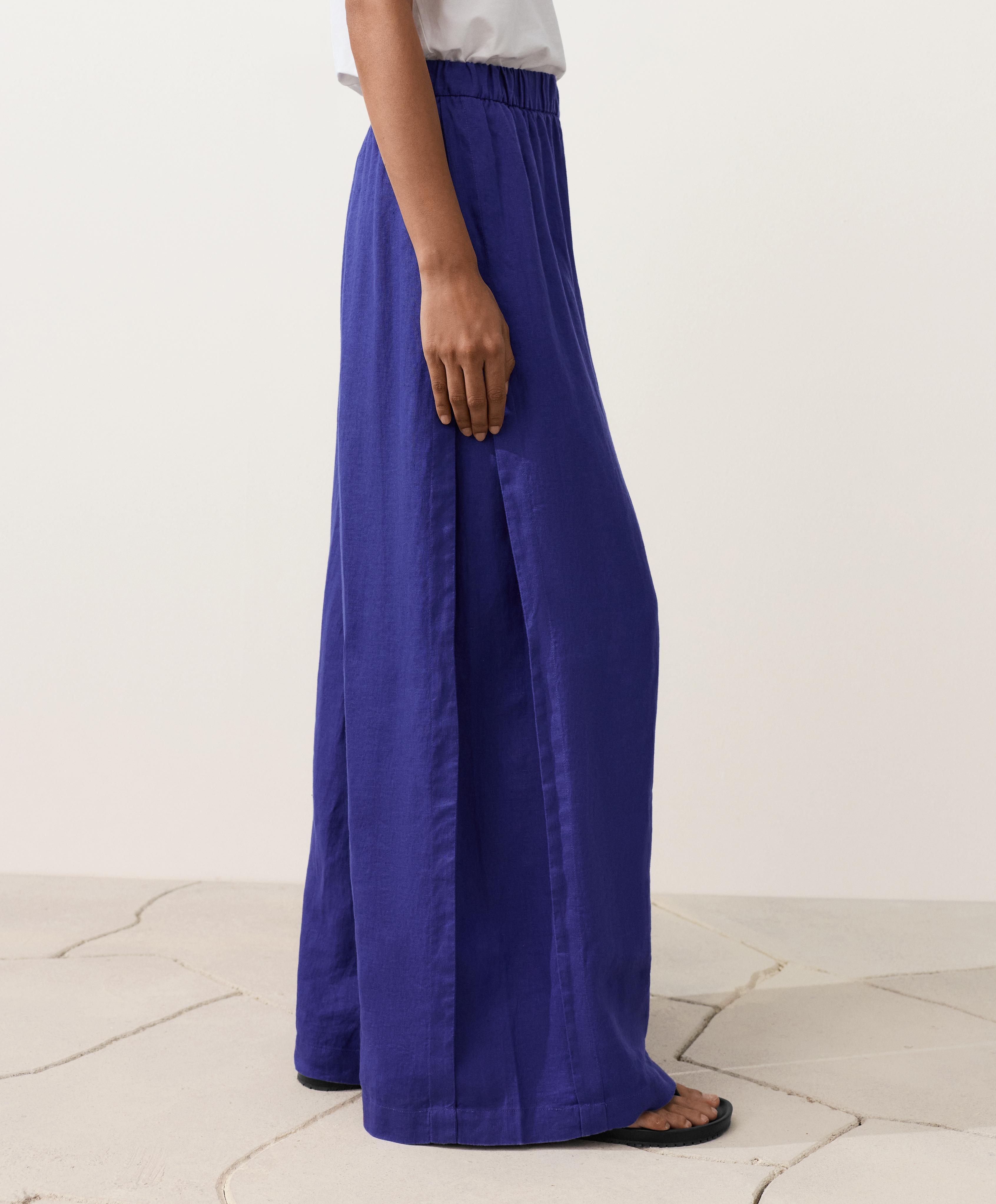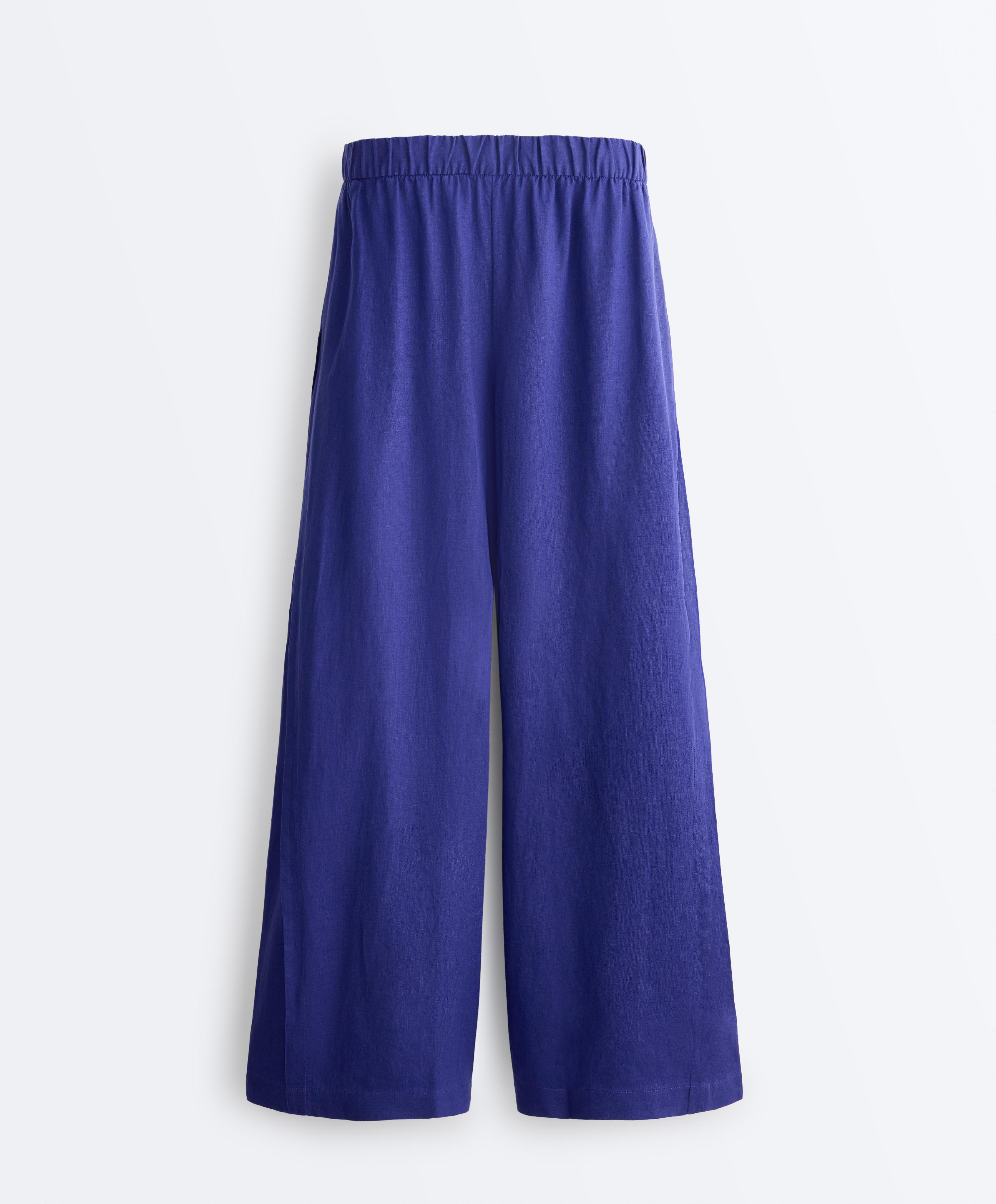 OYSHO Широкие брюки из 100% льна с боковой складкой, кобальтовый