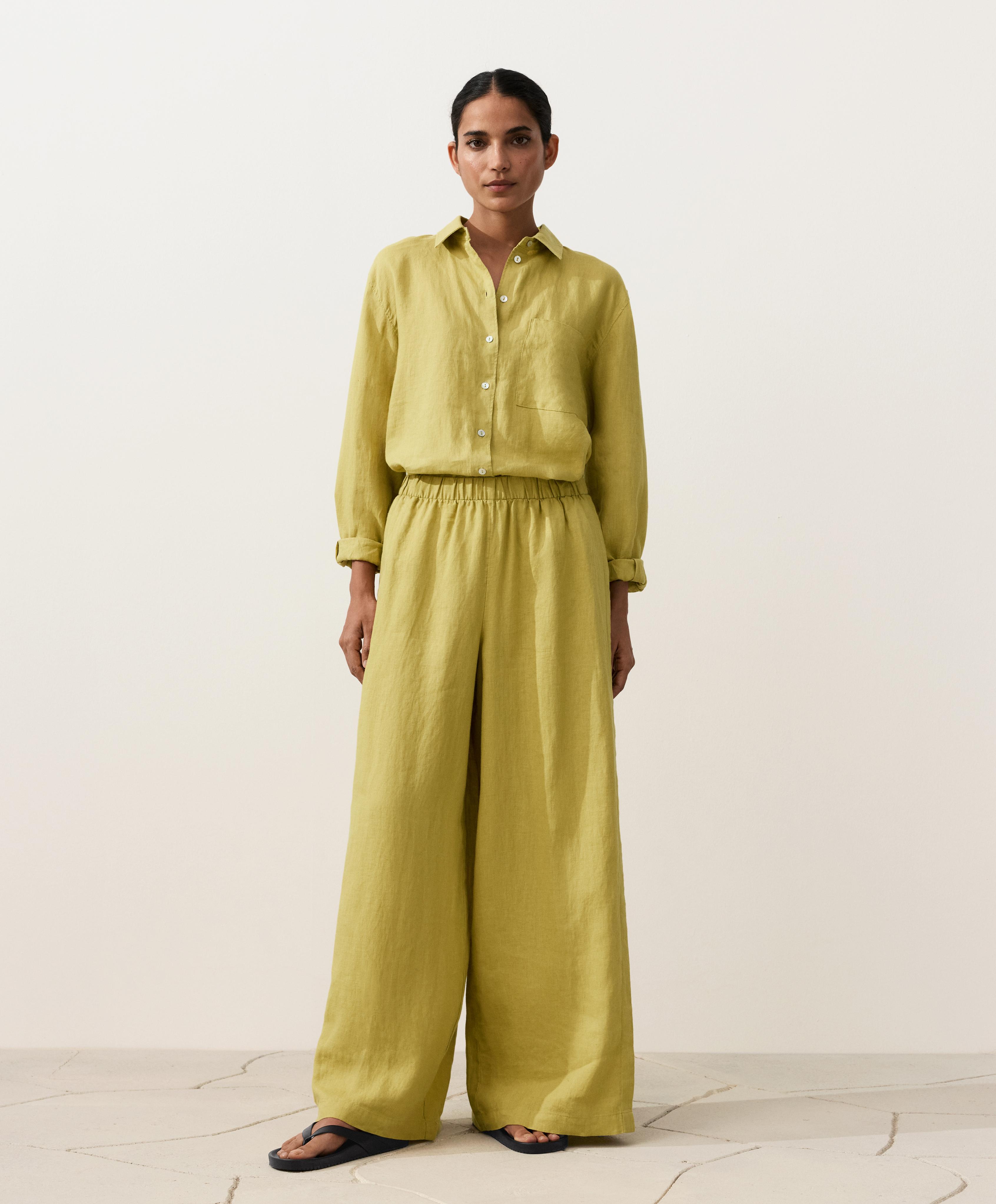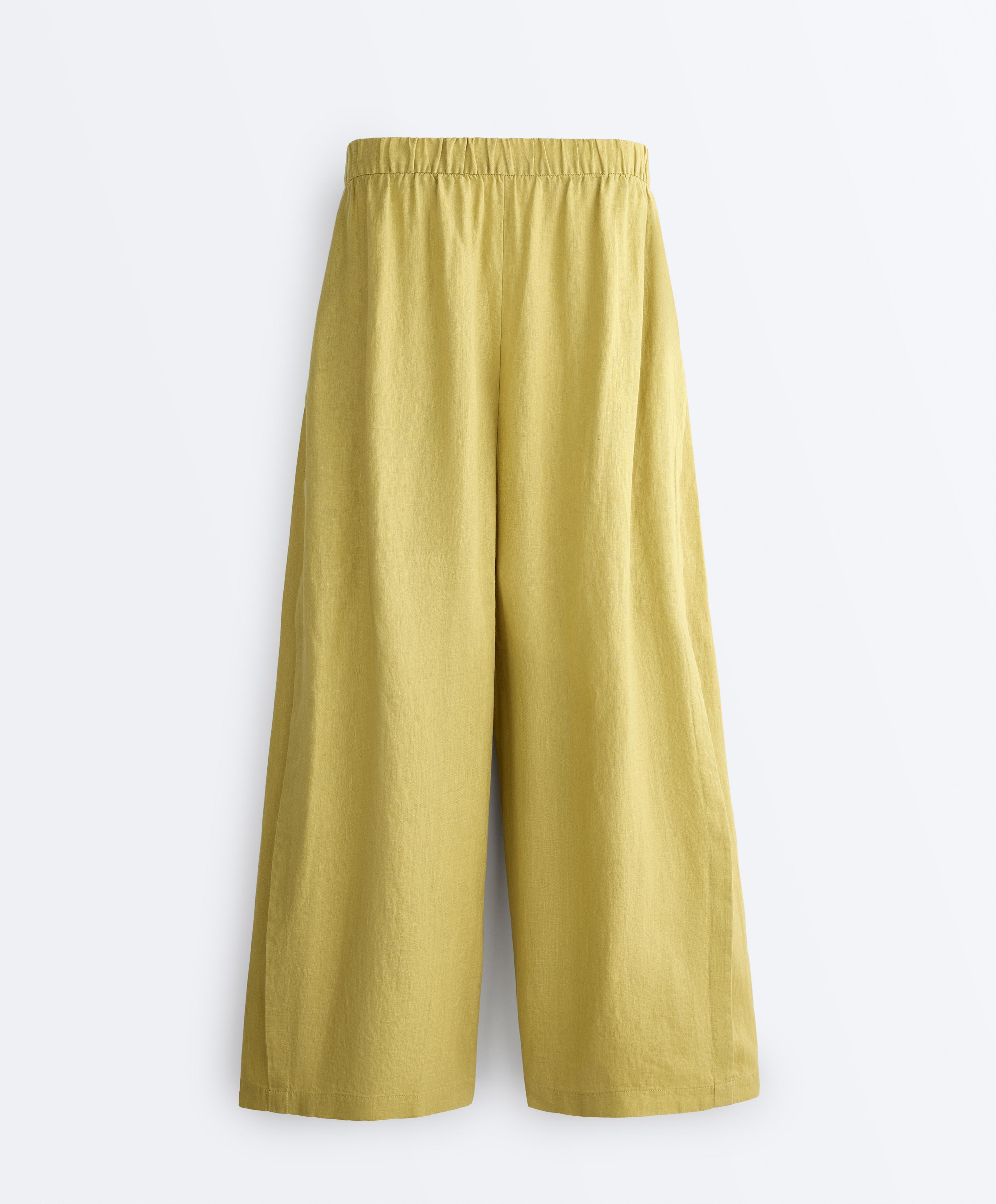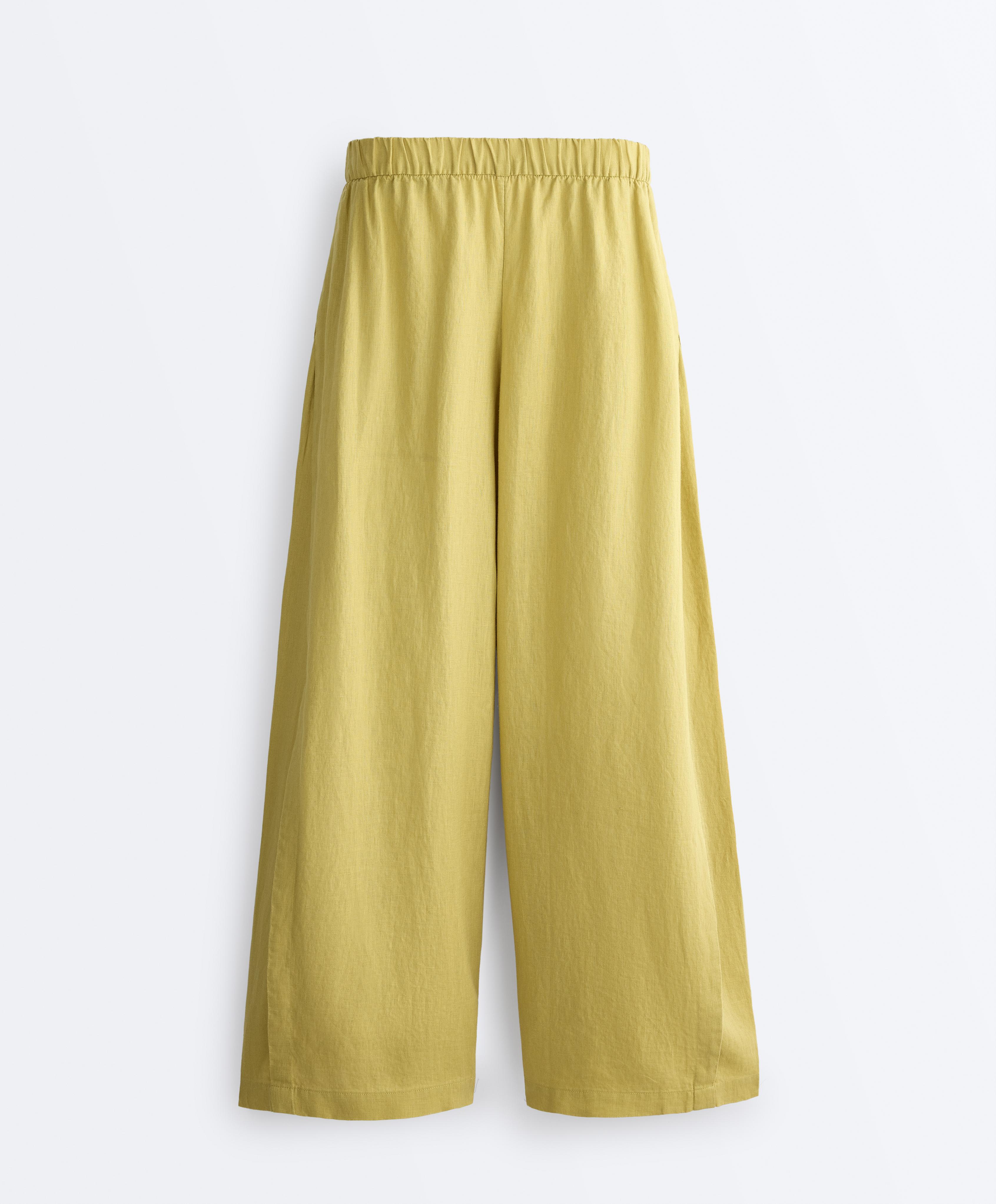 OYSHO Широкие брюки из 100% льна с боковой складкой, лаймовый
