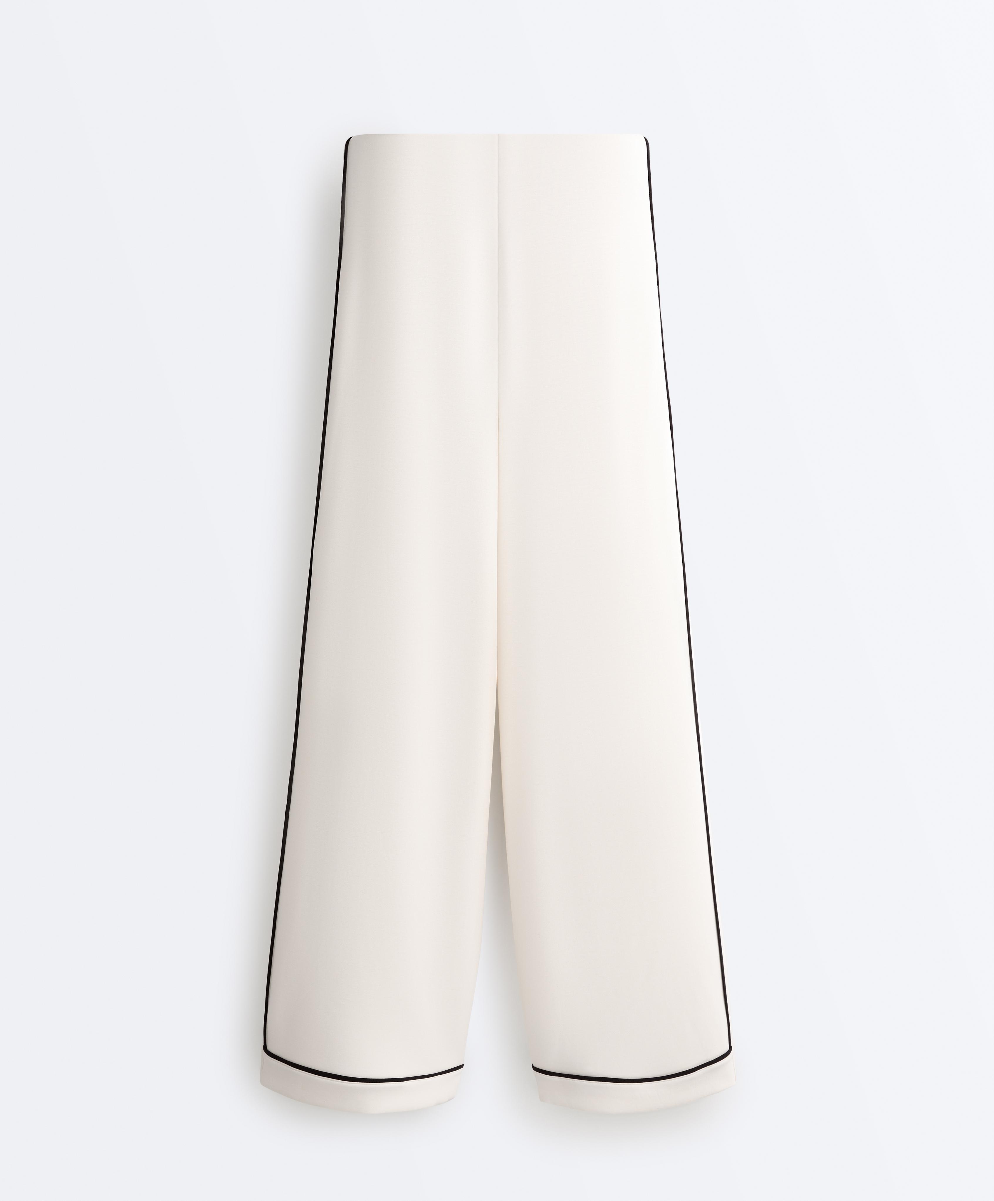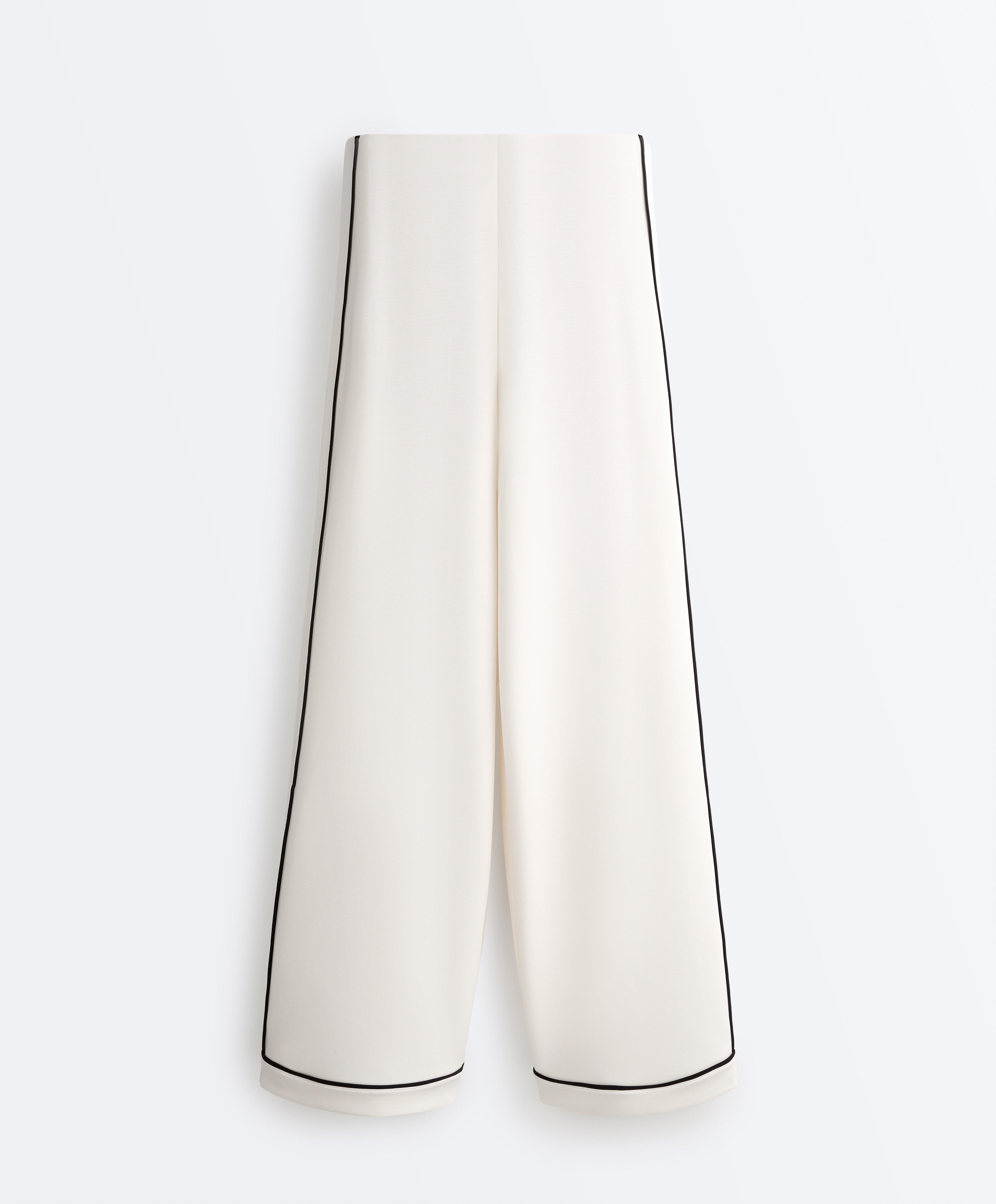 OYSHO Широкие брюки из модала с контрастной окантовкой, экрю