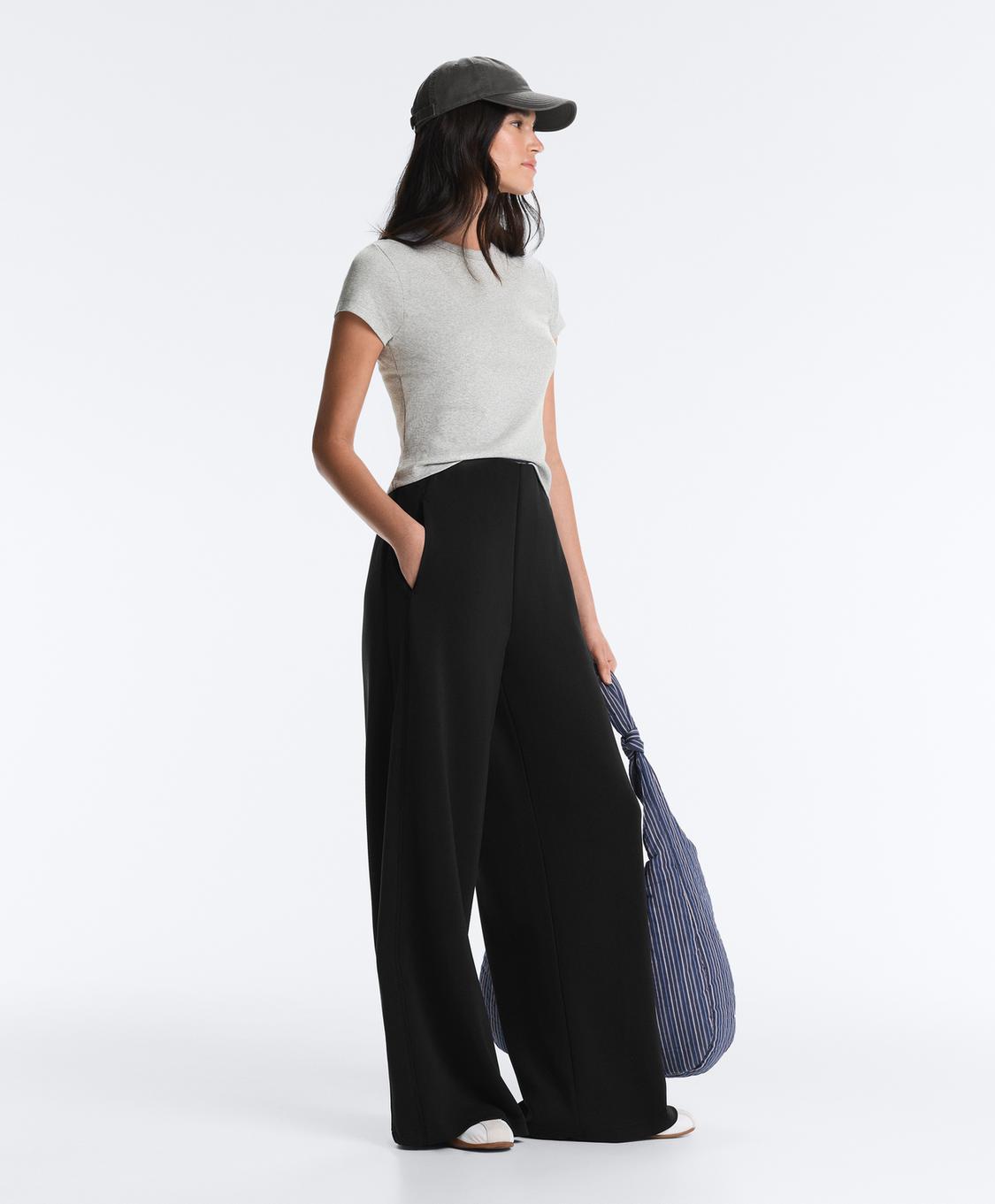Oysho Широкие брюки из мягкого модала с прострочкой по краю, черный
