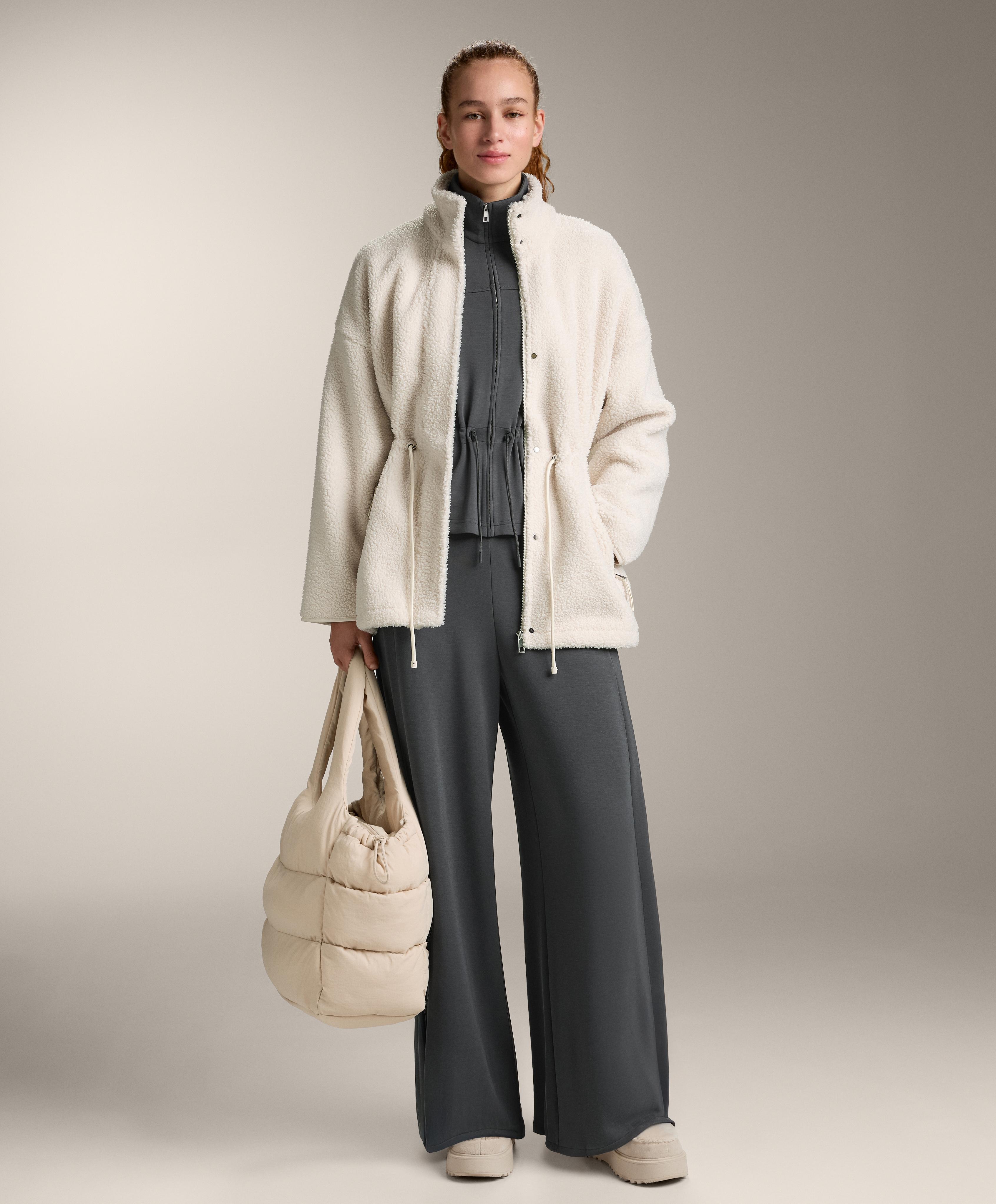 Длинные широкие брюки со складками по бокам штанин. Регулируемый эластичный пояс и передние карманы. Дышащая ткань из модала, очень мягкая на ощупь.