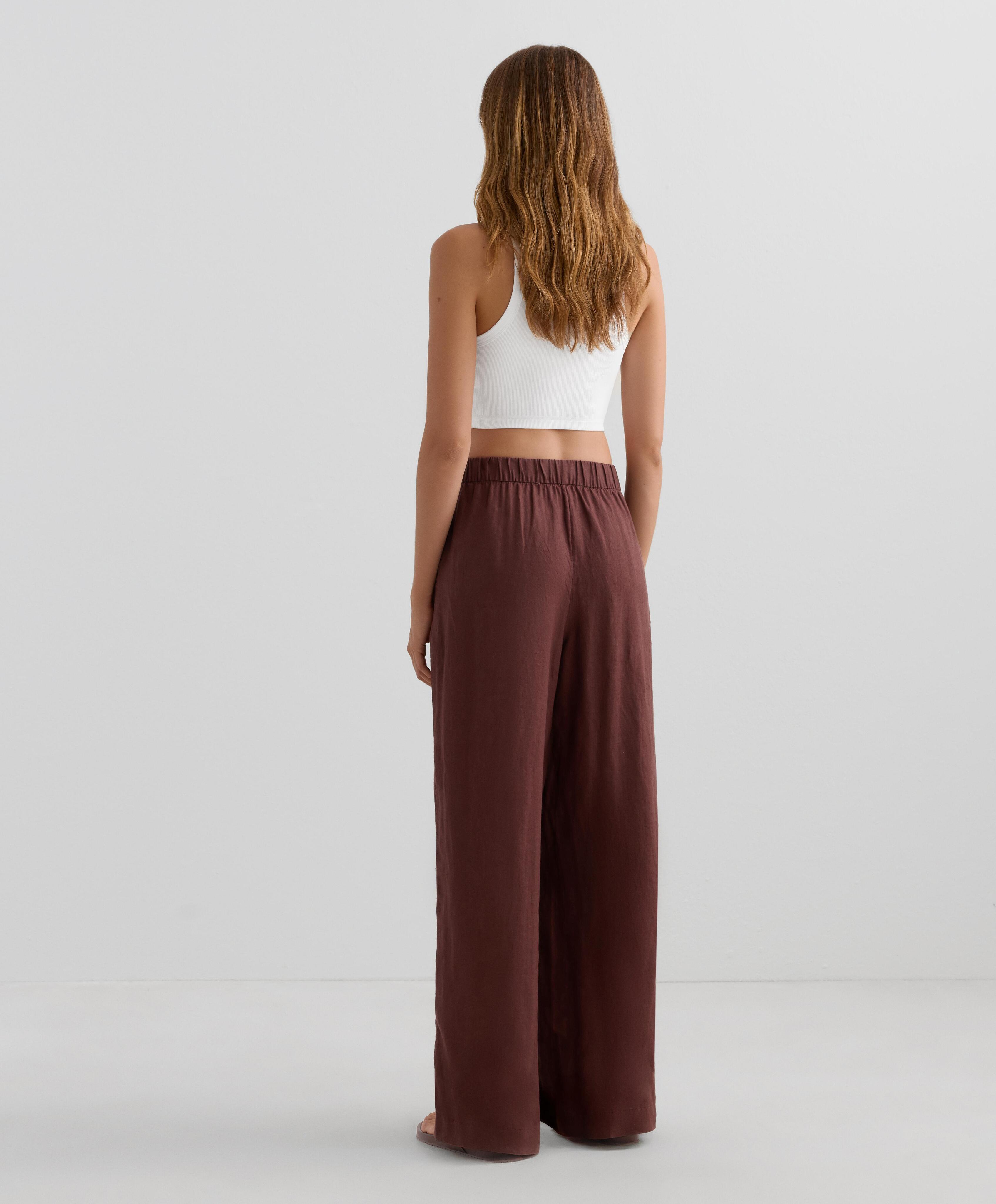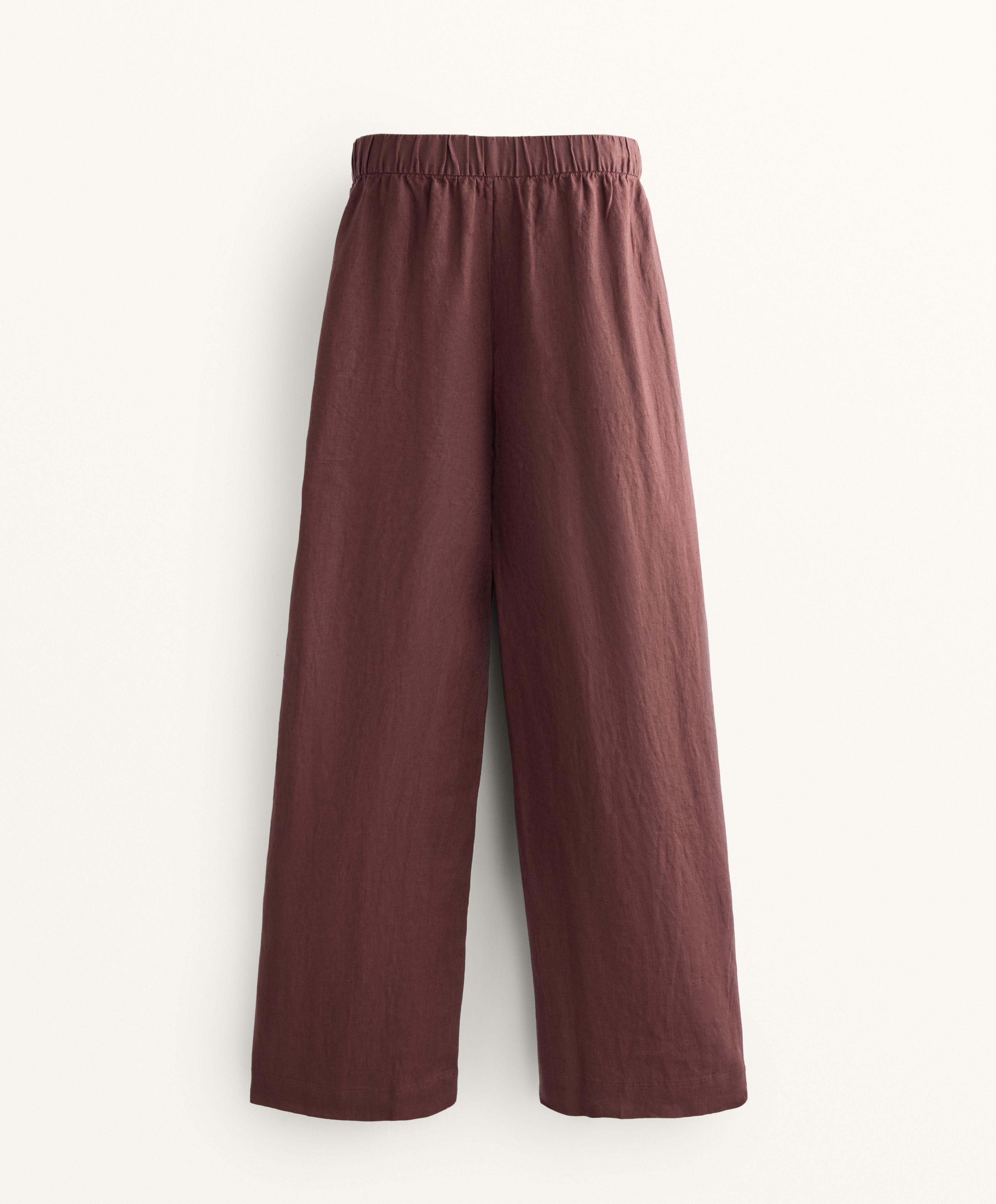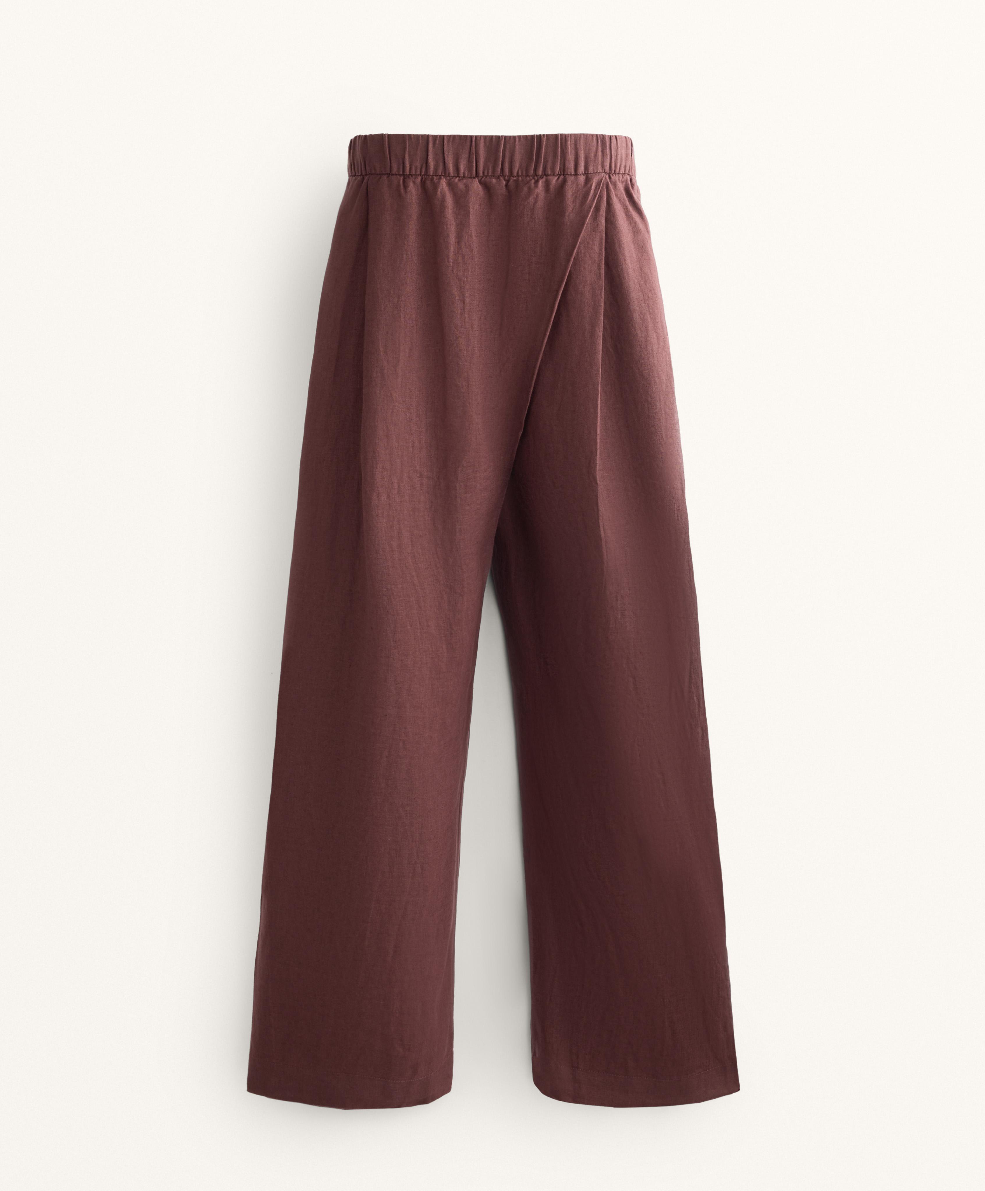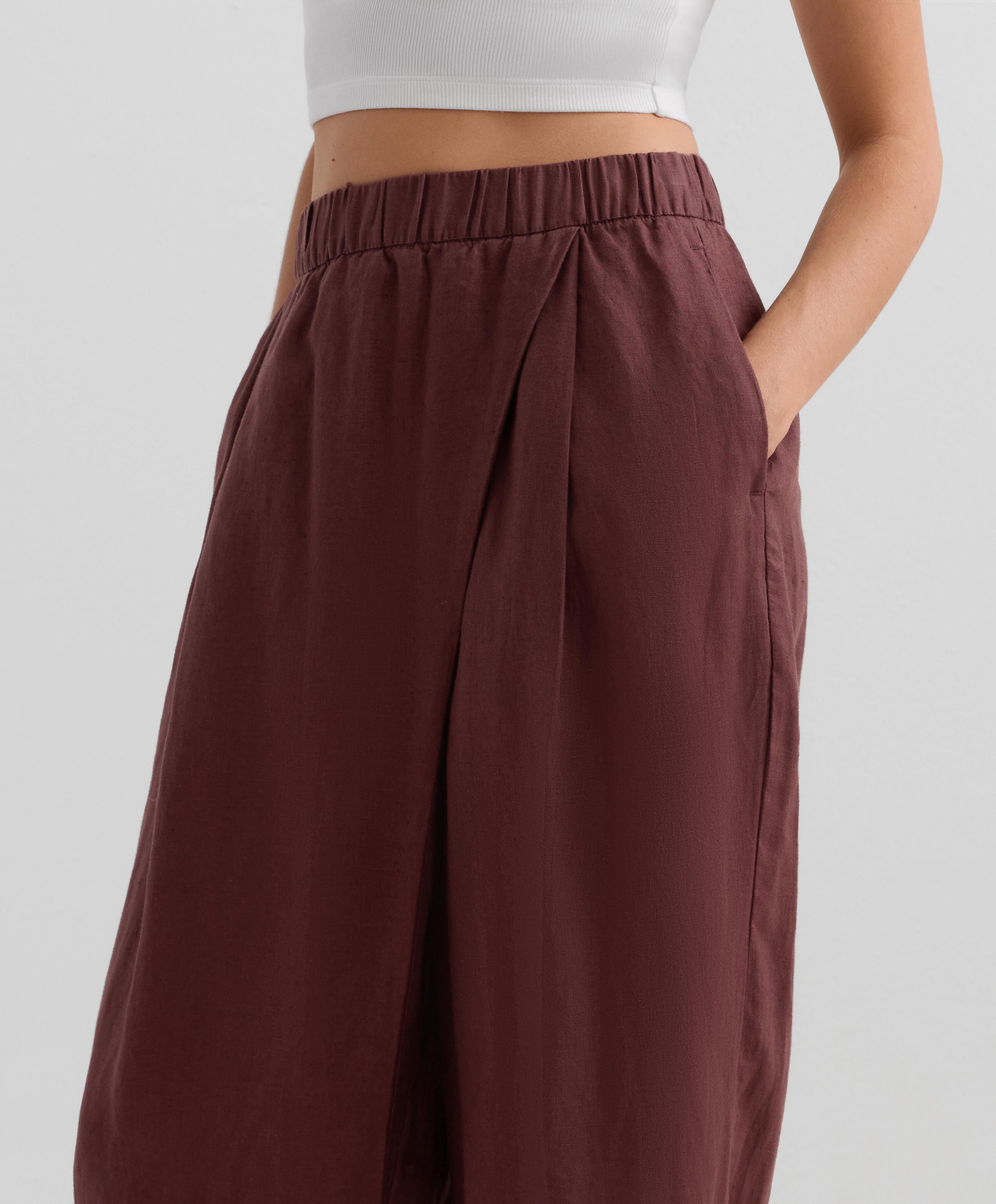 OYSHO Широкие прямые брюки из 100% льна с перекрестным кроем спереди, винный
