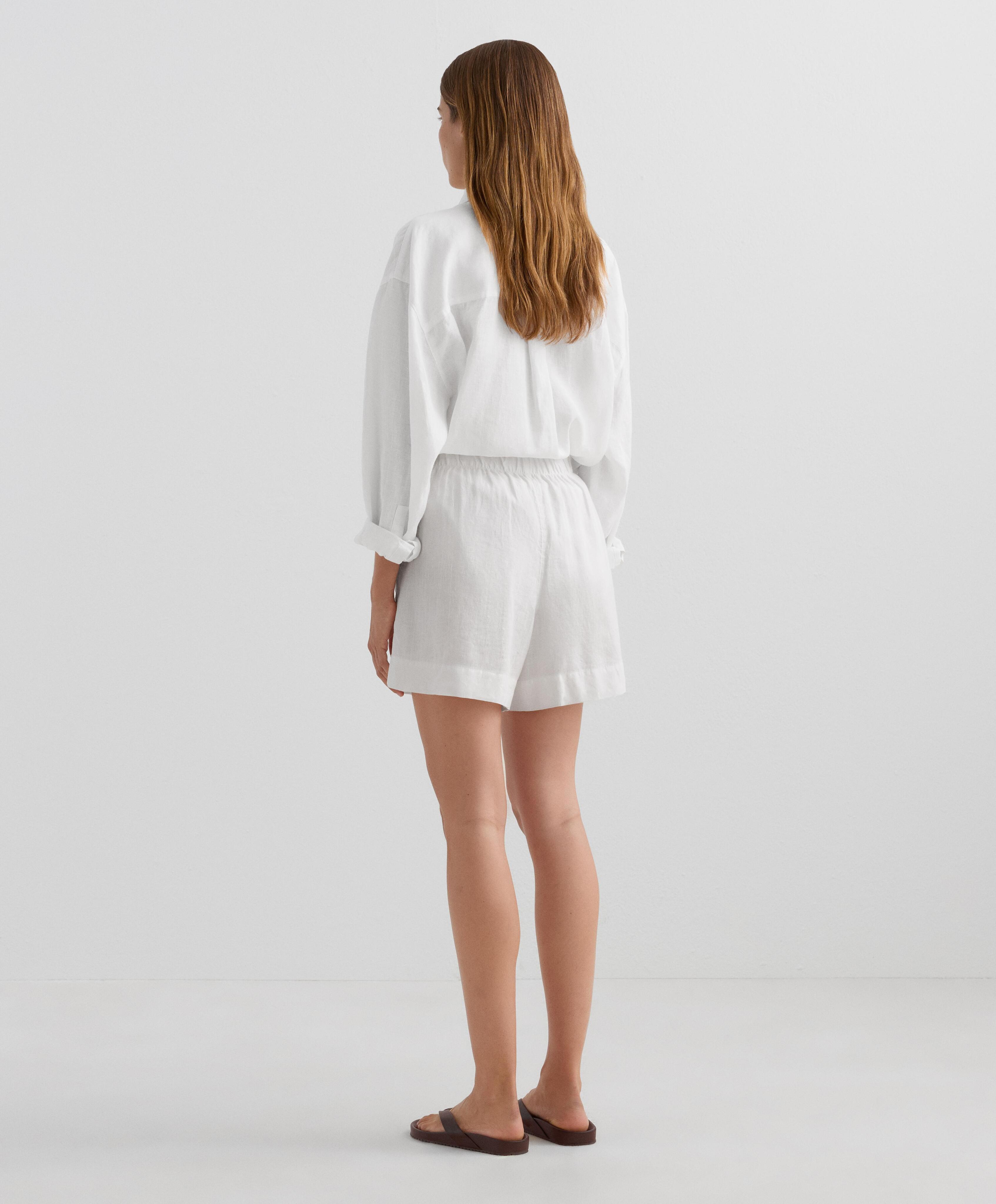 Шорты-бермуды с боковыми карманами и регулируемой эластичной талией. Ткань из 100% льна.