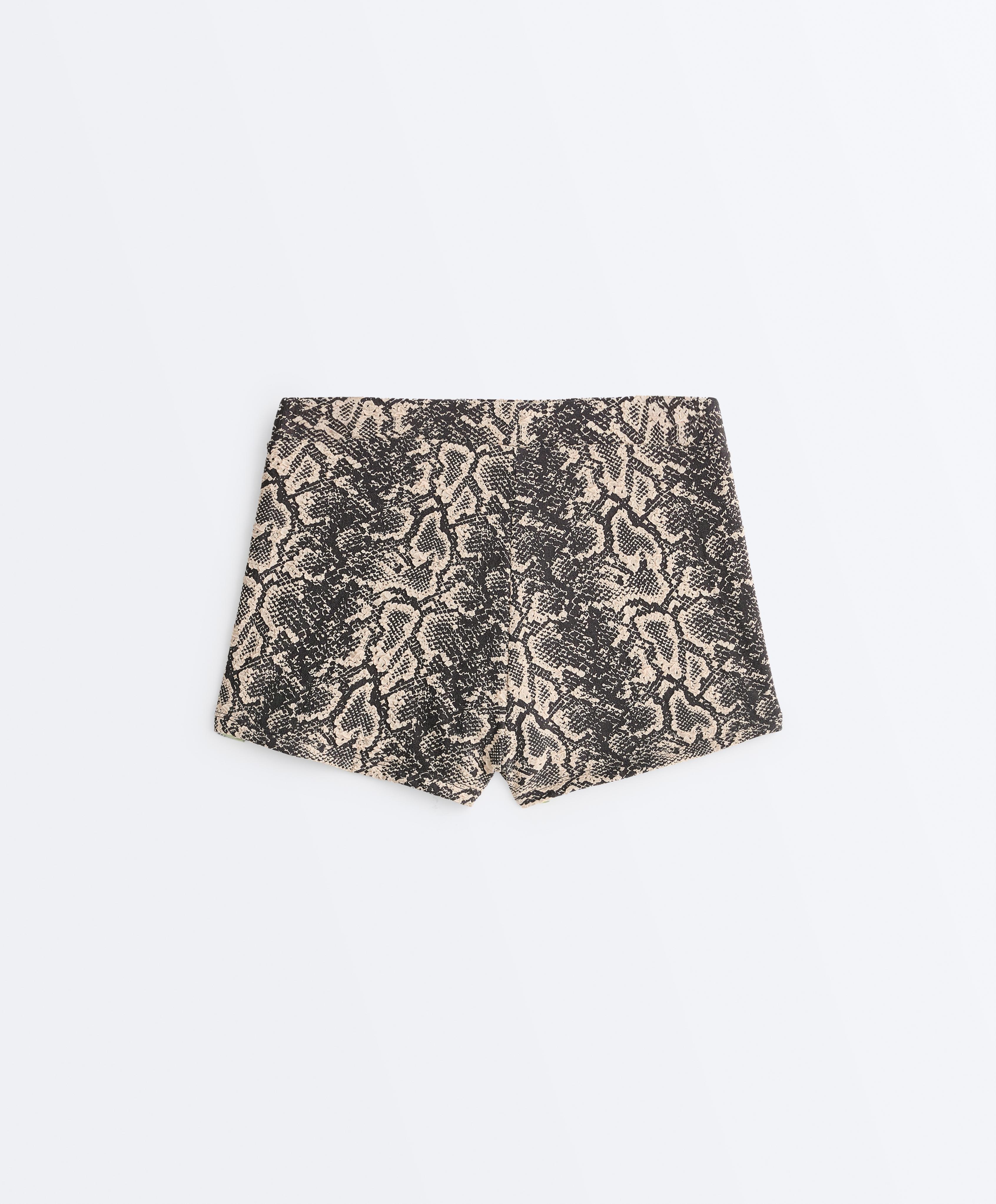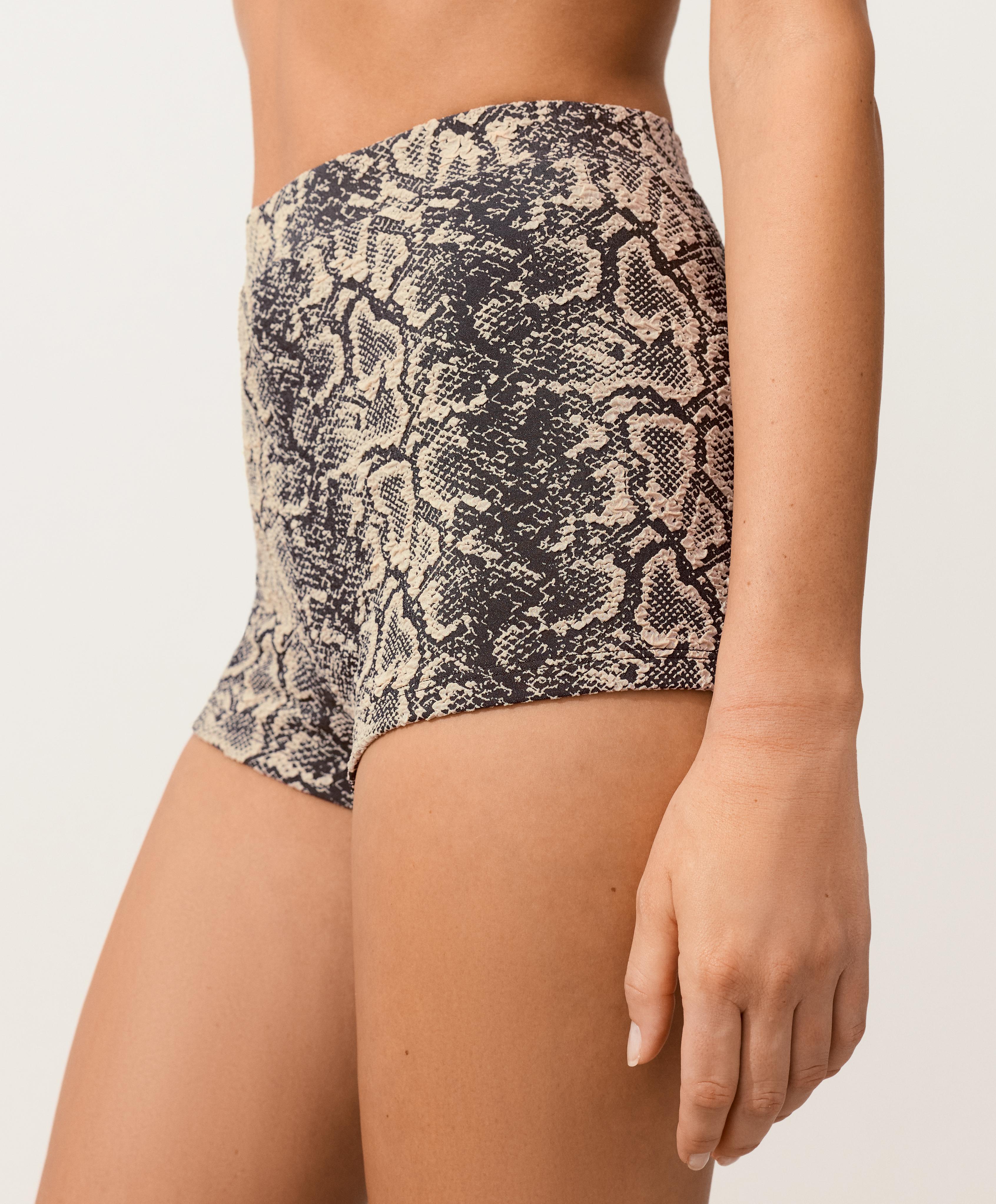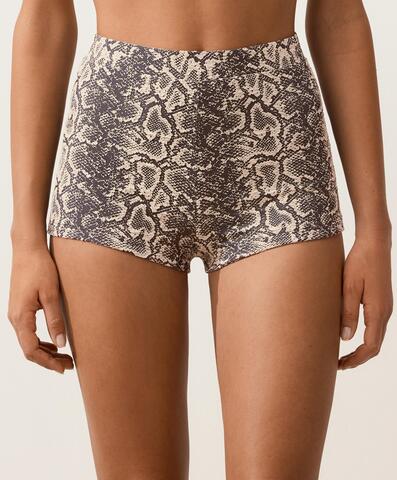 Шорты-бикини с высокой посадкой и принтом под змеиную кожу.