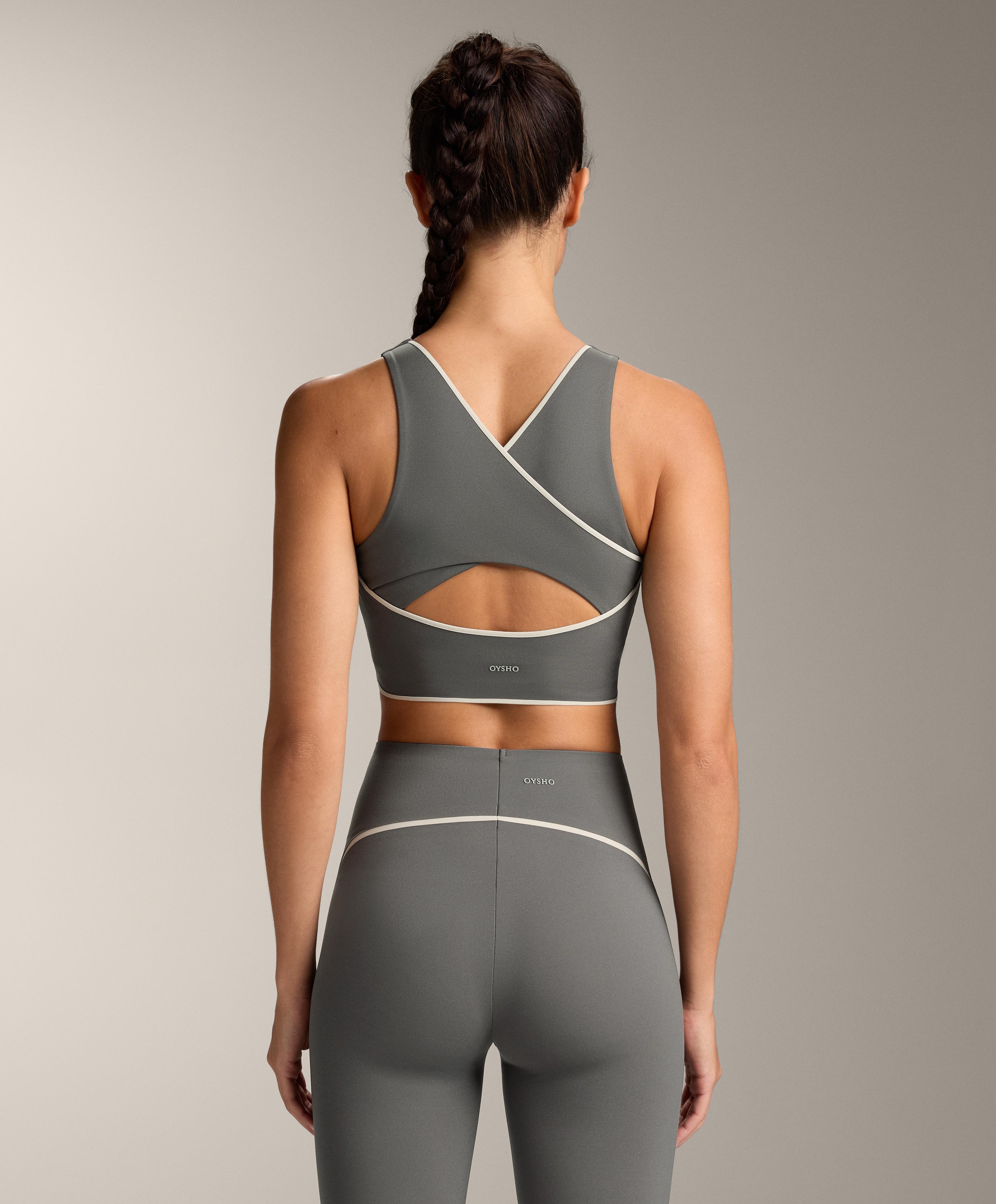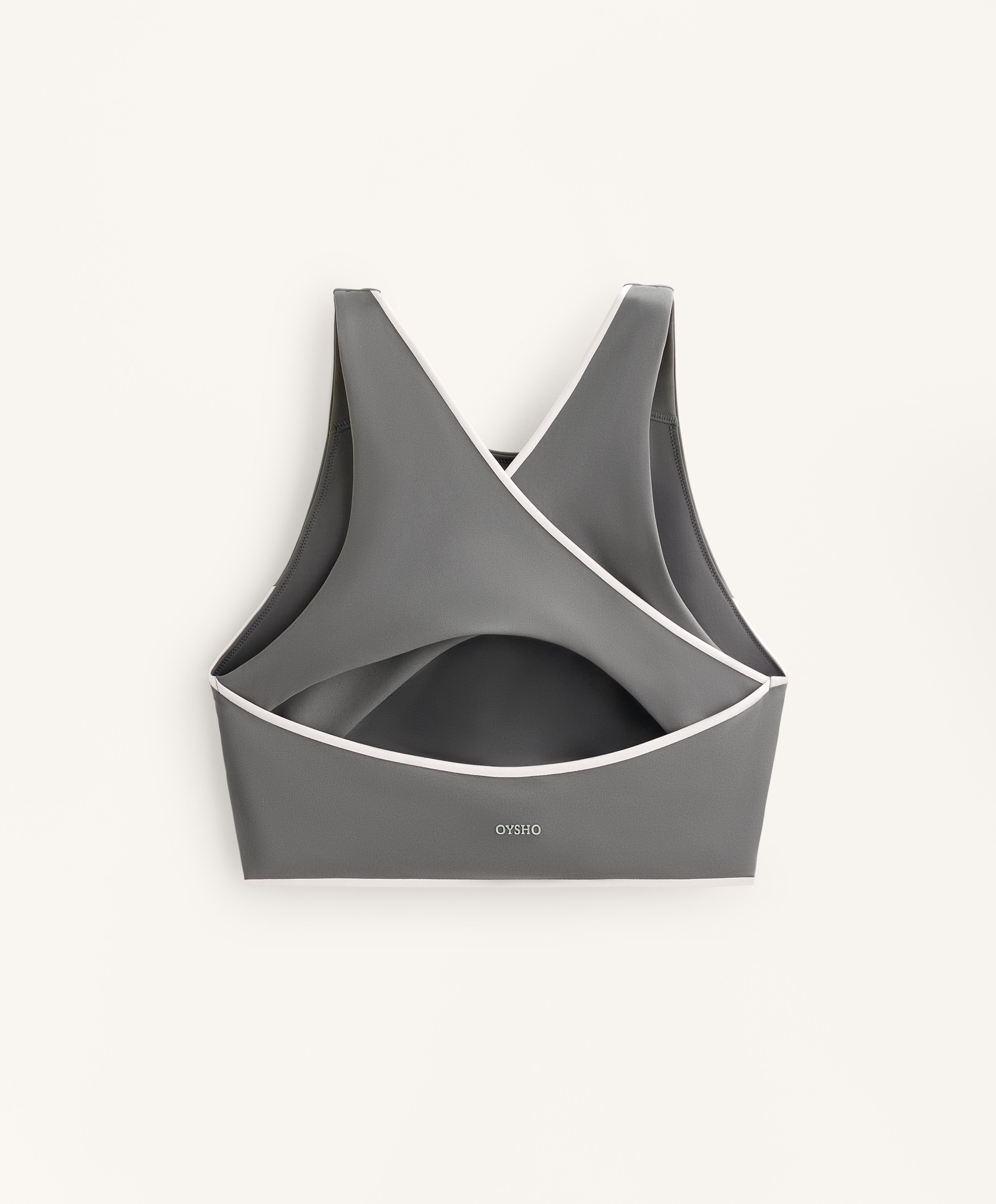 Oysho Спортивный бюстгальтер Compressive в стиле ретро, стальной серый