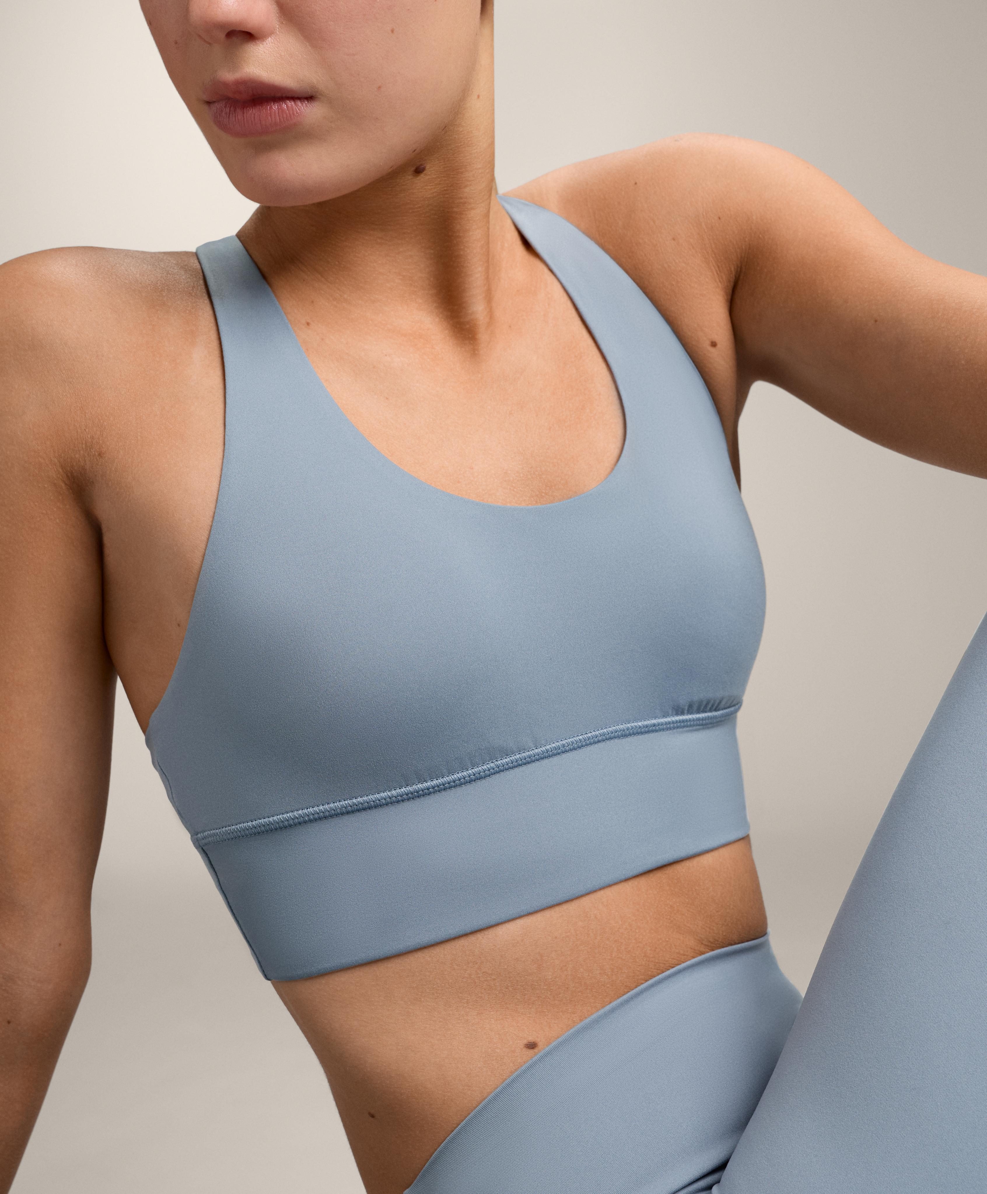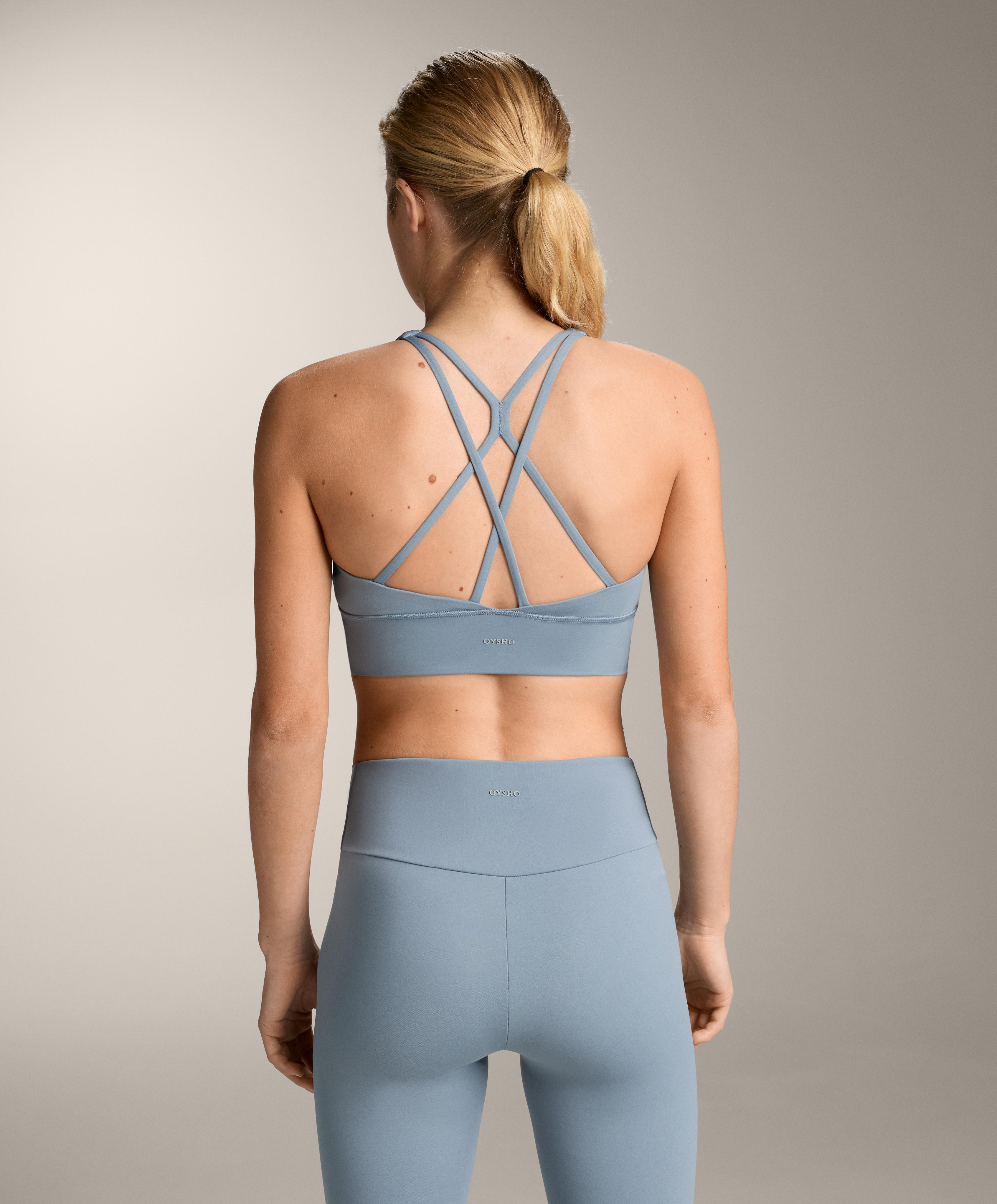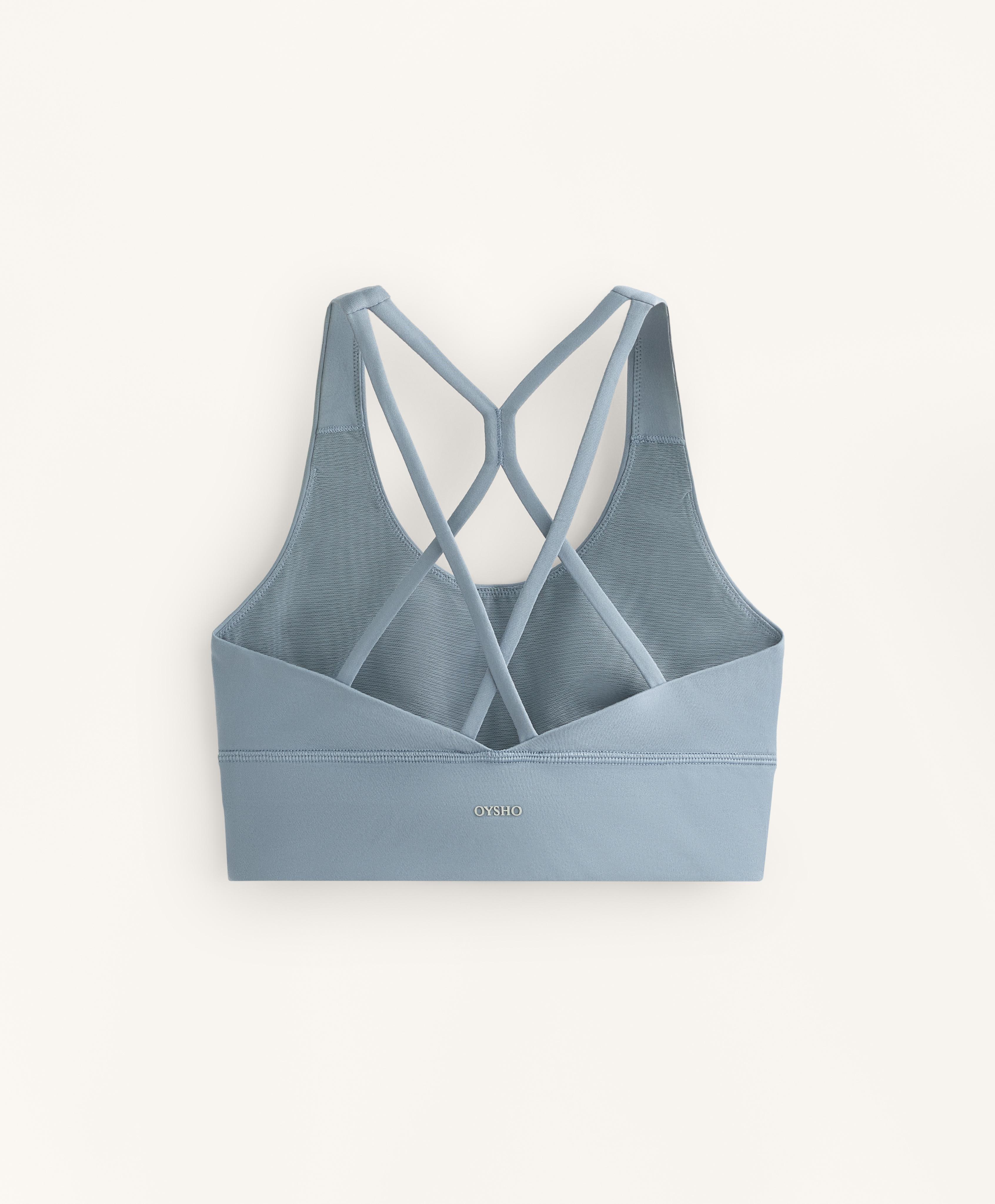 Oysho Спортивный бюстгальтер с бретелями на спине, серо-голубой