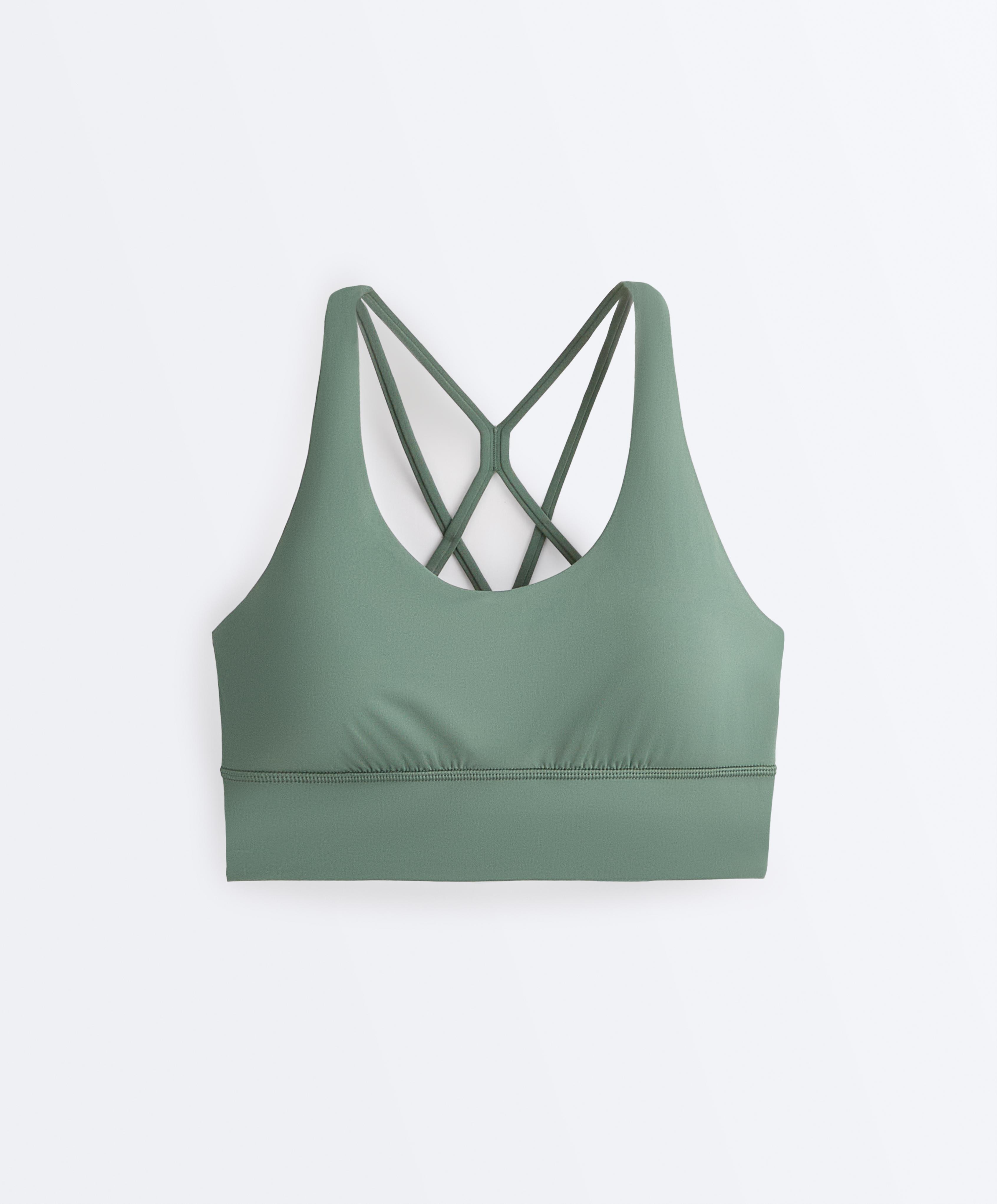 Oysho Спортивный бюстгальтер с бретелями на спине, темно-зеленый