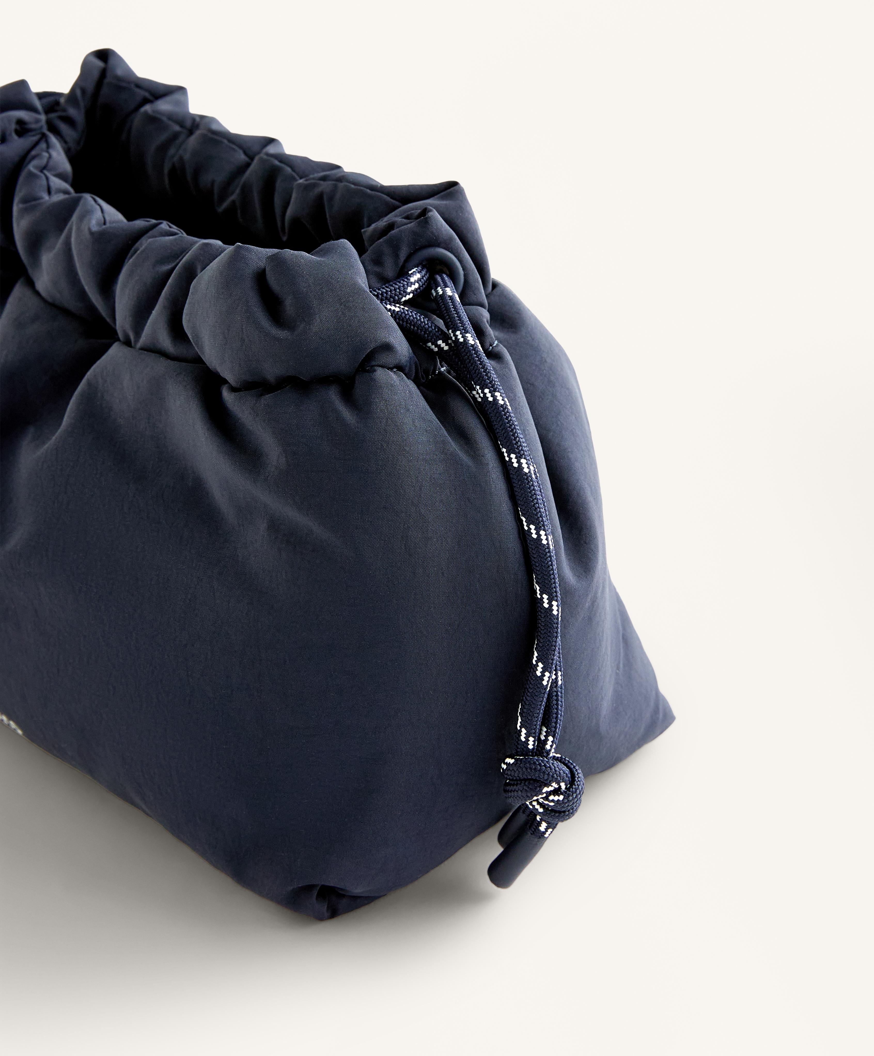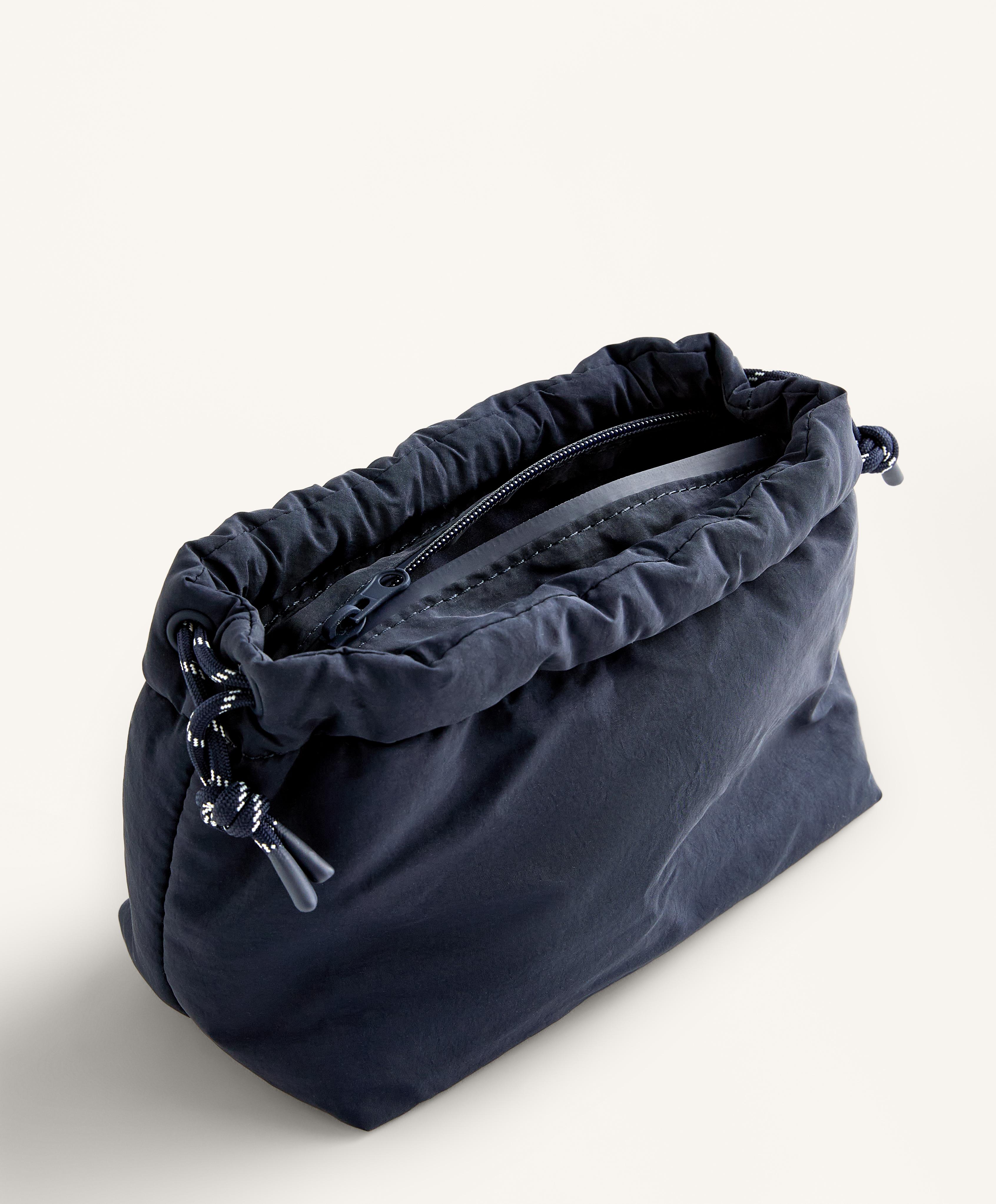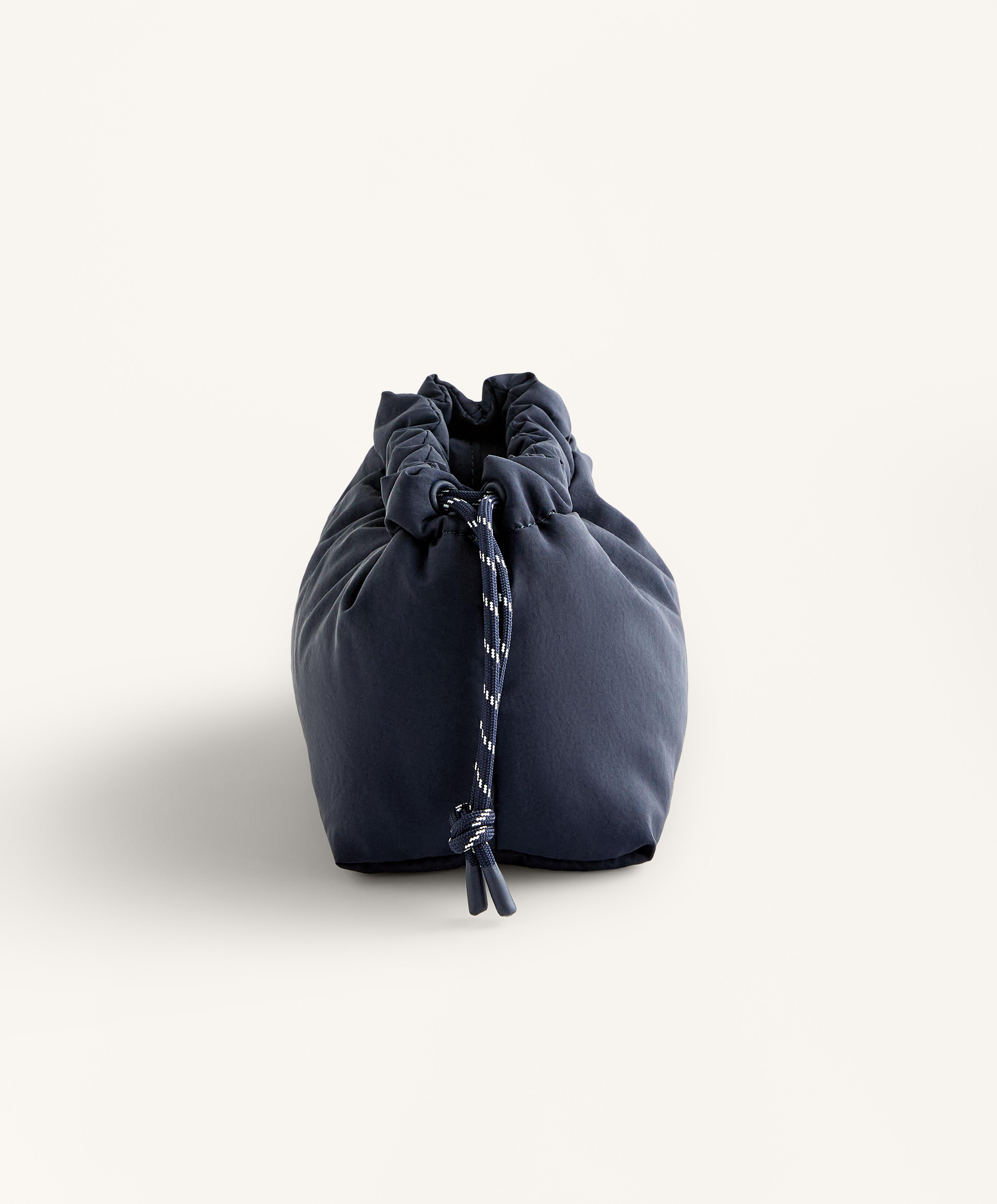 Простая стеганая косметичка с затягивающимся шнурком и внутренним карманом на молнии.