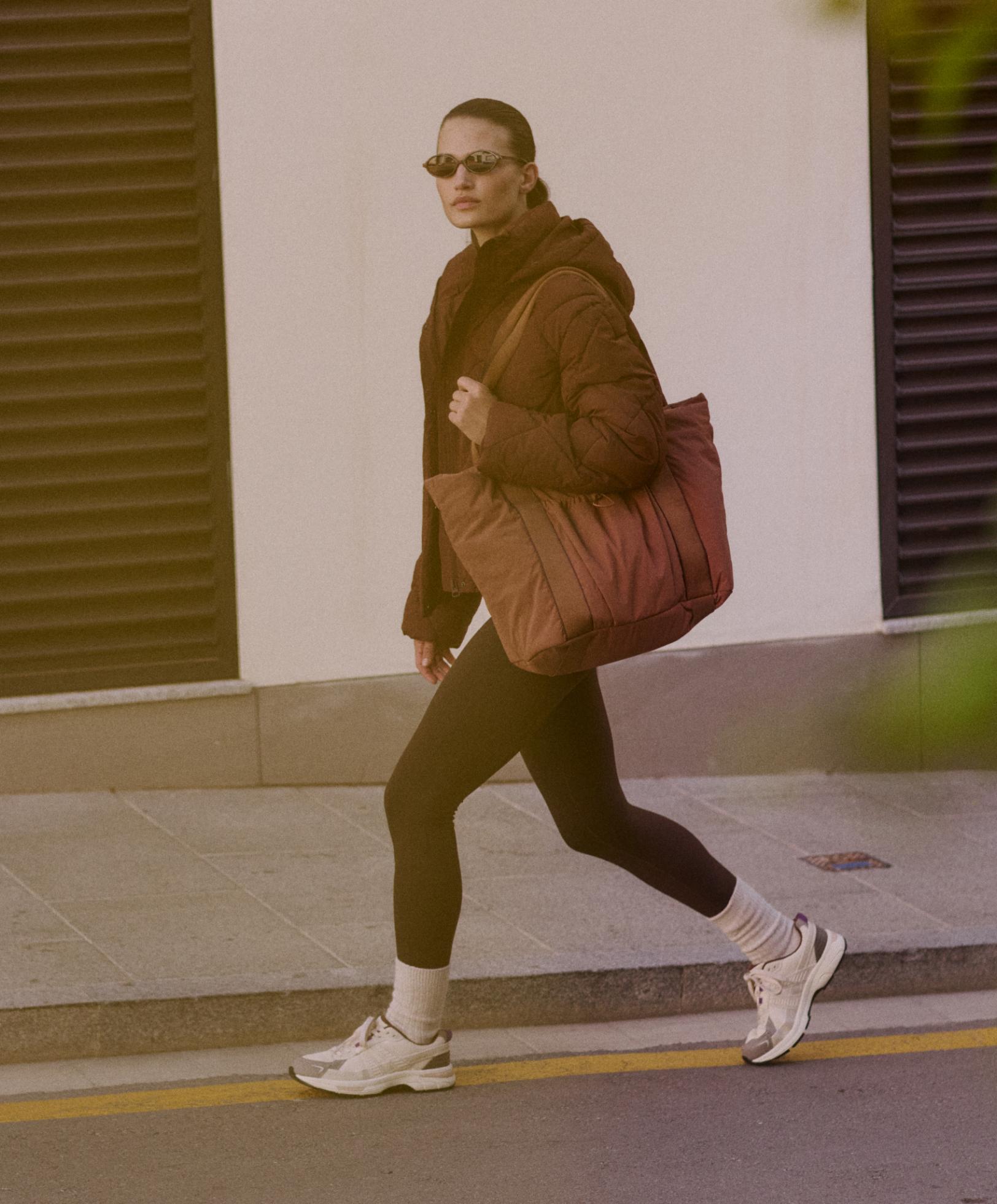 Сумка-шоппер с эластичными ремнями на дне для переноски коврика для йоги. Внутри есть термоотделение для напитков и карман для ноутбука диагональю до 16 дюймов. Застёгивается на молнию. Центральный карман закрывается на липучку. Размеры: 31 x 51 x 18 см. Объём: 26 л.