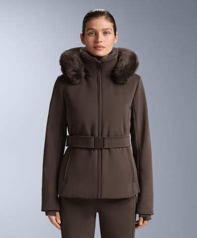 Застёжка-молния спереди и регулируемый пояс. Боковые карманы, внутренний карман для мобильного телефона и карман на рукаве для ски-пасса. Съёмный капюшон с искусственным мехом. Внутренний пояс предотвращает попадание снега. Эластичные внутренние манжеты с отверстиями для больших пальцев. Внутренний крючок для перчаток.