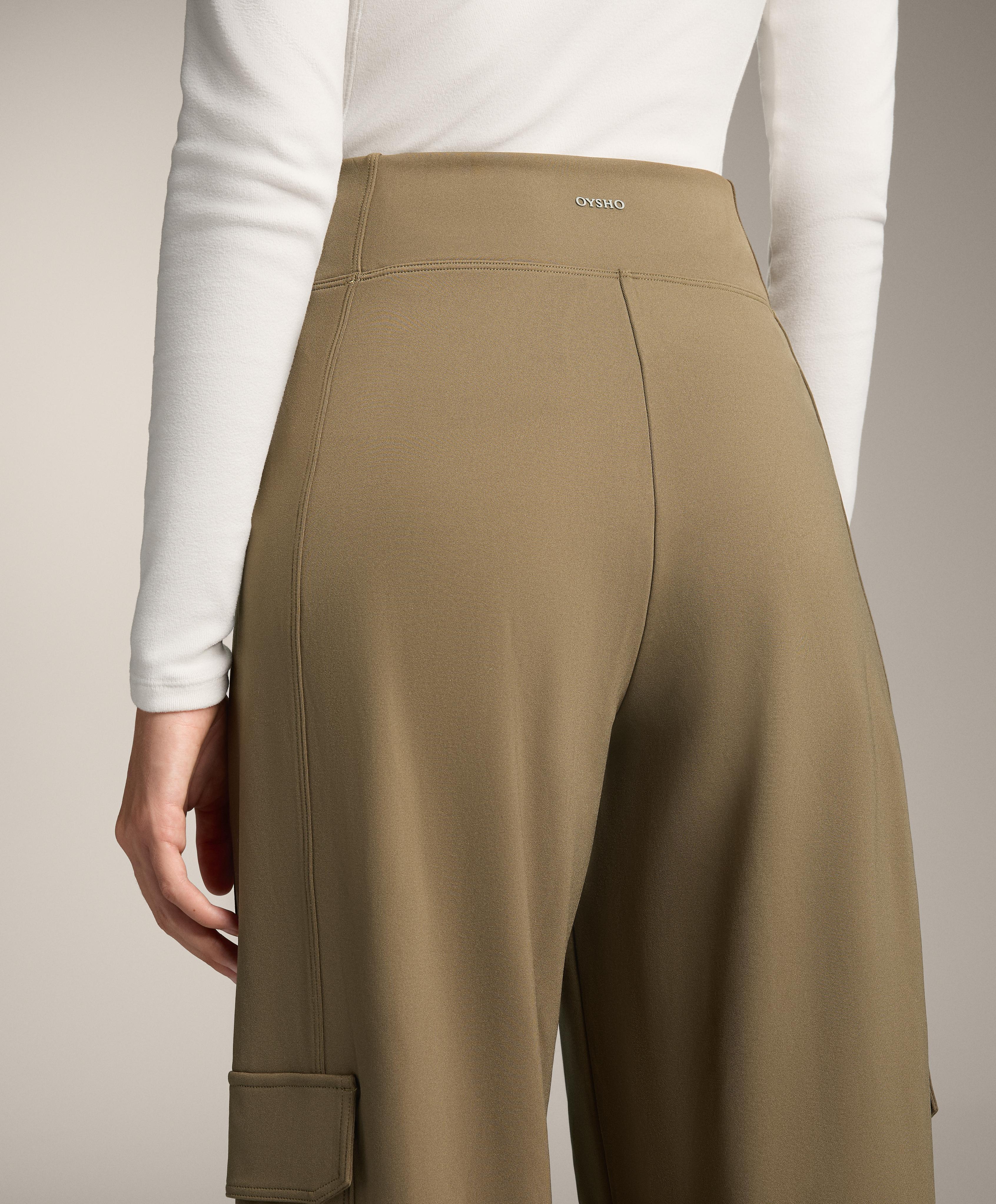 OYSHO Теплые брюки-карго с высокой талией, светлый хаки