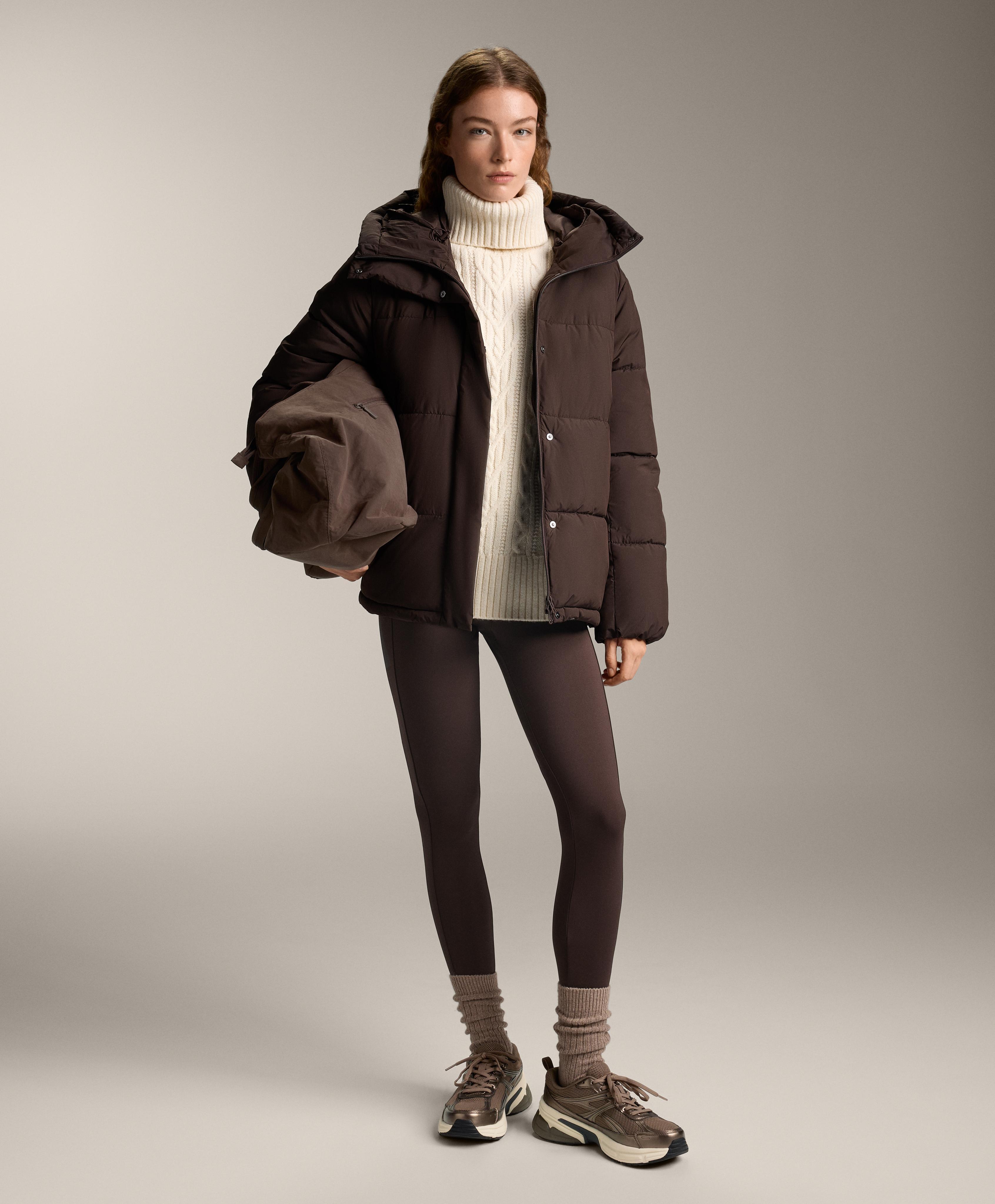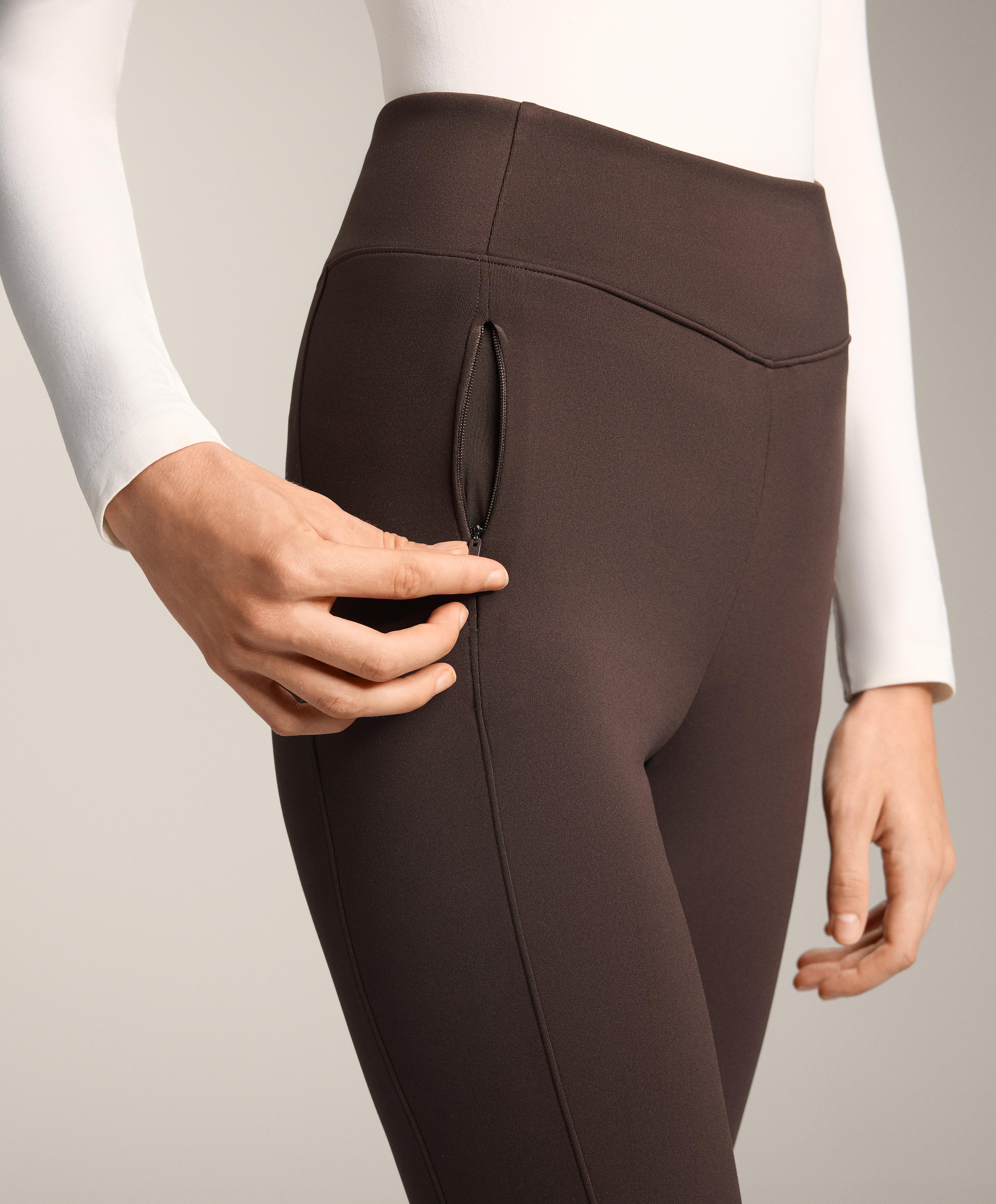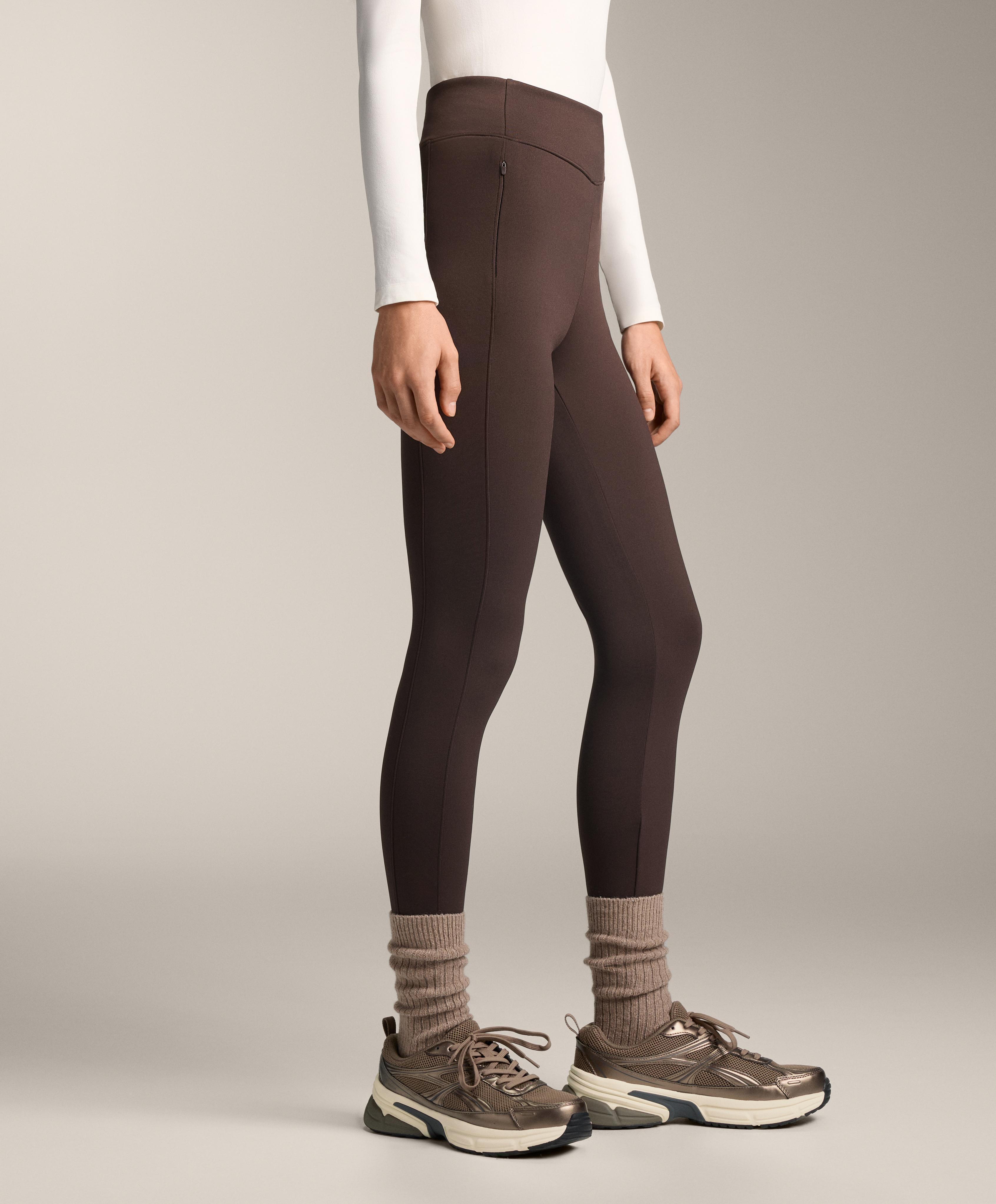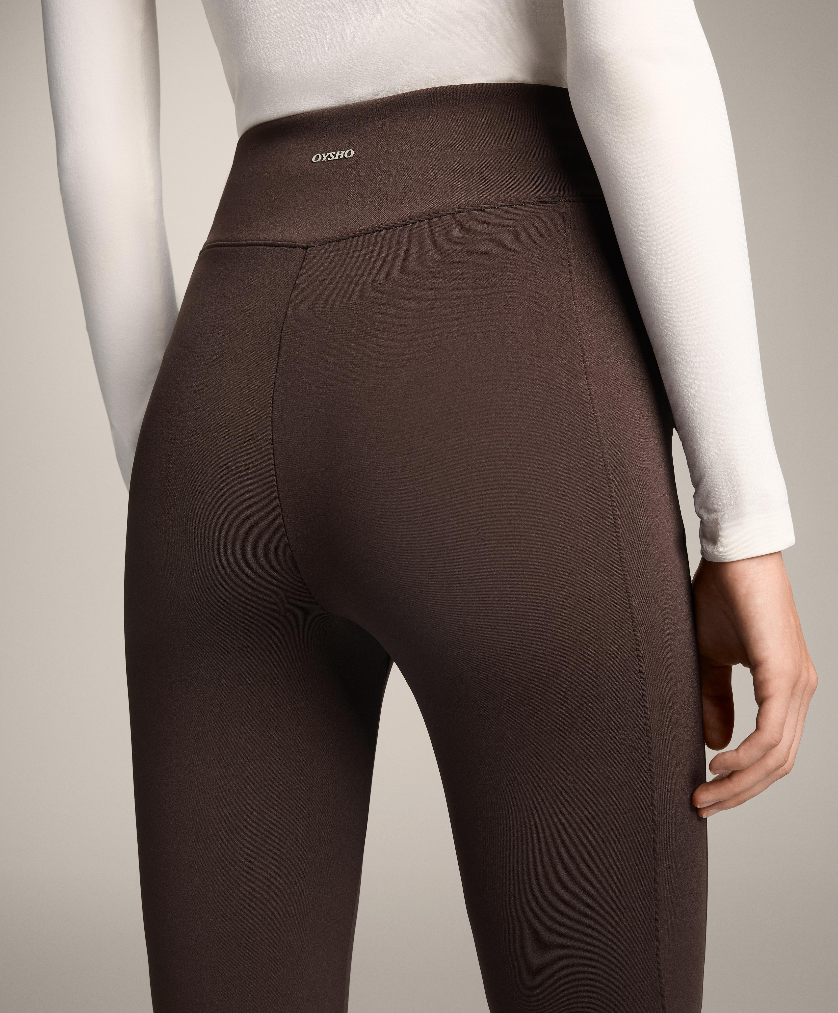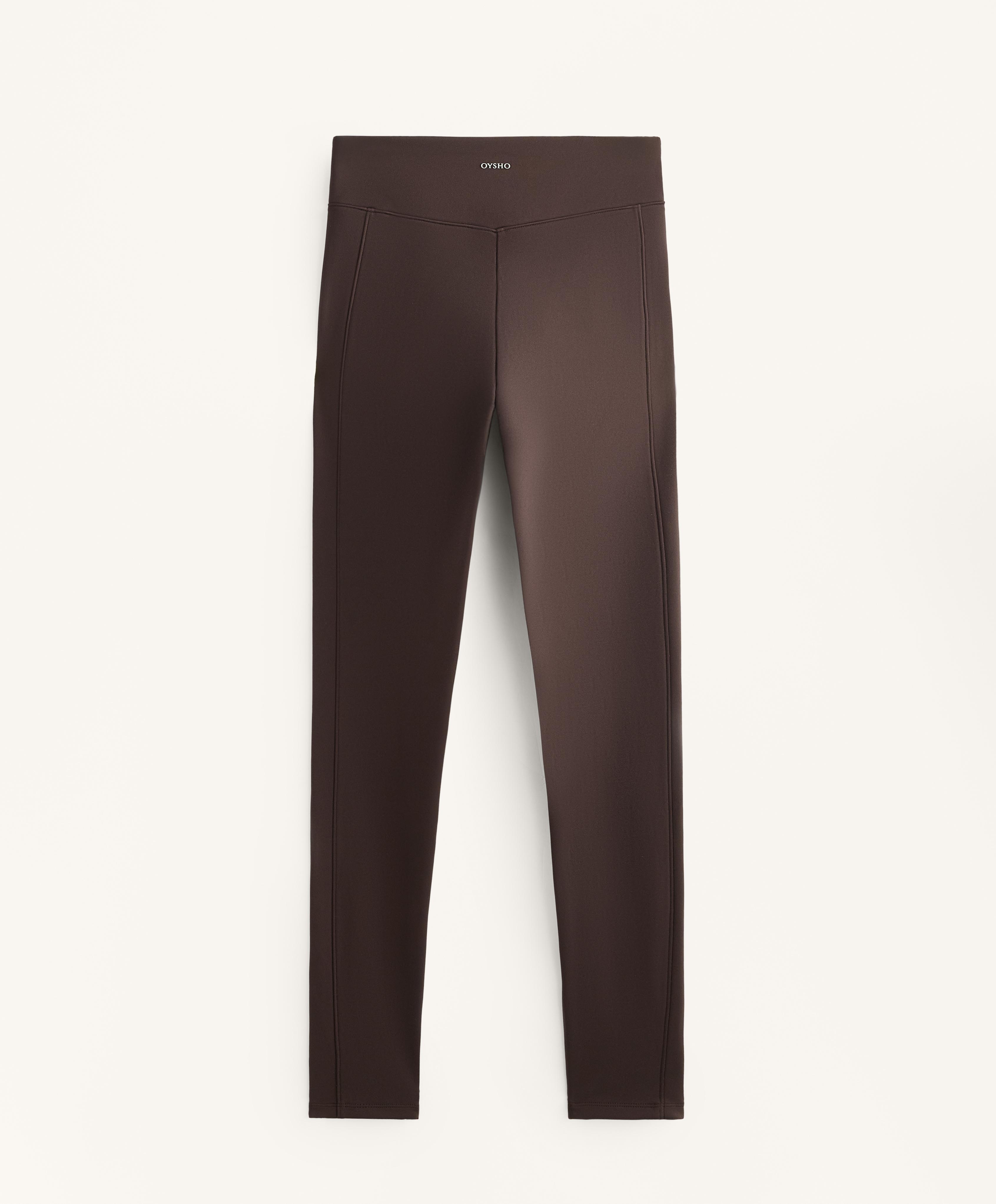 OYSHO Теплые легинсы с высокой посадкой и карманами длиной до щиколотки, темно-коричневый