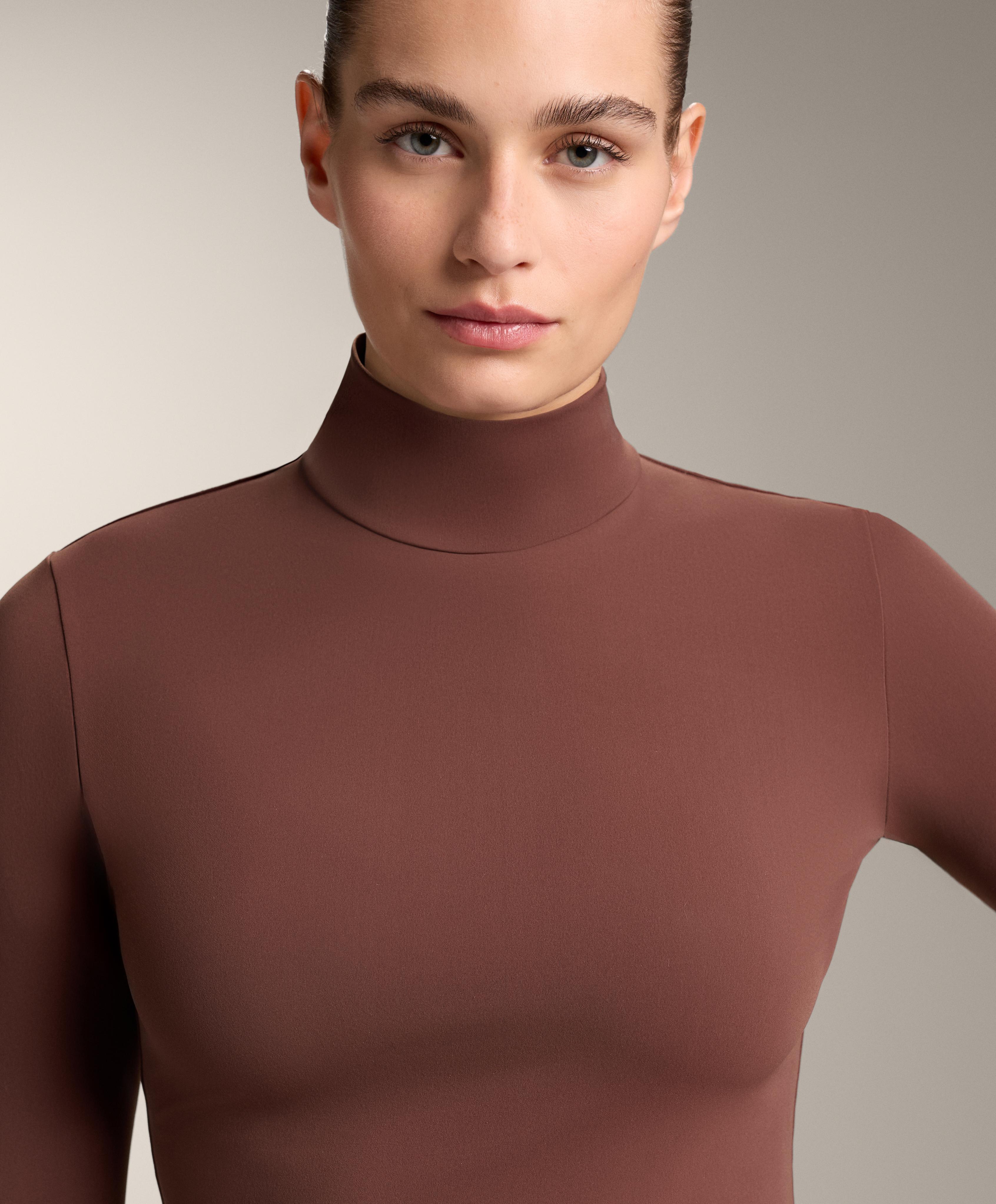 Футболка с длинными рукавами и высоким воротником. Дышащая, высокопрочная ткань с эффектом контроля запаха.