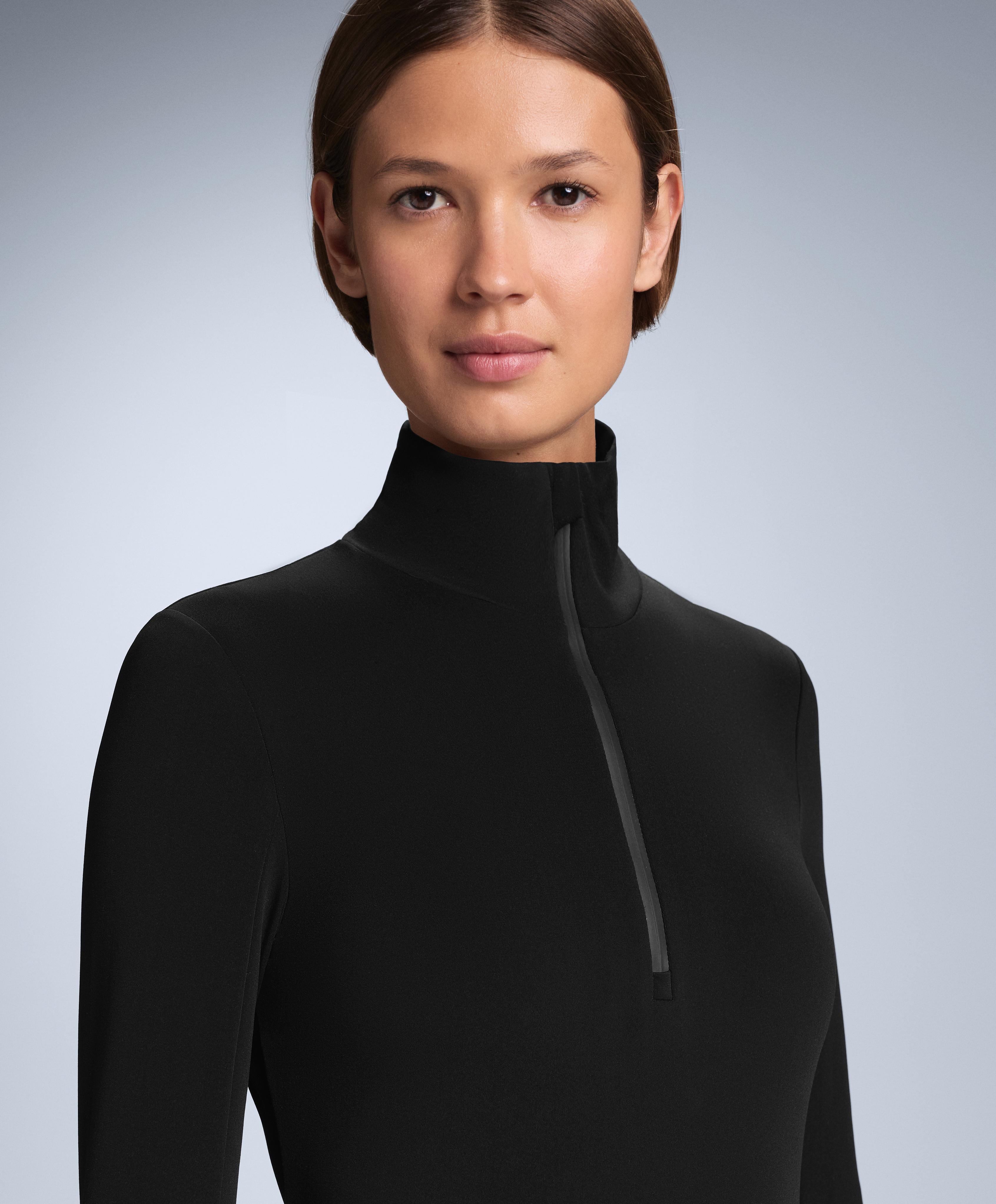 Футболка с длинными рукавами и молнией спереди. Стратегически продуманное отверстие для большого пальца на манжете обеспечивает дополнительную свободу движений. Дышащая, прочная ткань с дезодорирующими свойствами.