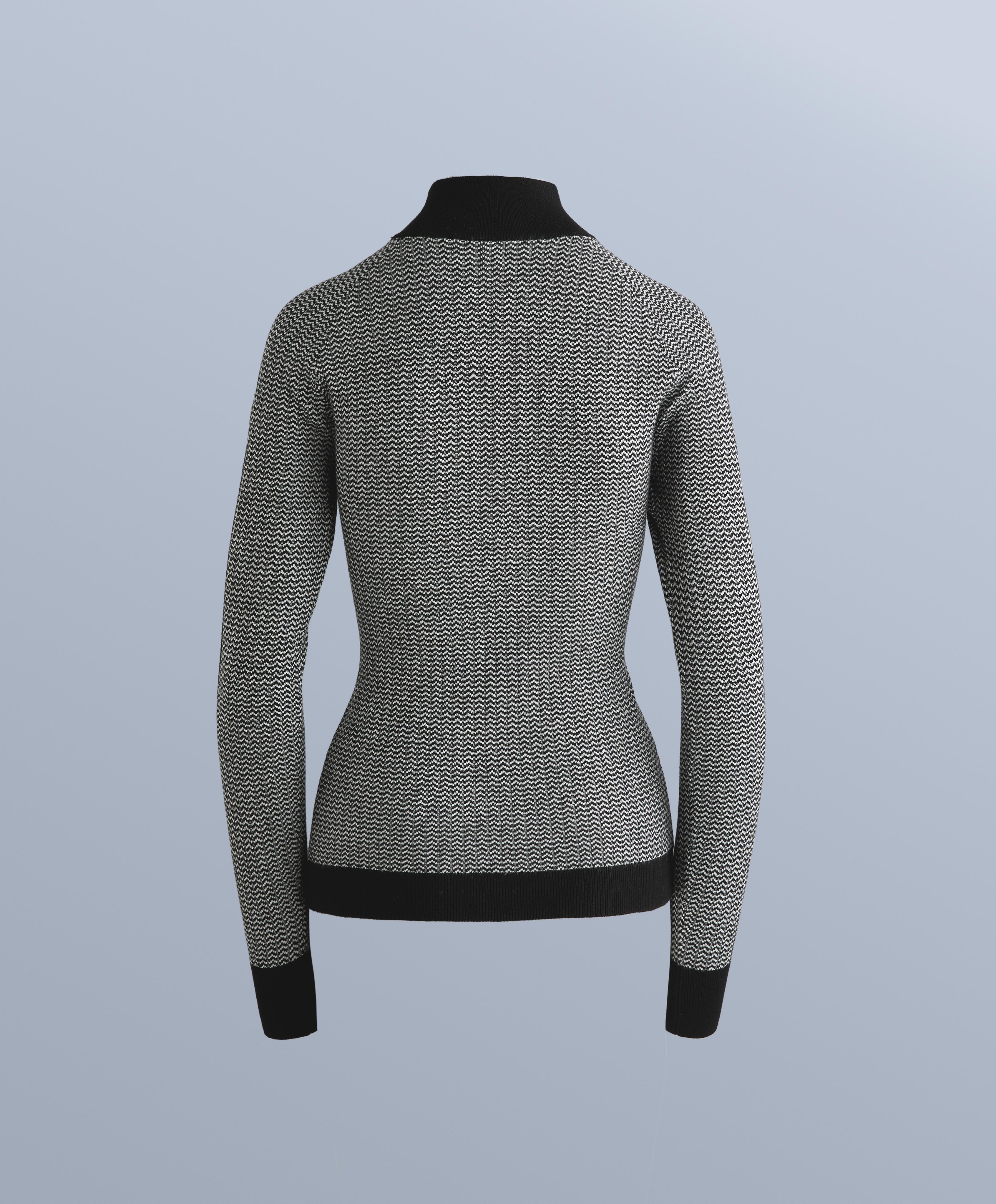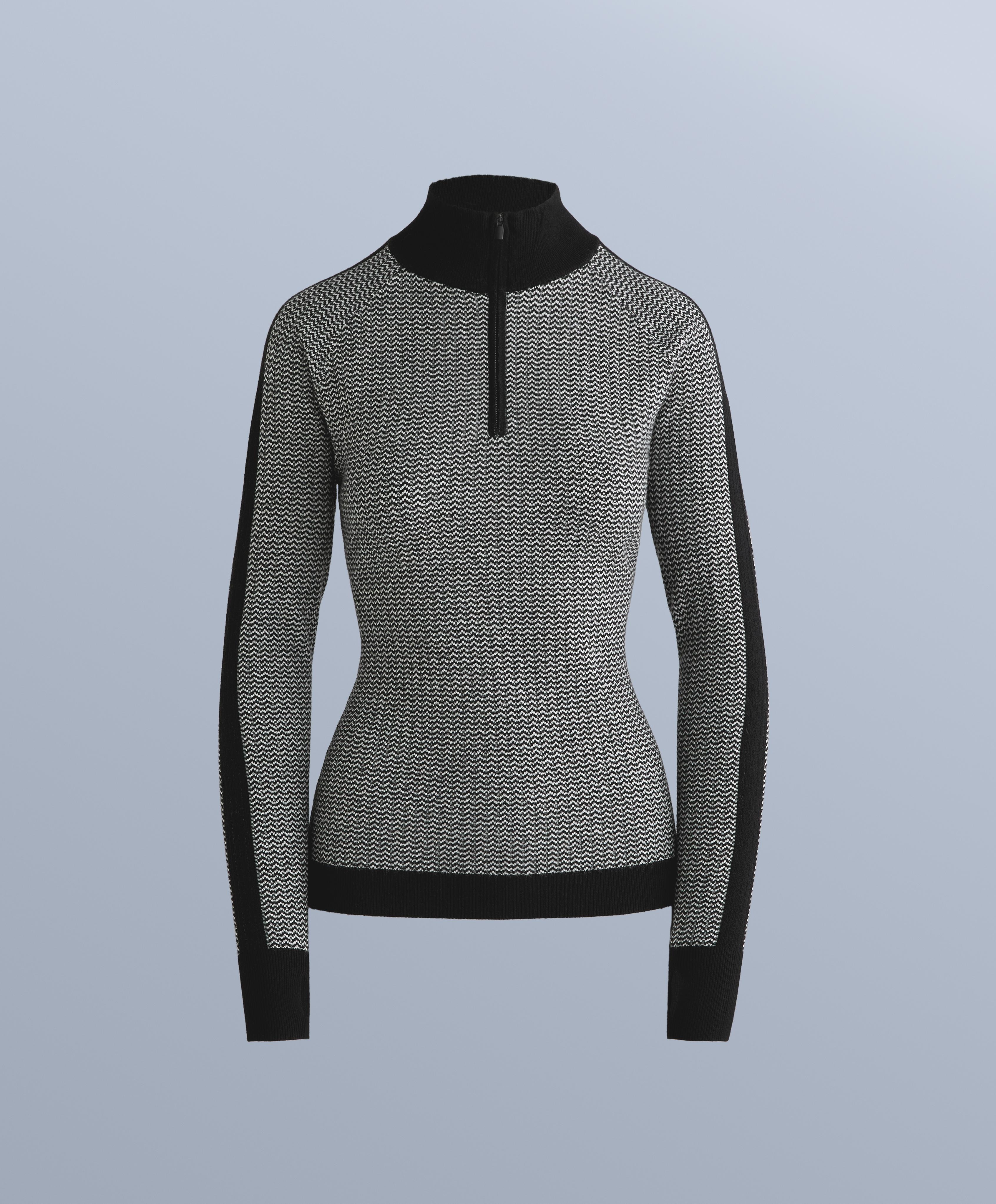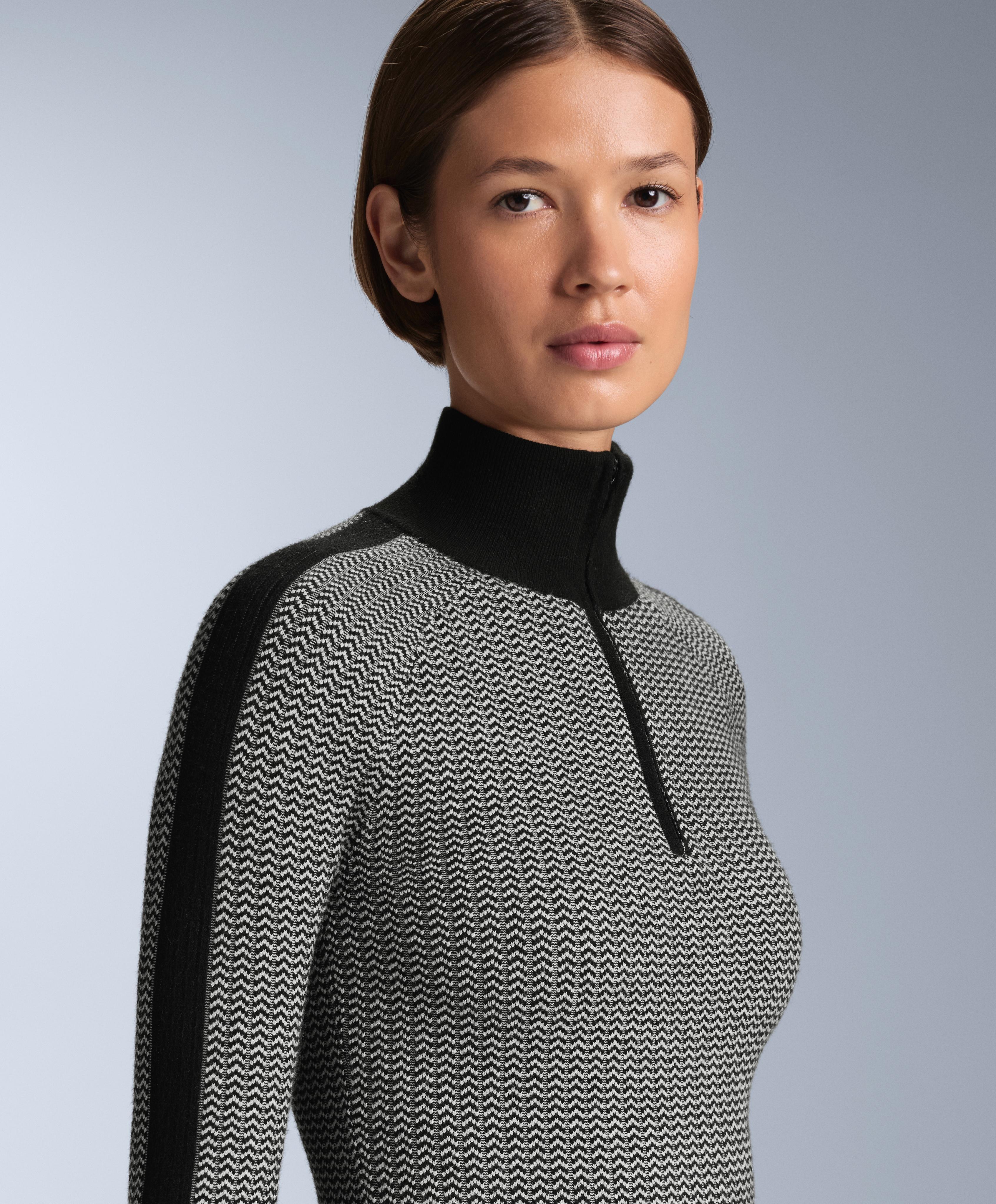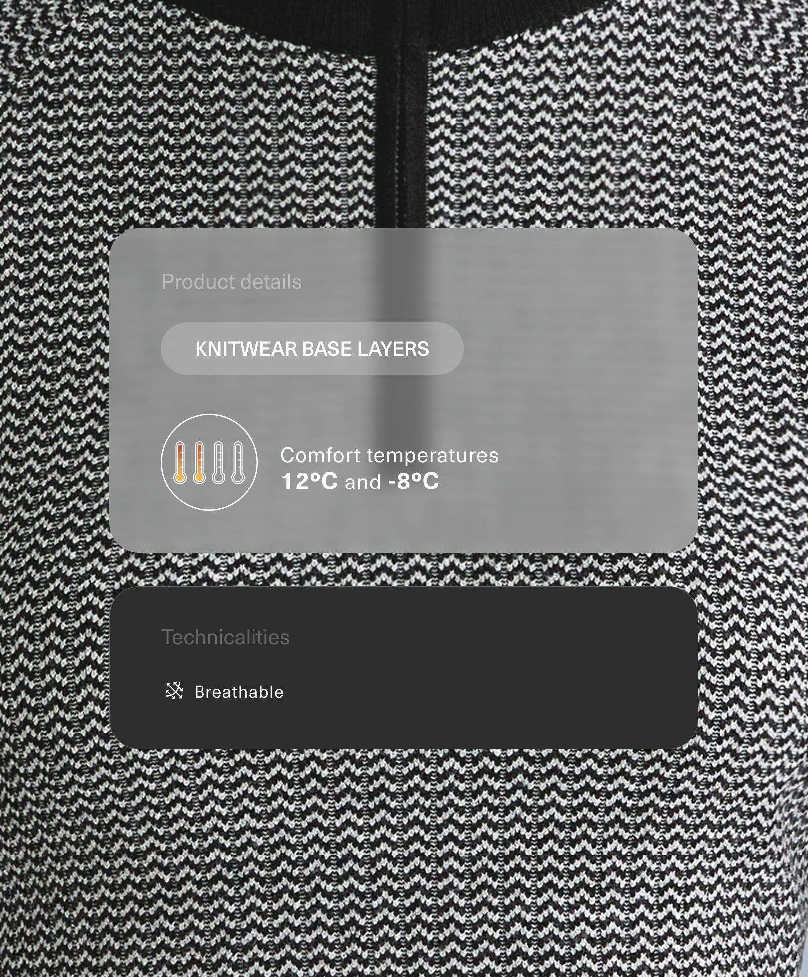 Базовый слой с длинными рукавами, высоким воротом и застежкой-молнией спереди до уровня груди. Стратегически продуманное отверстие в манжете рукава позволяет продеть большой палец для большей подвижности. Дышащая жаккардовая ткань. Этот предмет одежды сертифицирован как выдерживающий температуру 12ºC при низкой активности и -8ºC при умеренной активности в ходе стандартизированного испытания с имитацией ветра 0,4 м/с. Надевать куртку, брюки, нижнее белье, носки, обувь, перчатки и вязаную шапку.