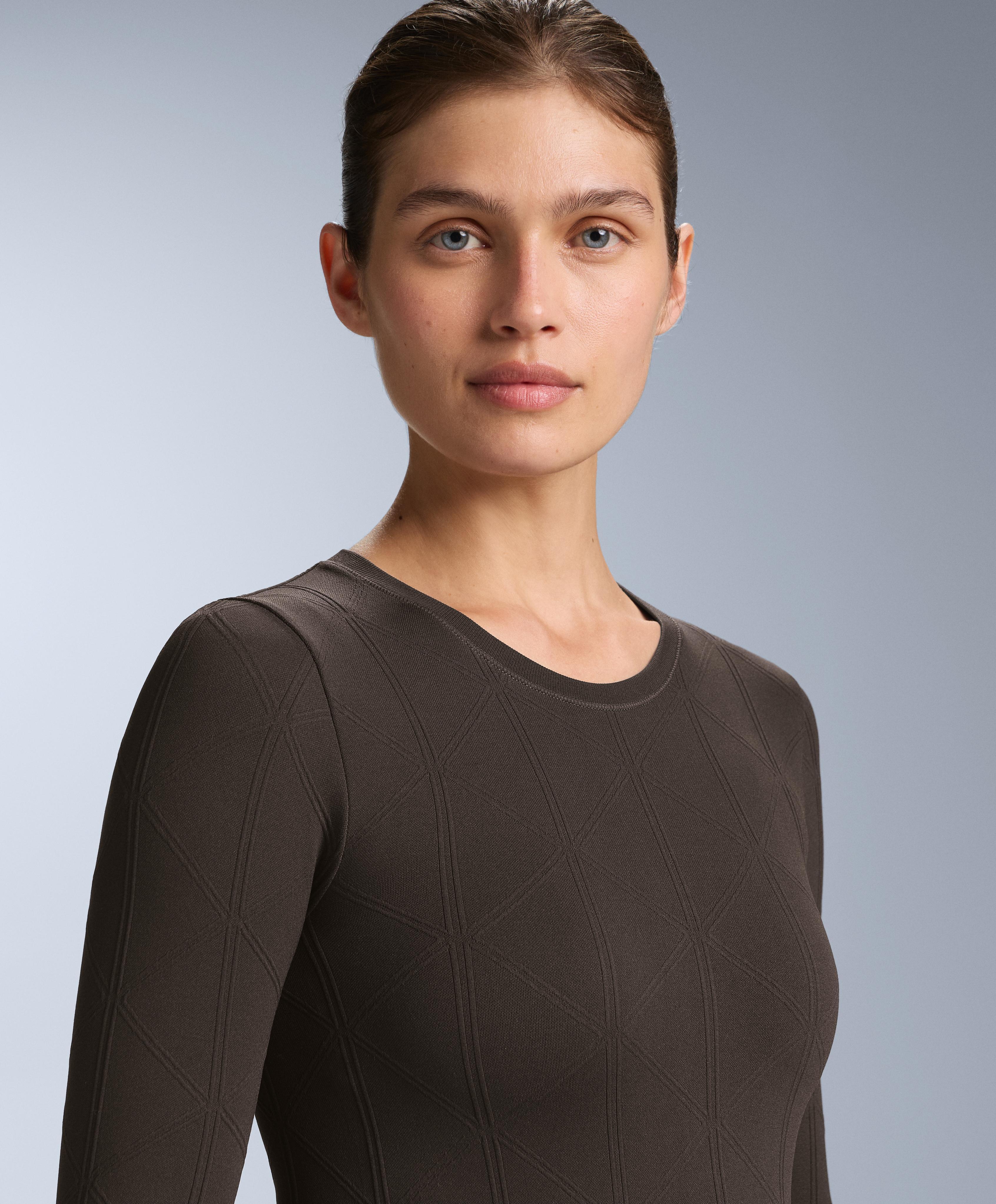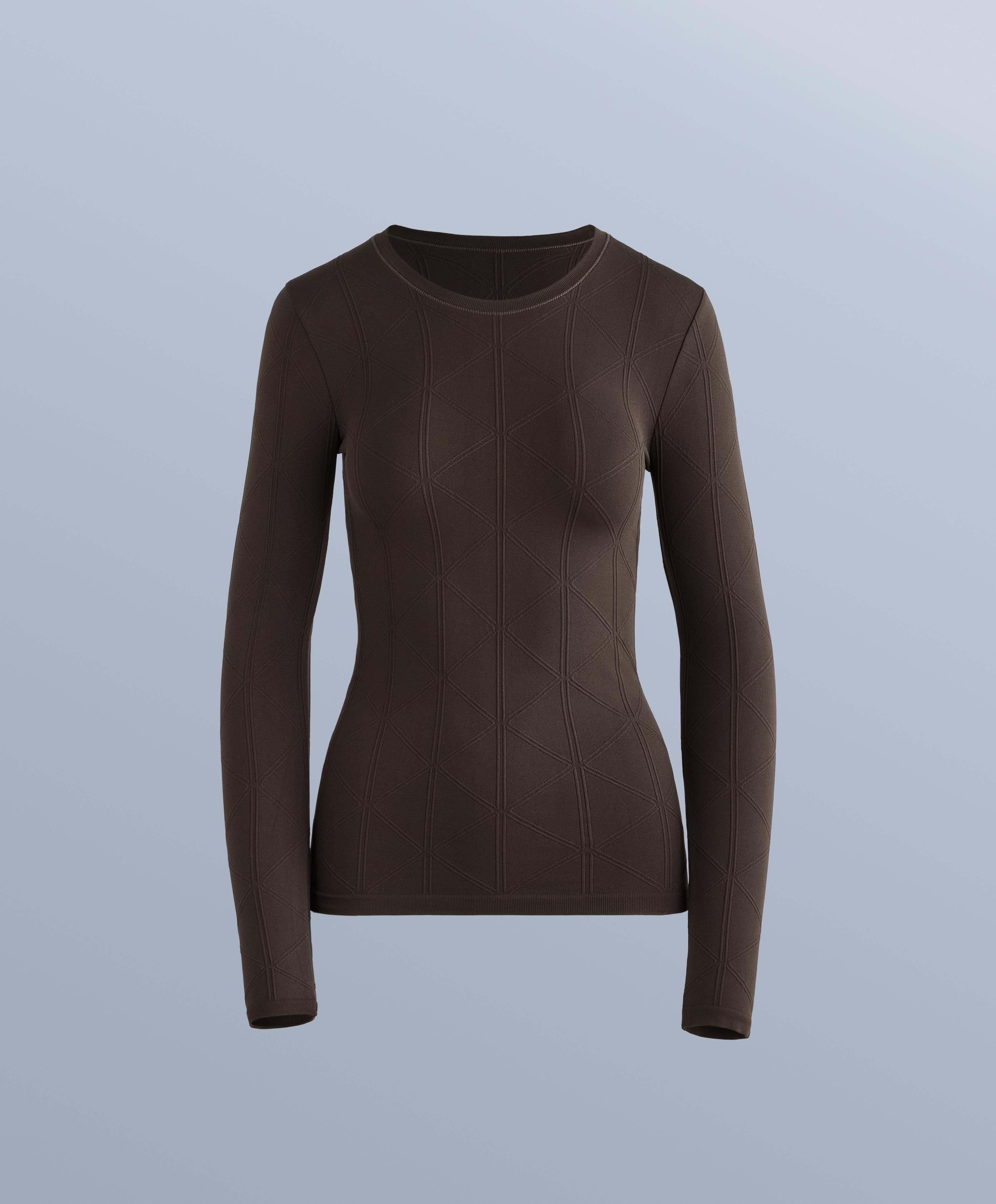 Бесшовная термофутболка seamless base layer с жаккардовым узором, длинным рукавом и круглым вырезом горловины, с первым слоем, приятным на ощупь. Дышащая и высокопрочная ткань.