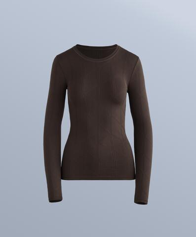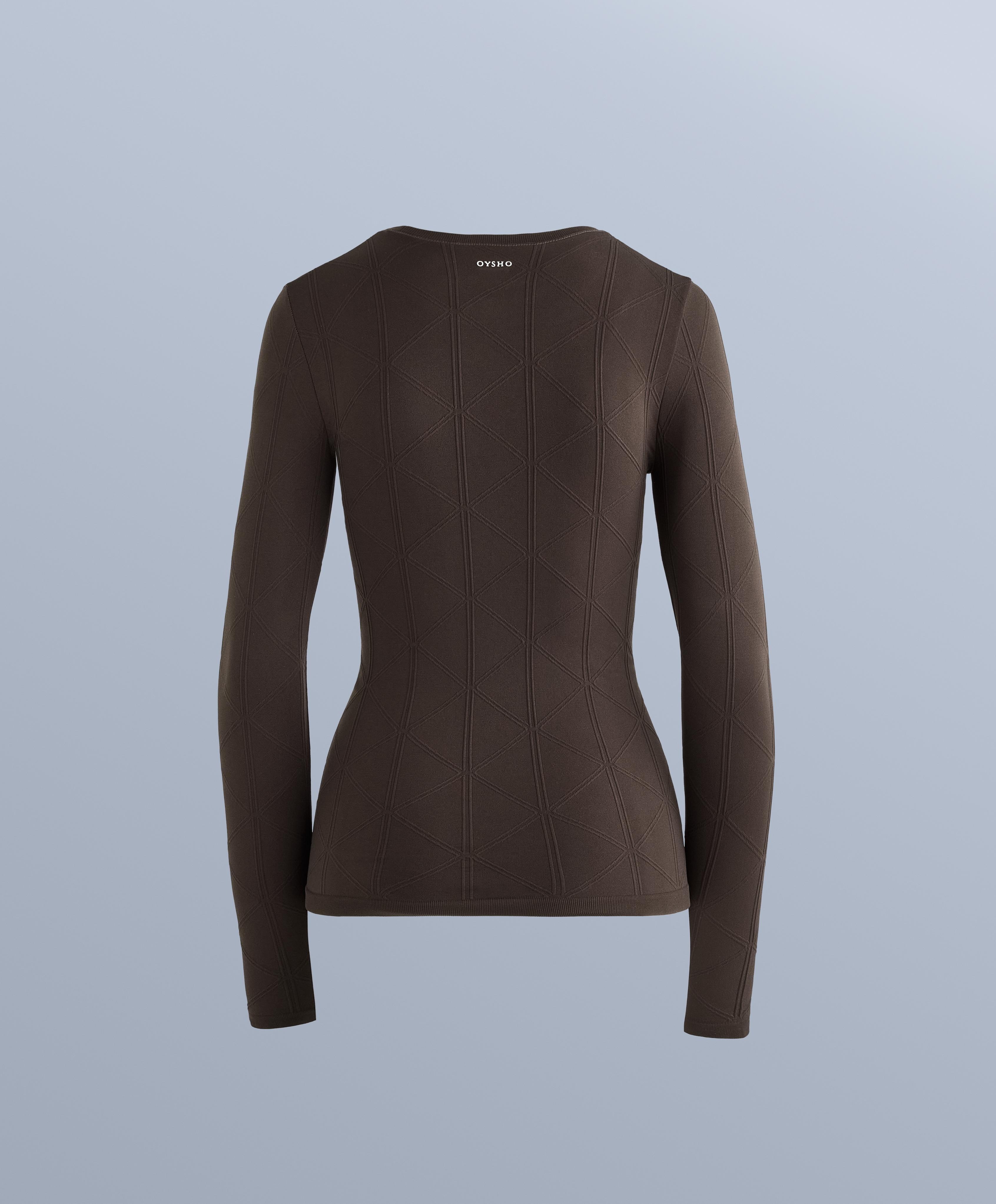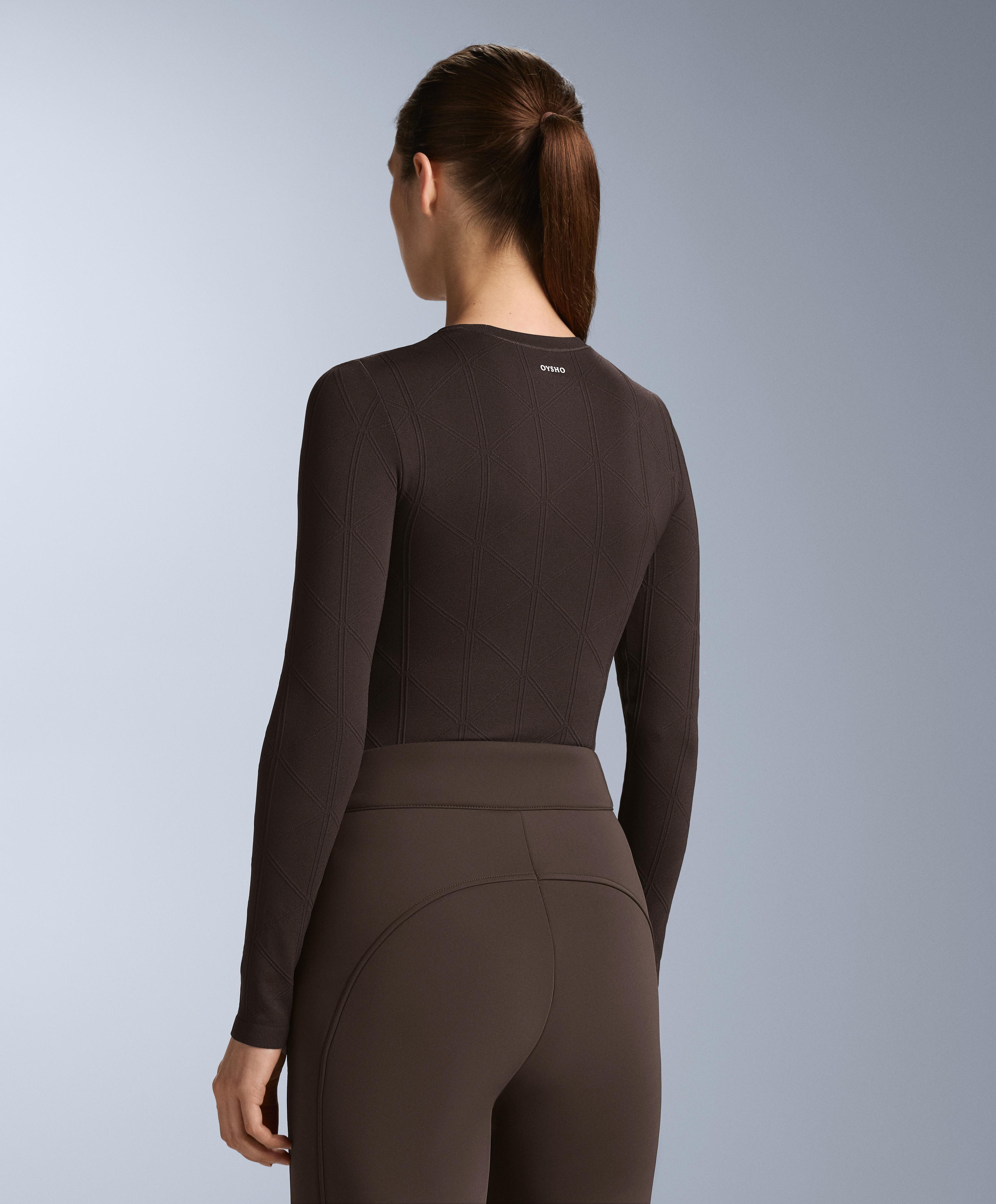 Oysho Термофутболка с жаккардовым узором seamless base layer, темно-коричневый