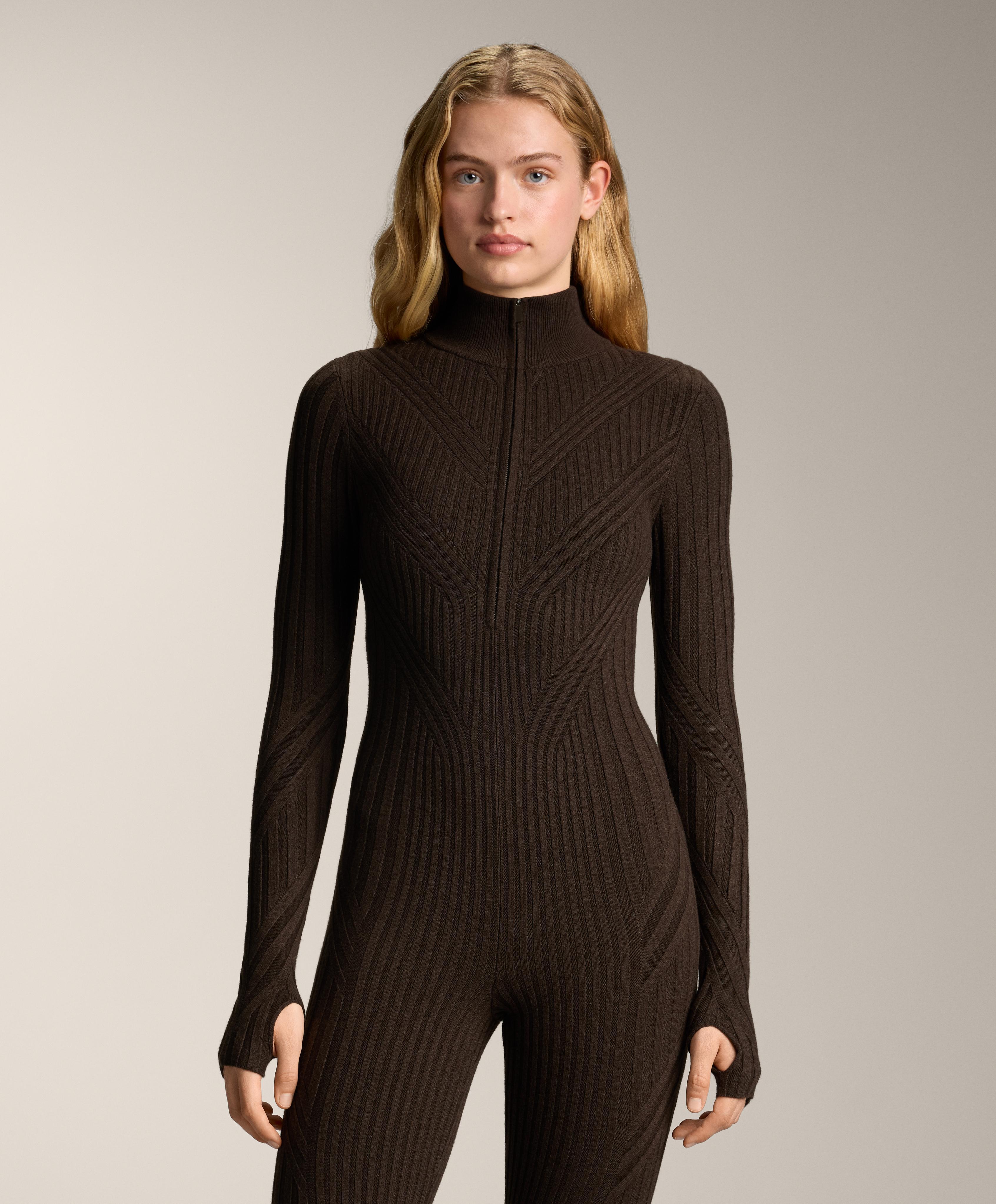 Oysho Термокомбинезон Base Layer в рубчик, темно-коричневый