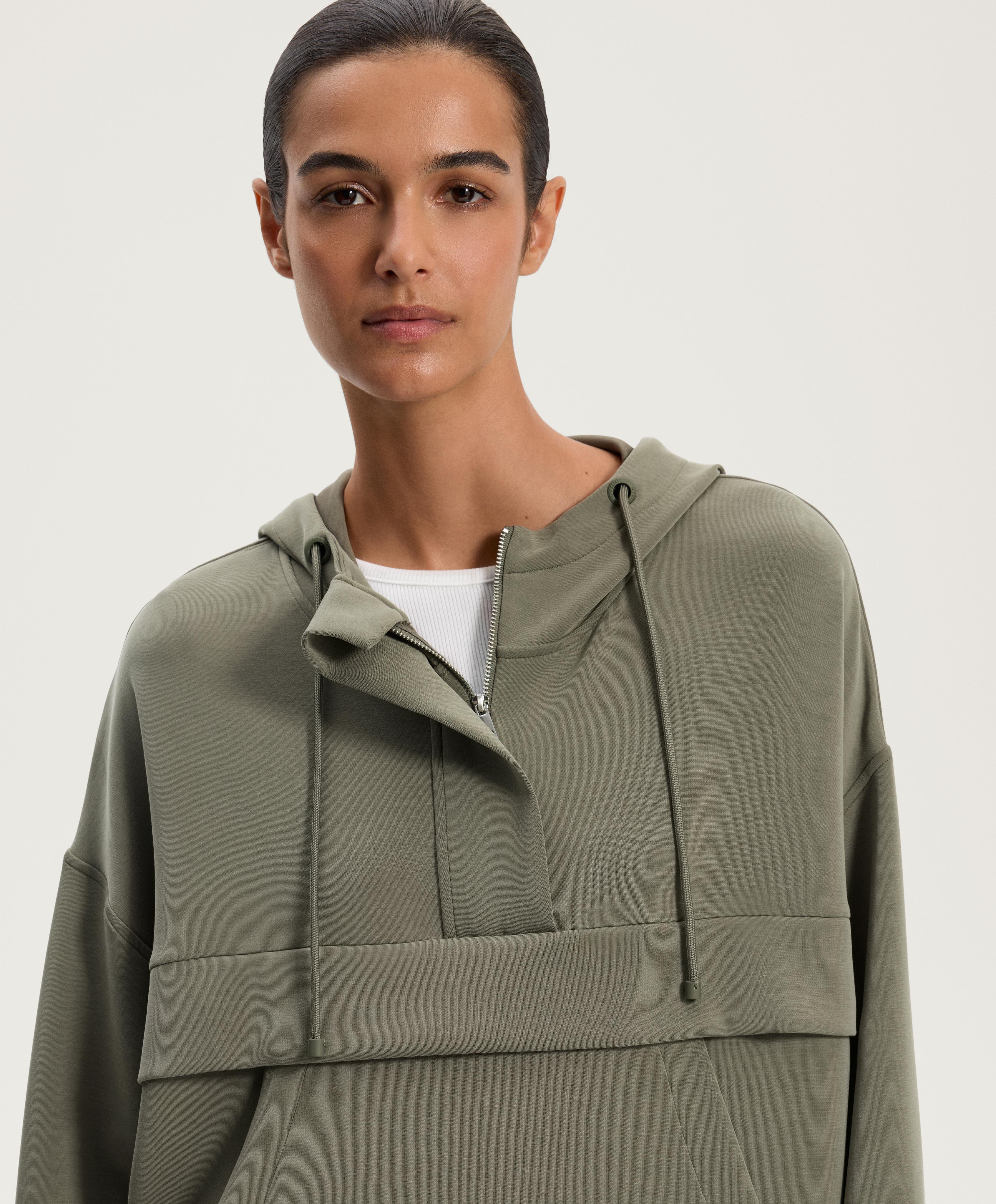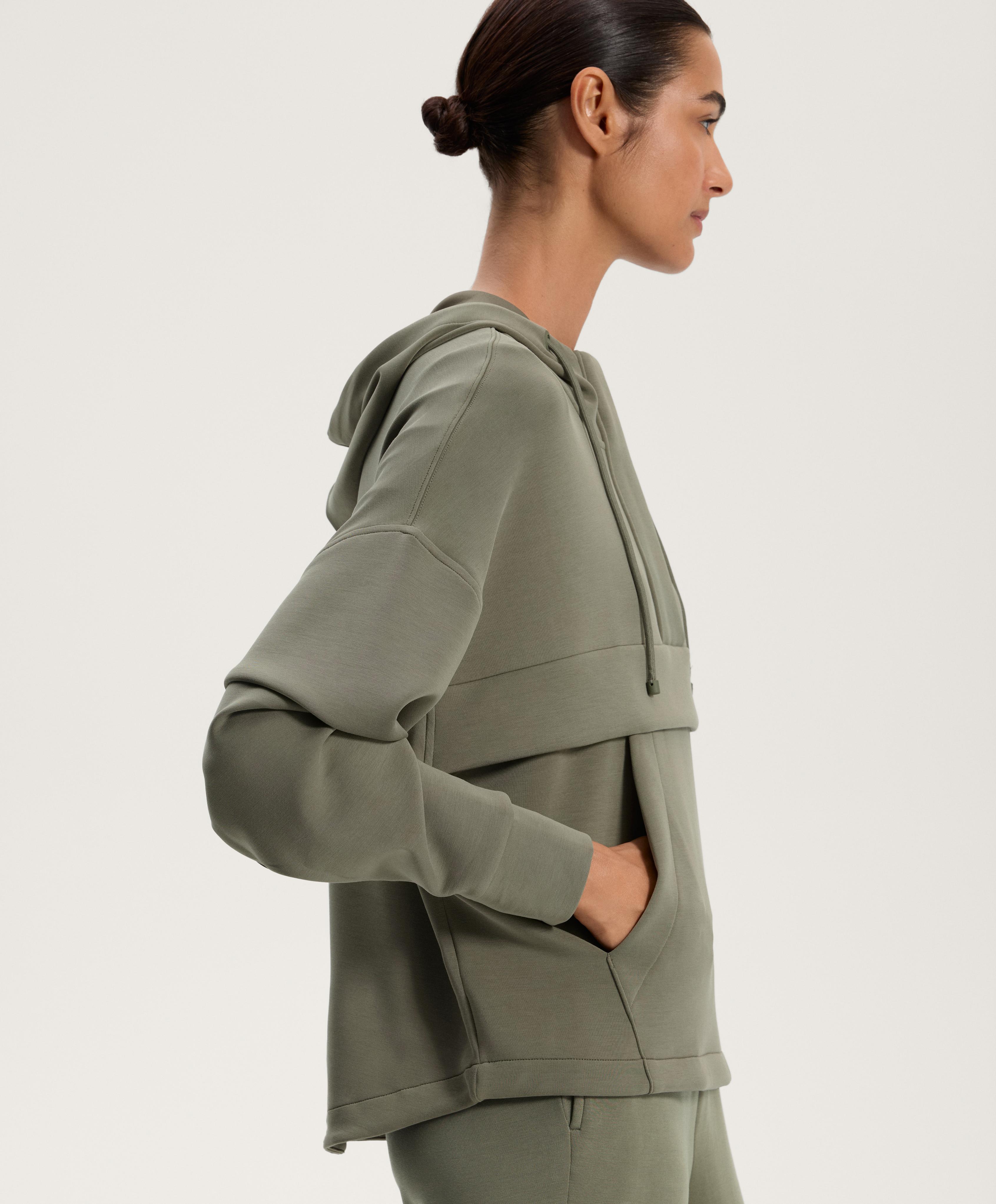 Толстовка из мягкой ткани Modal Soft Touch. Регулируемый капюшон с кулиской. Большой передний карман. Потайная застежка-молния до уровня груди.