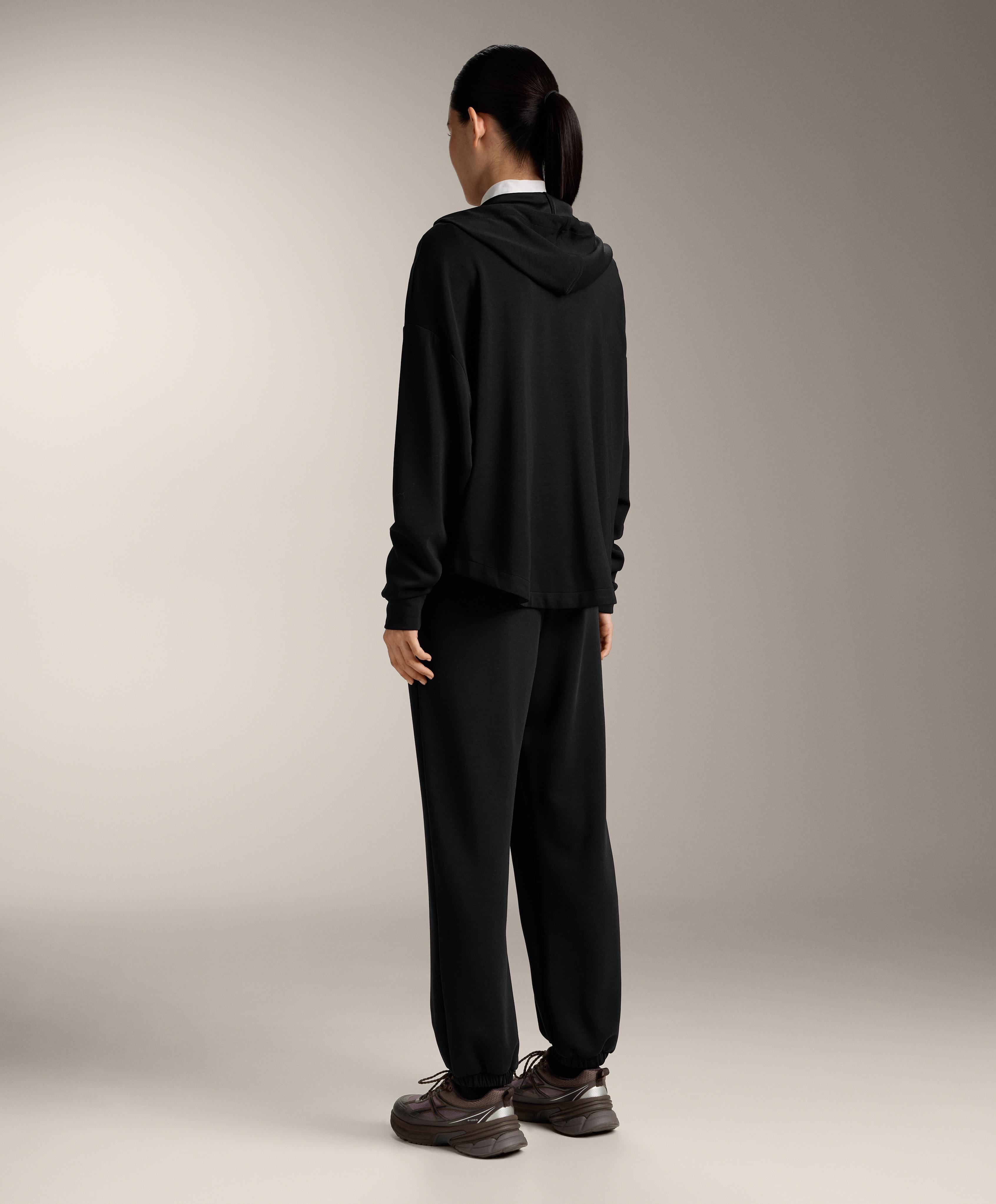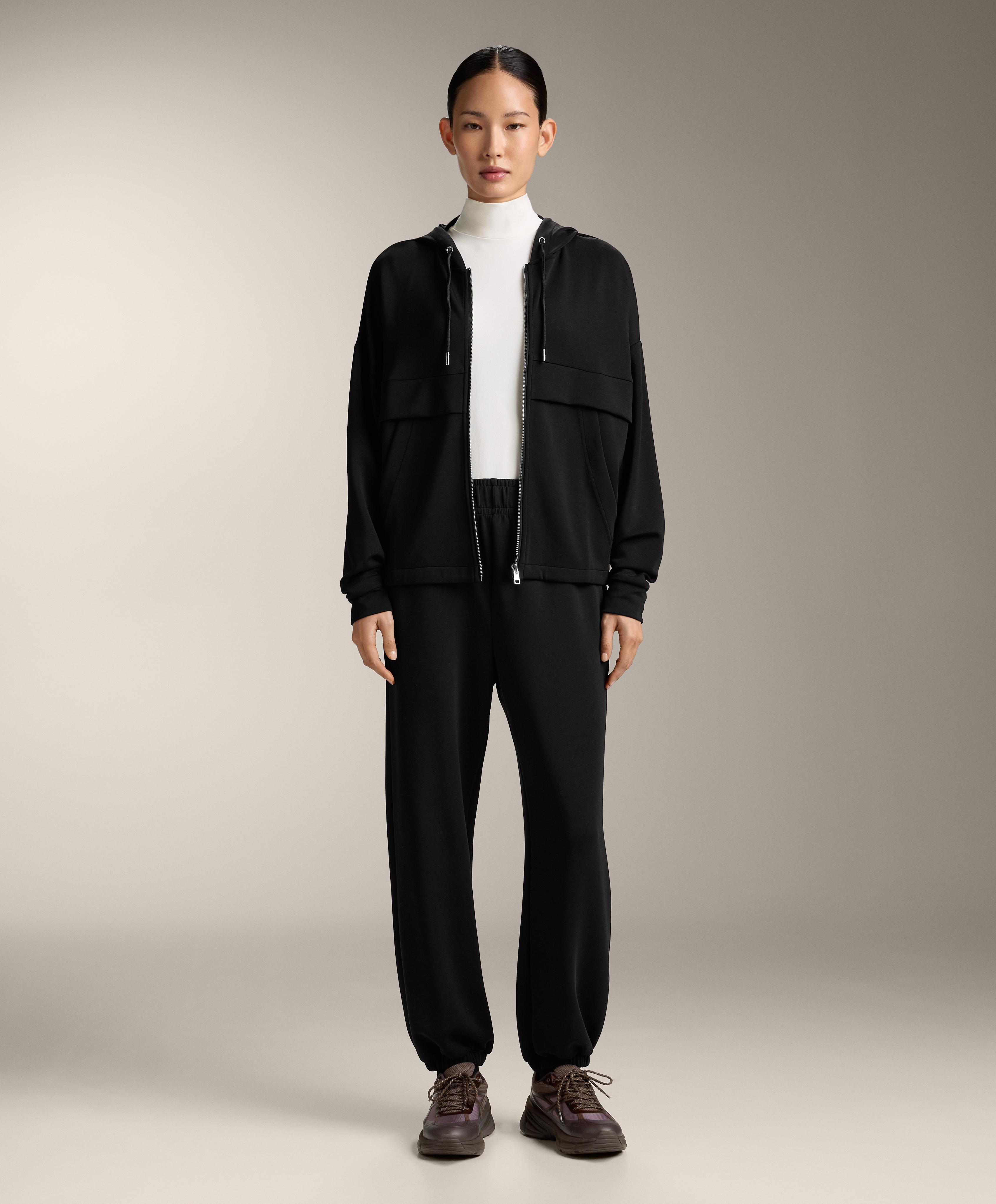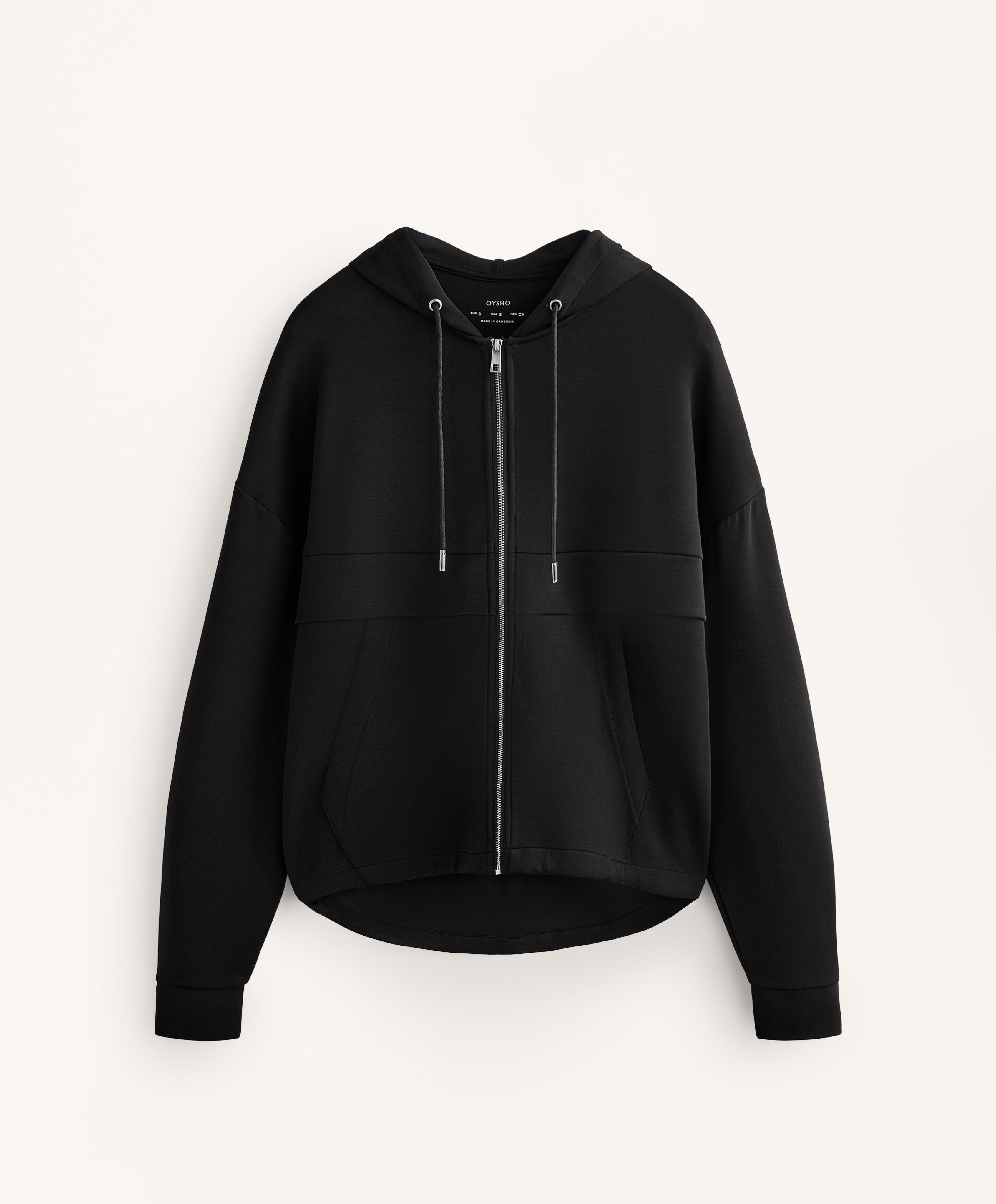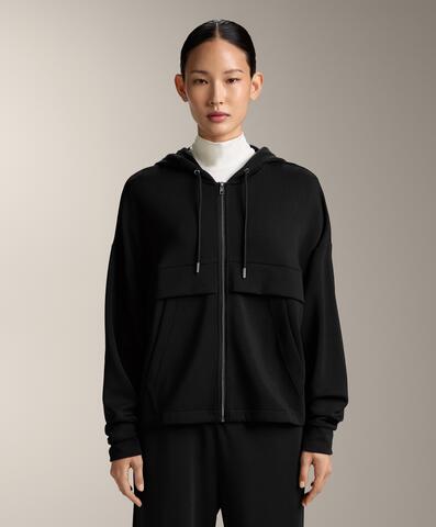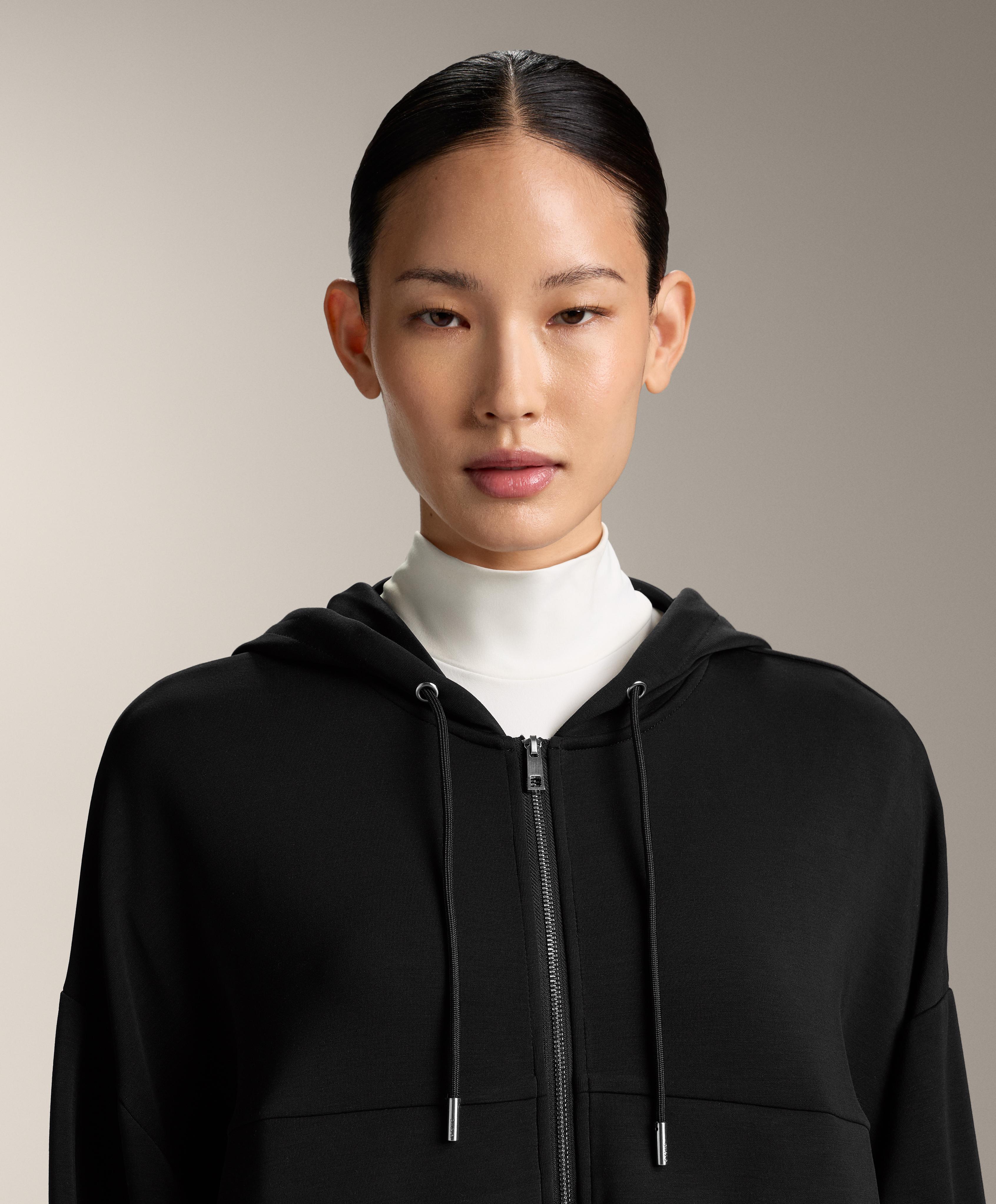 Толстовка с регулируемым капюшоном на кулиске и большим передним карманом. Потайная передняя молния до груди. Дышащая ткань из модала с очень мягким прикосновением.