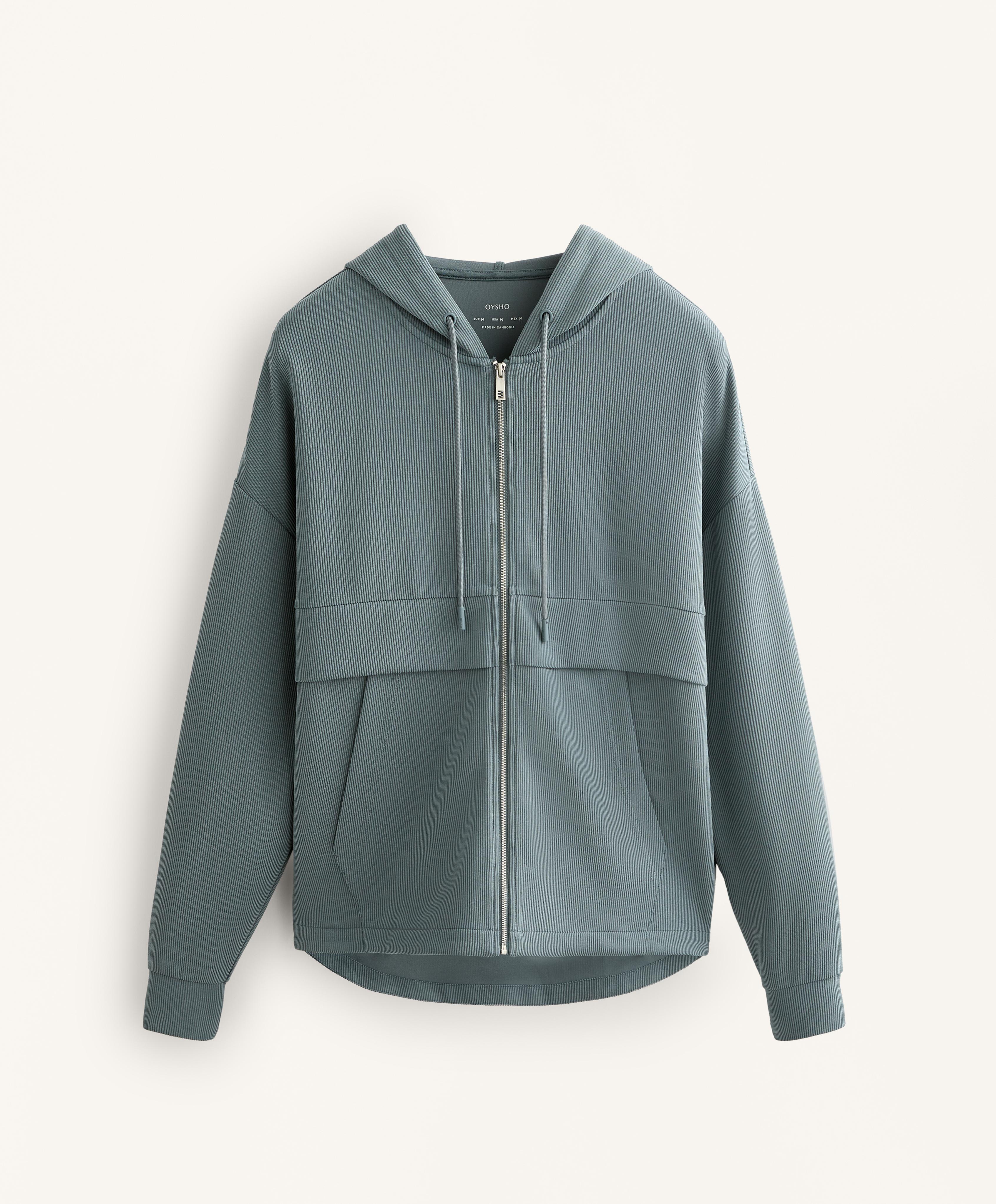 Oysho Толстовка Rib на молнии из модала с мягким прикосновением, синевато-серый