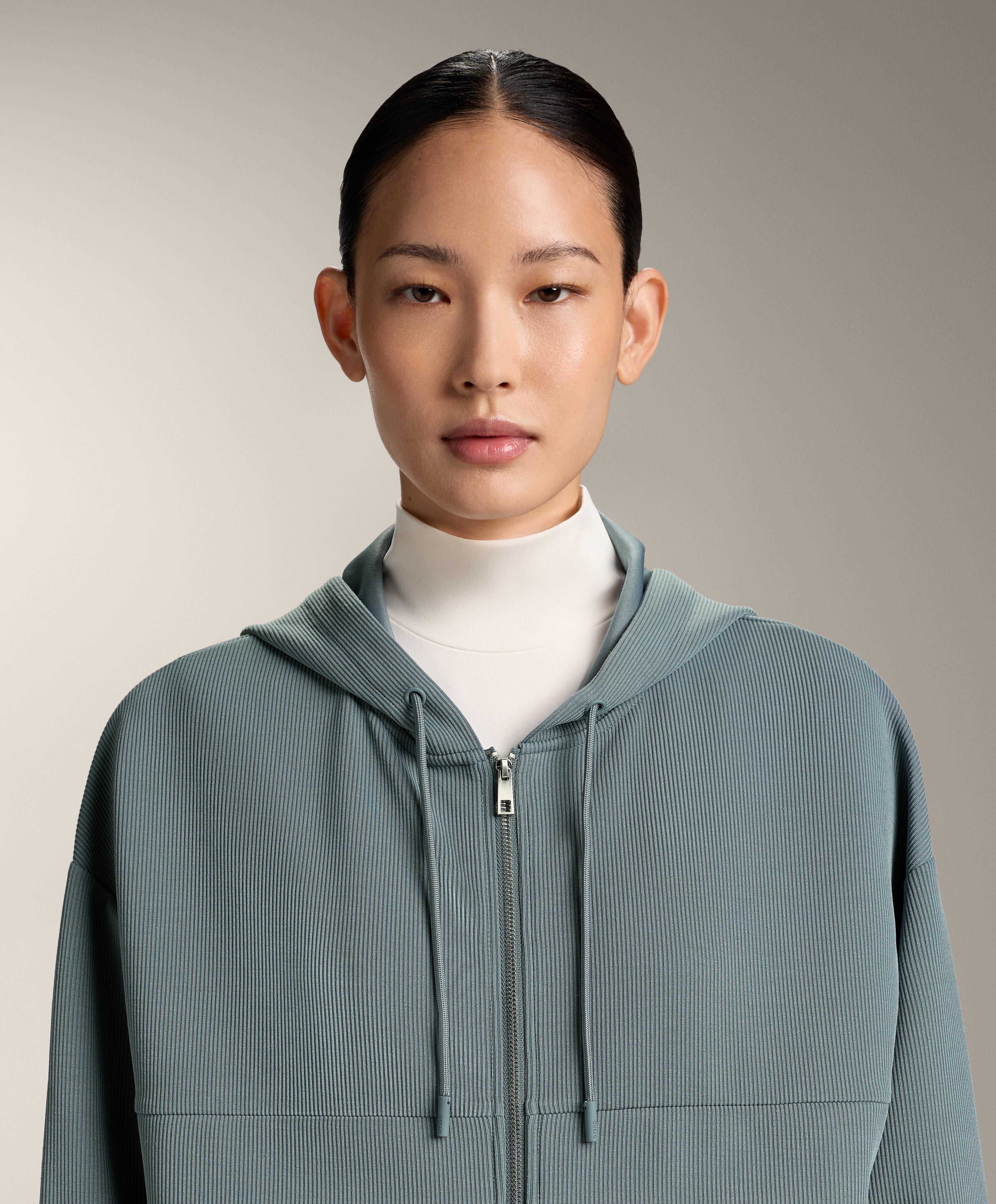 Толстовка Rib с регулируемым капюшоном на шнурке и большим передним карманом. Скрытая передняя молния до уровня груди. Дышащая ткань из модала с очень мягким прикосновением.