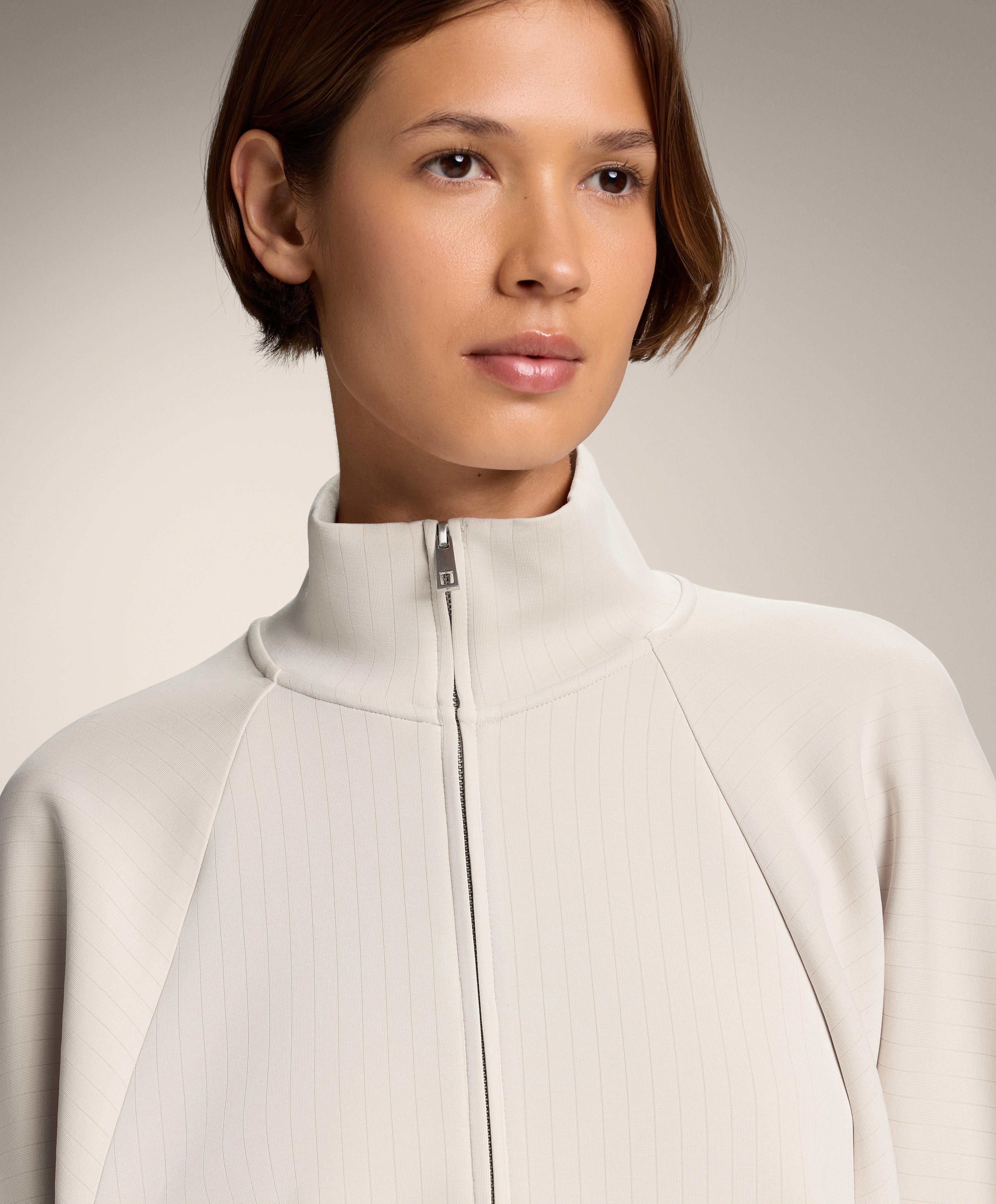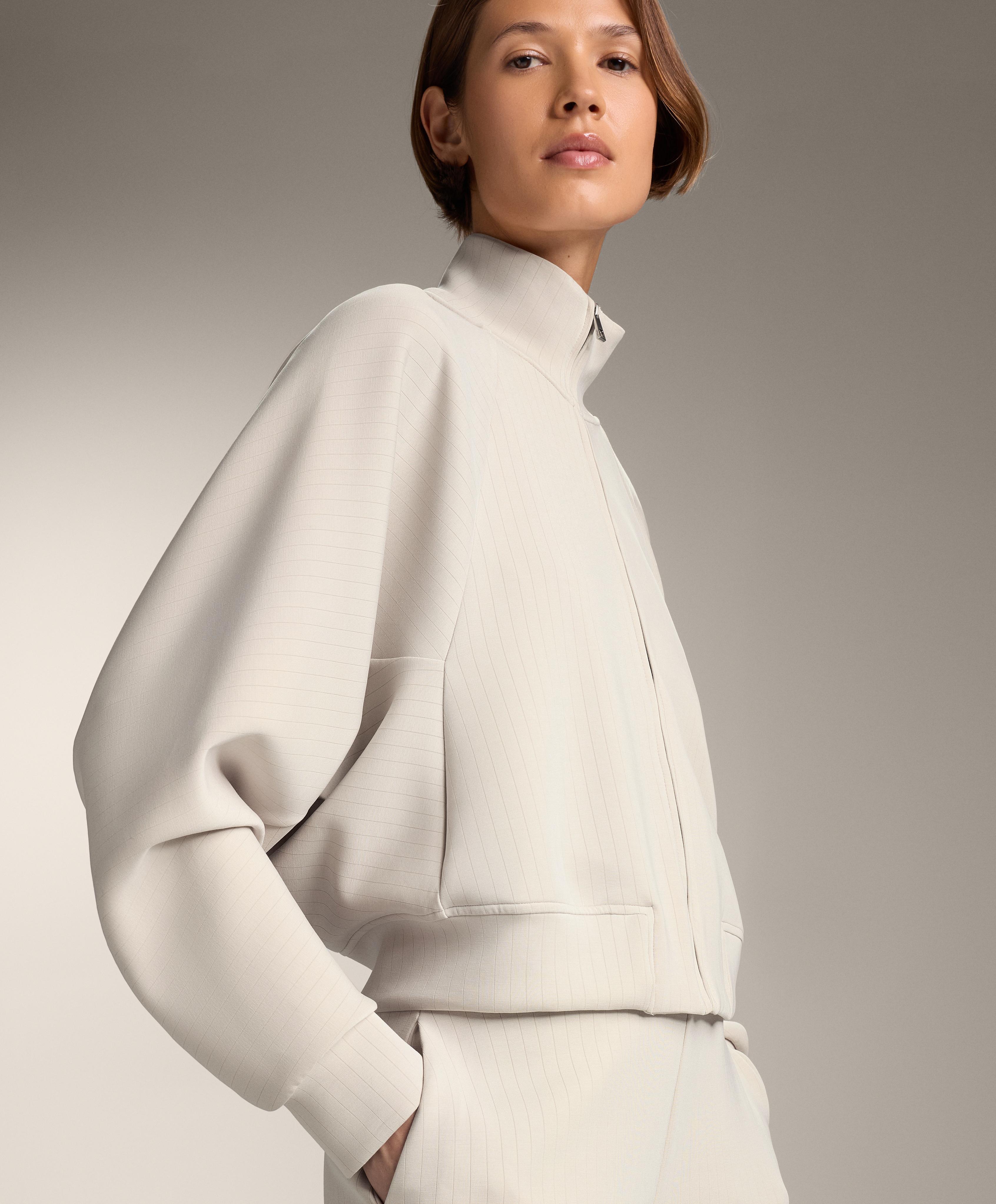 Куртка в полоску с высоким воротом и молнией спереди. Широкие рукава с манжетами. Дышащая ткань из модала, очень мягкая на ощупь.