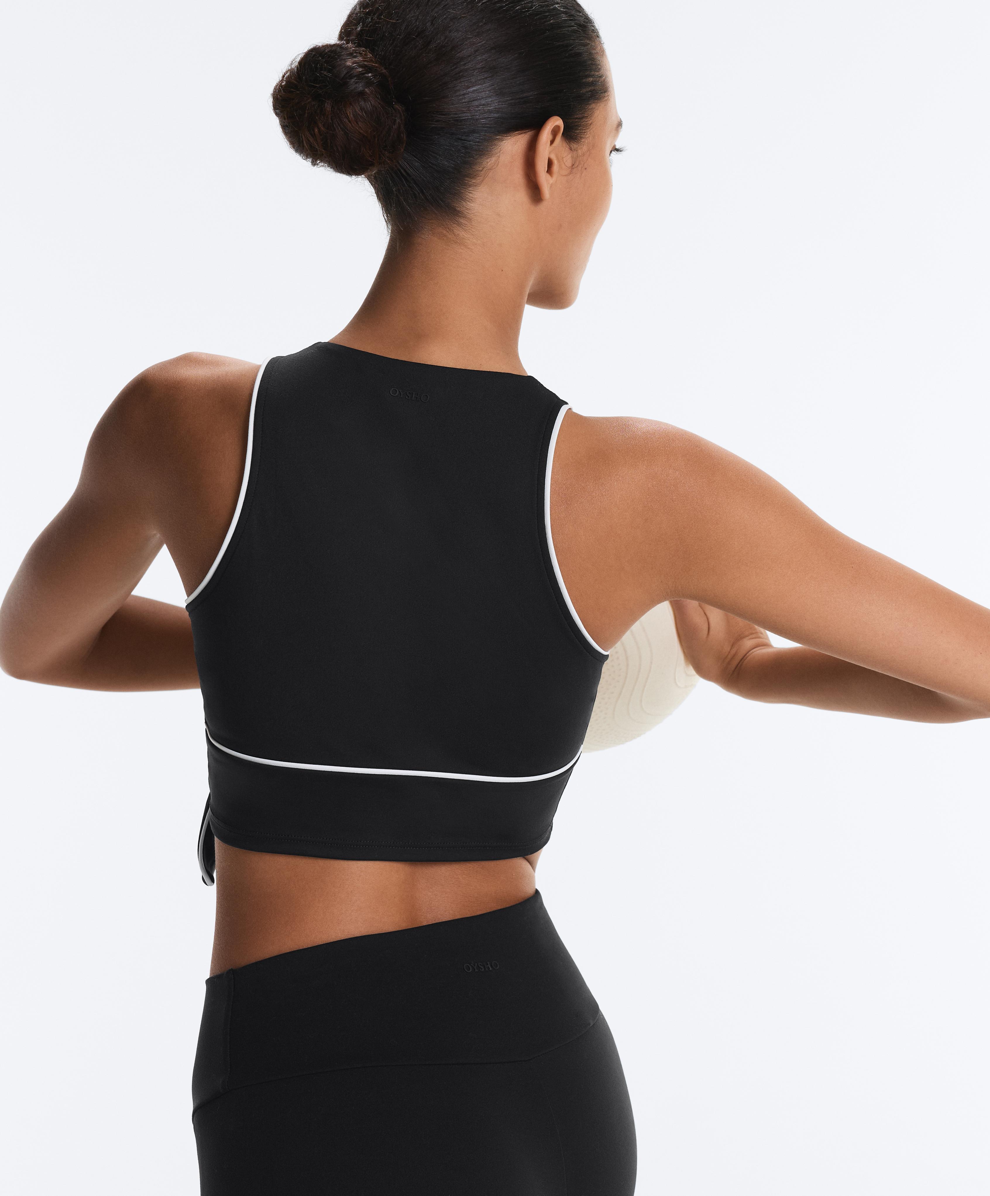 Топ без рукавов Comfortlux со встроенным бюстгальтером и слегка уплотненными съемными чашечками. Контрастная завязка на талии. Дышащая, высокопрочная, быстросохнущая ткань.