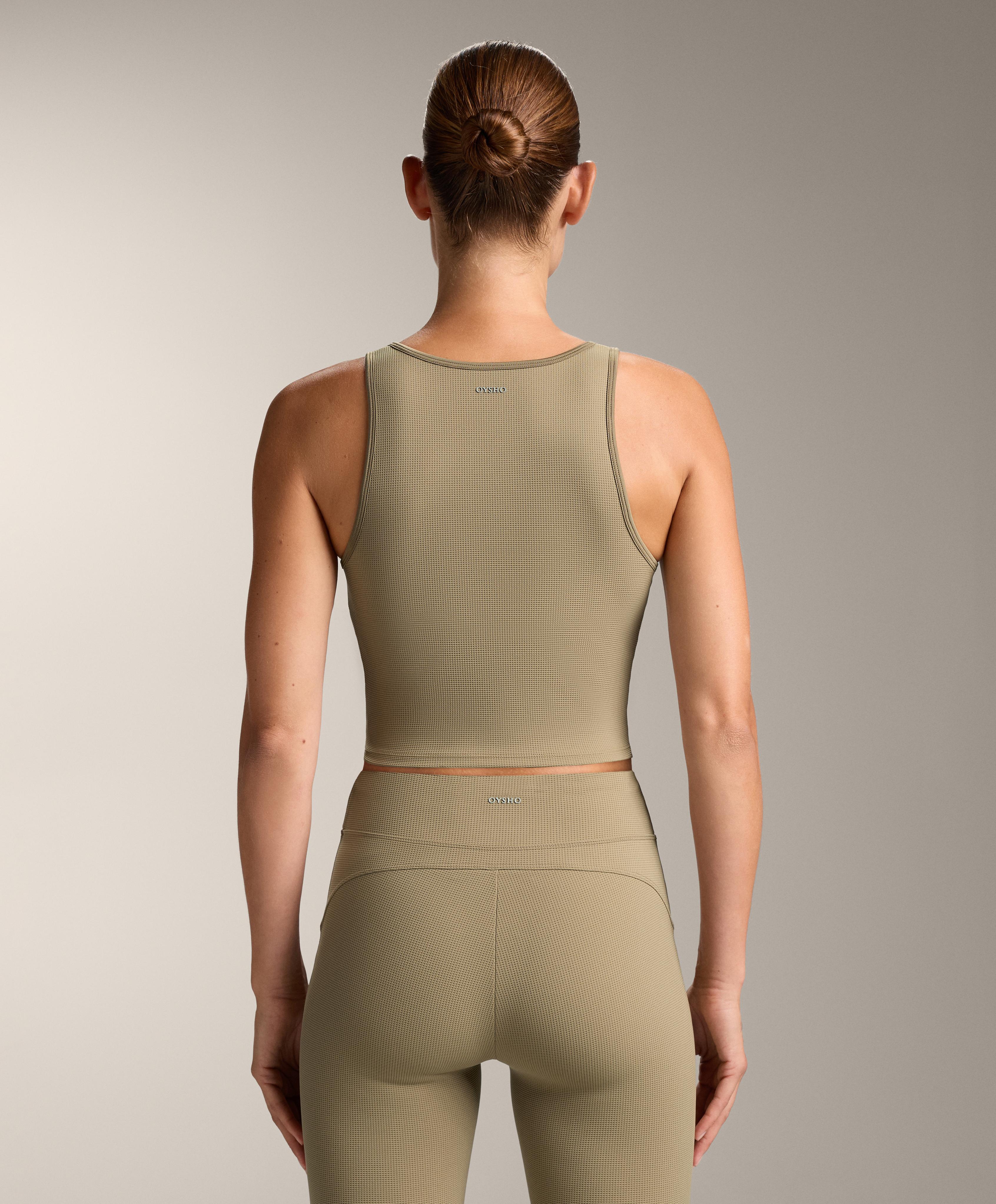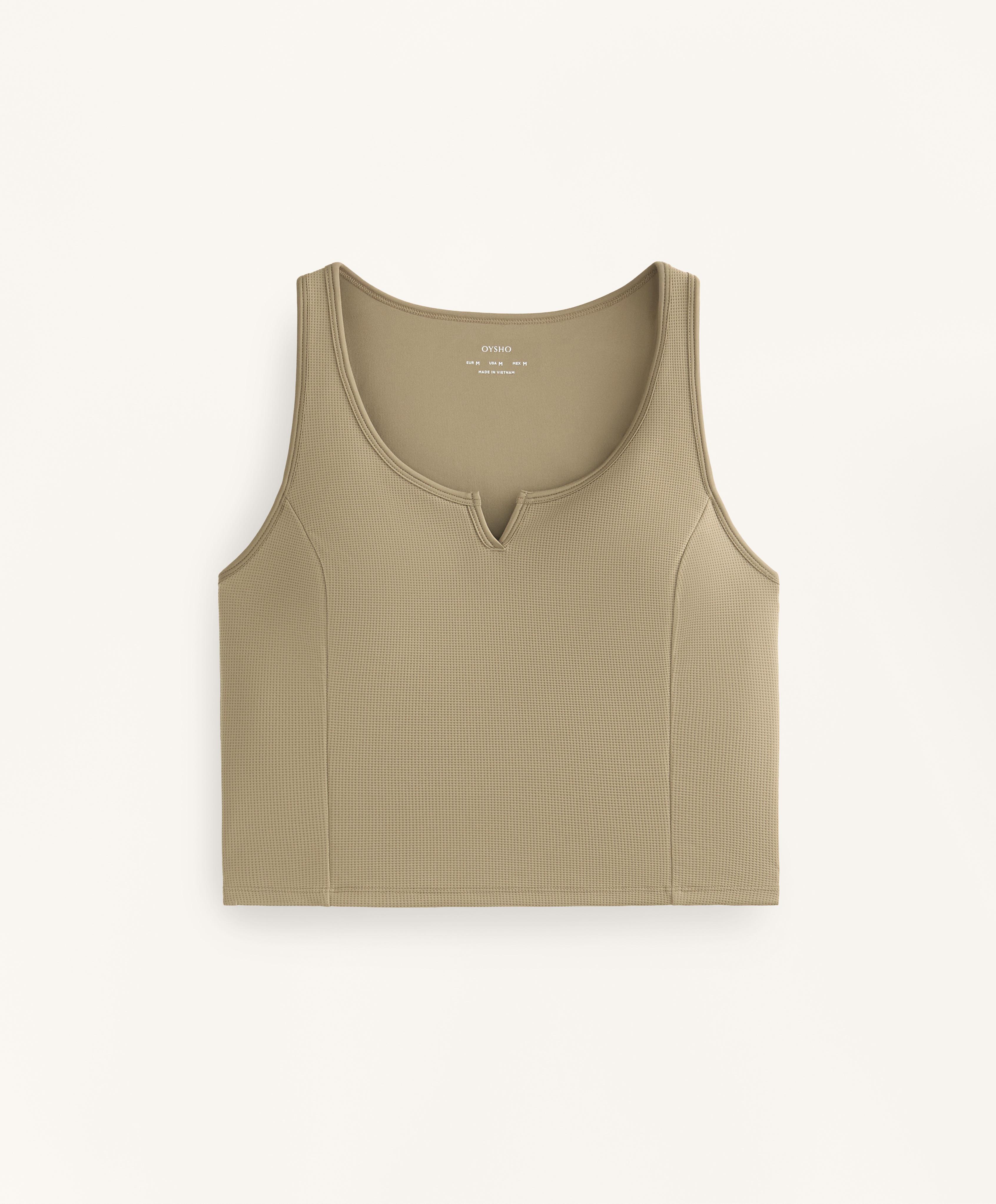 Топ с вафельной текстурой и встроенным бюстгальтером со съемными чашечками с легким наполнителем. Дышащая, высокопрочная ткань.