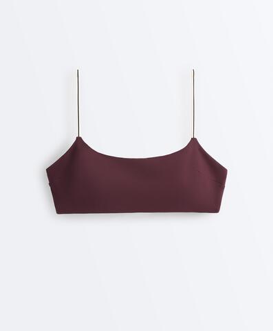OYSHO Топ бикини с контрастными бретельками, темно-сливовый