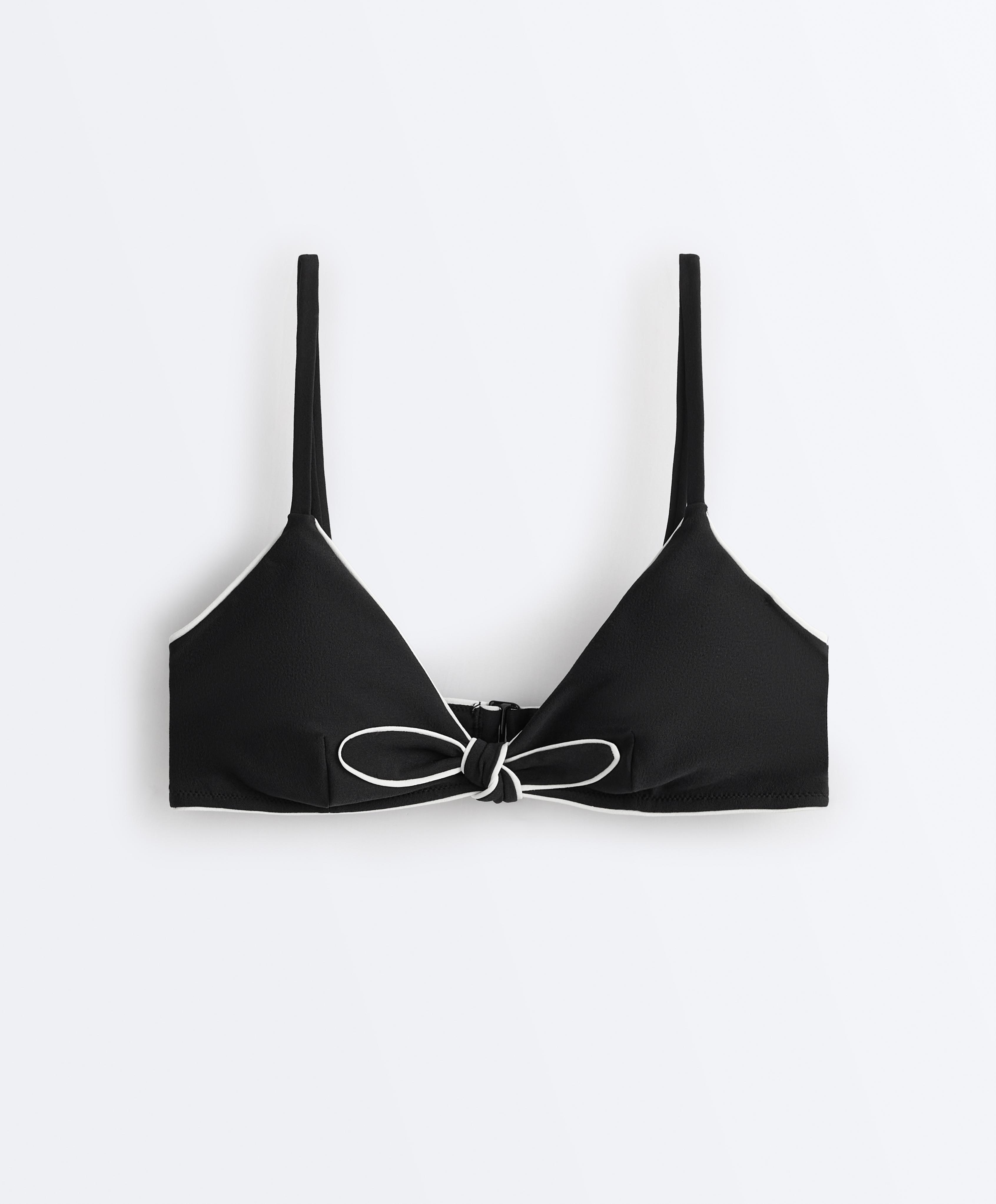 OYSHO Топ-бикини с треугольными чашечками и бантом, черный