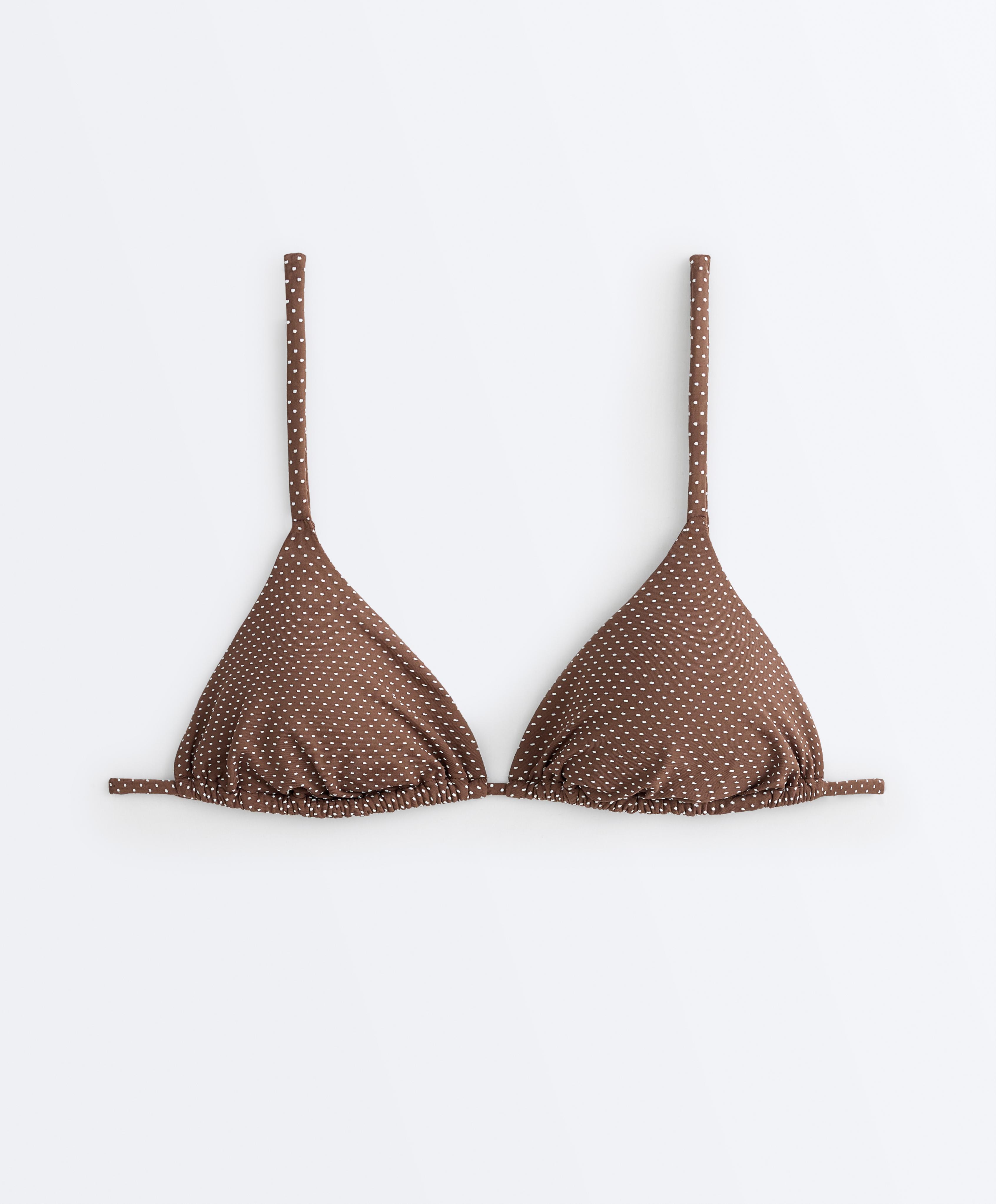 OYSHO Топ бикини с треугольными чашками в мелкий горошек, коричневый