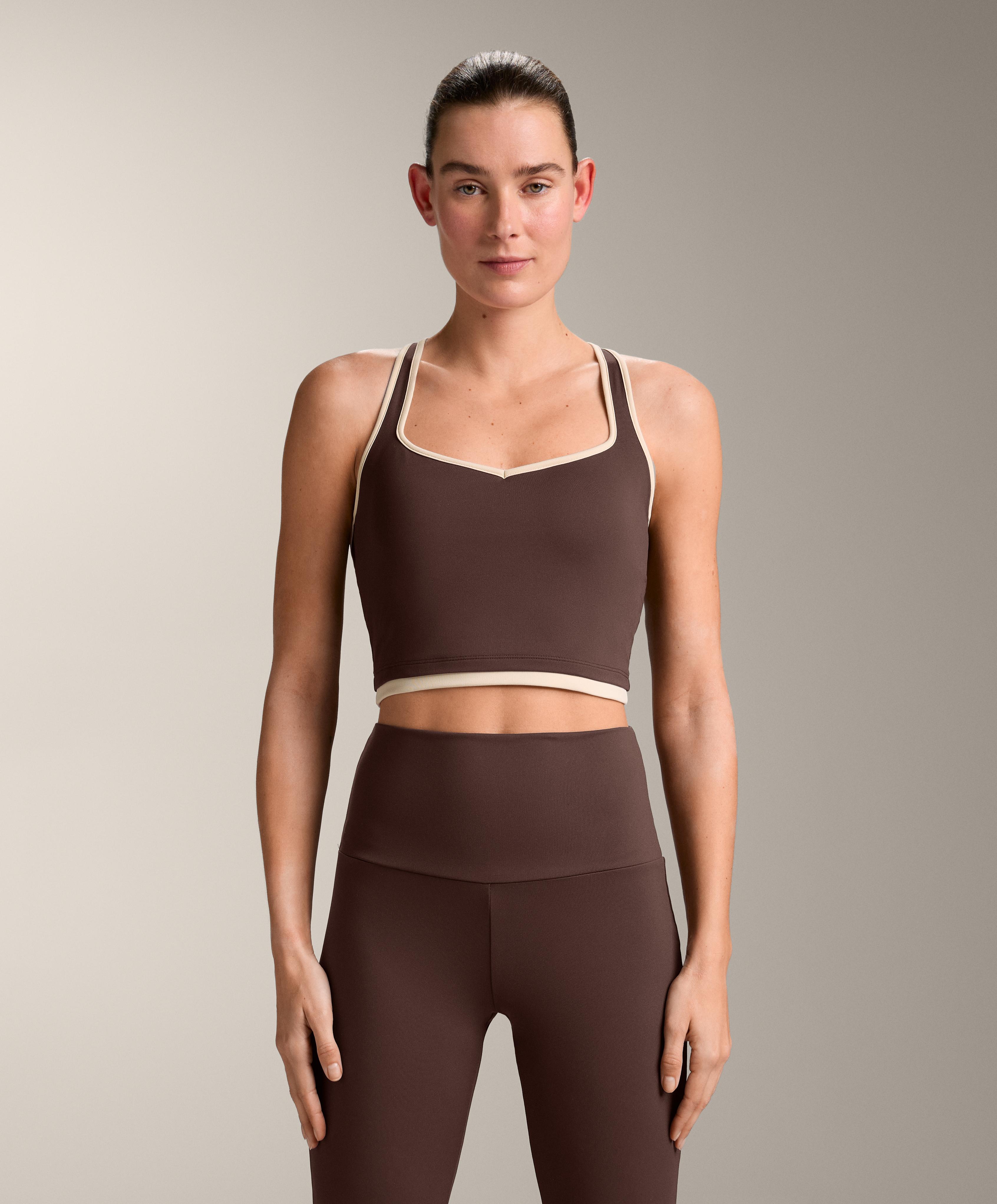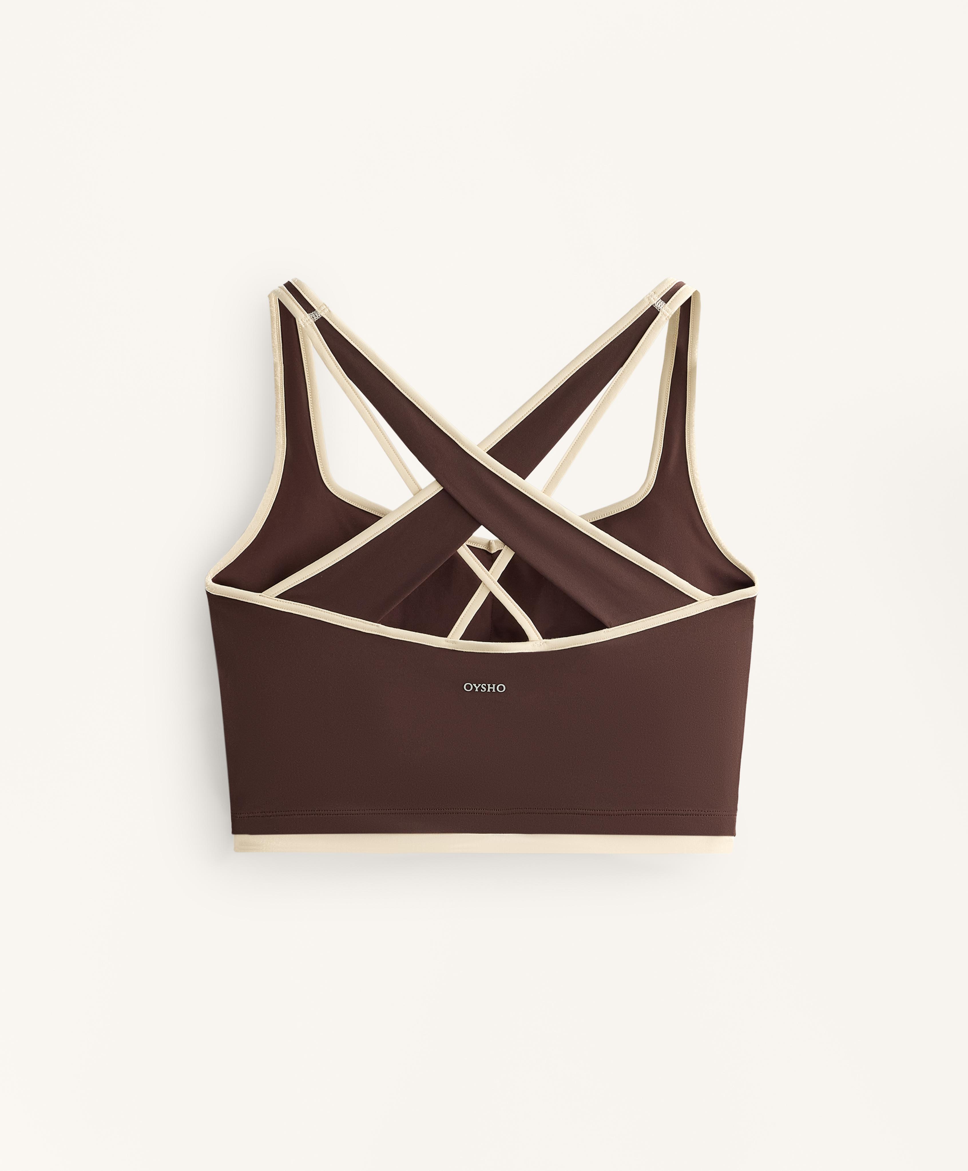 Oysho Топ Comfortlux с контрастной перекрестной спинкой, коричневый