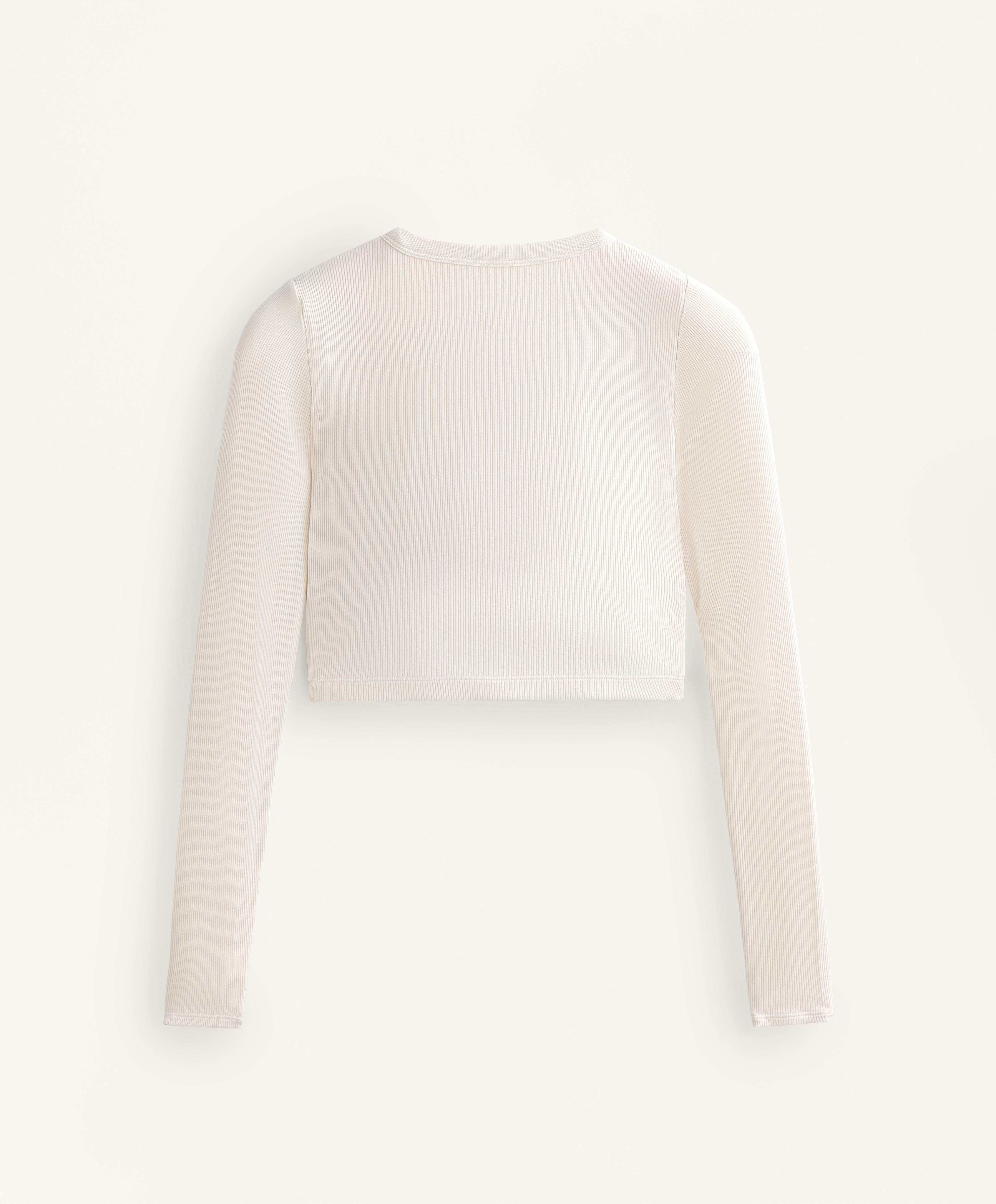 Oysho Топ Comfortlux с перекрестными деталями и длинными рукавами, экрю