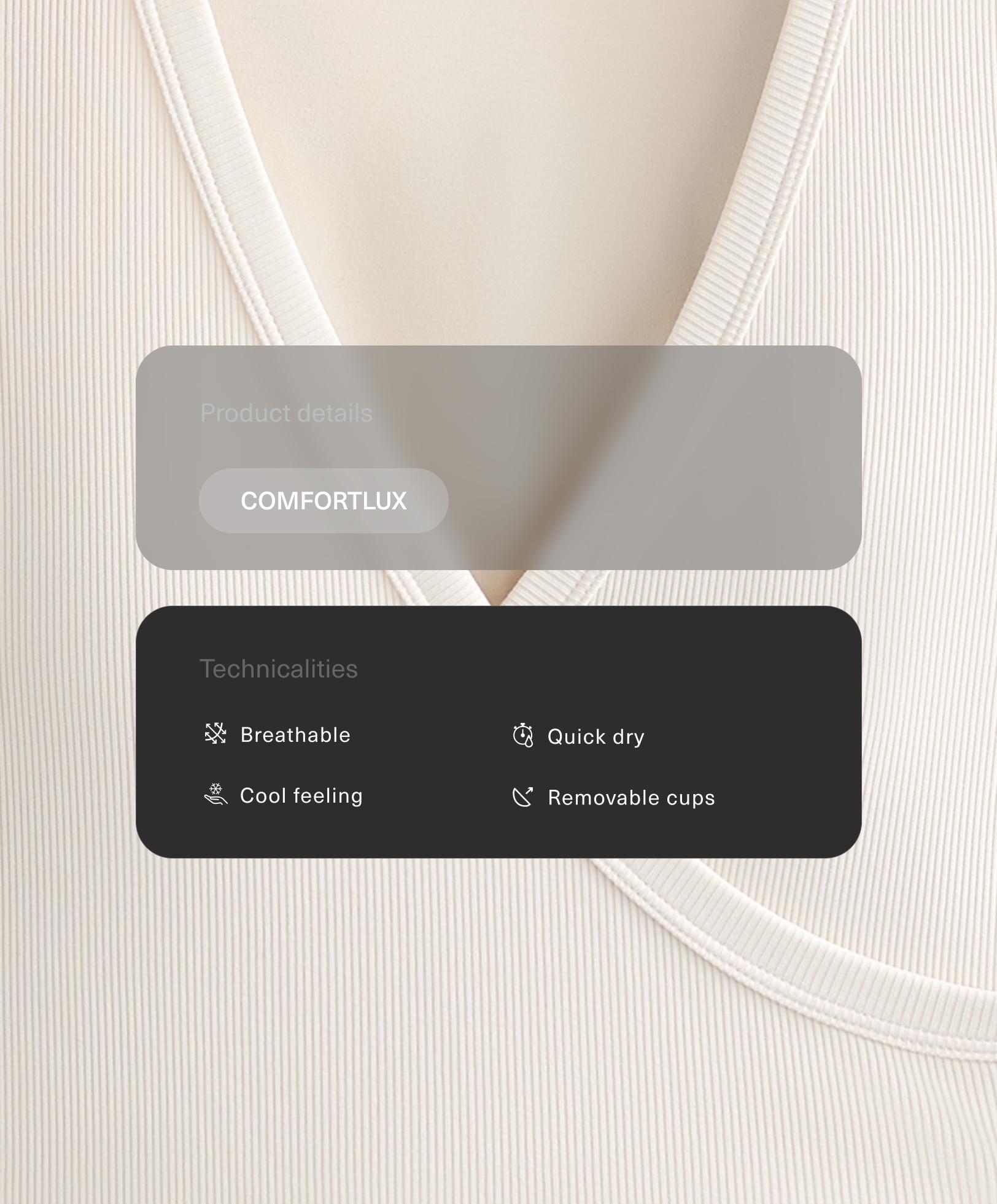 Tank top Comfortlux с длинными рукавами и съемными чашками с легкой подкладкой. Перекрестный вырез. Дышащая и приятная на ощупь ткань.