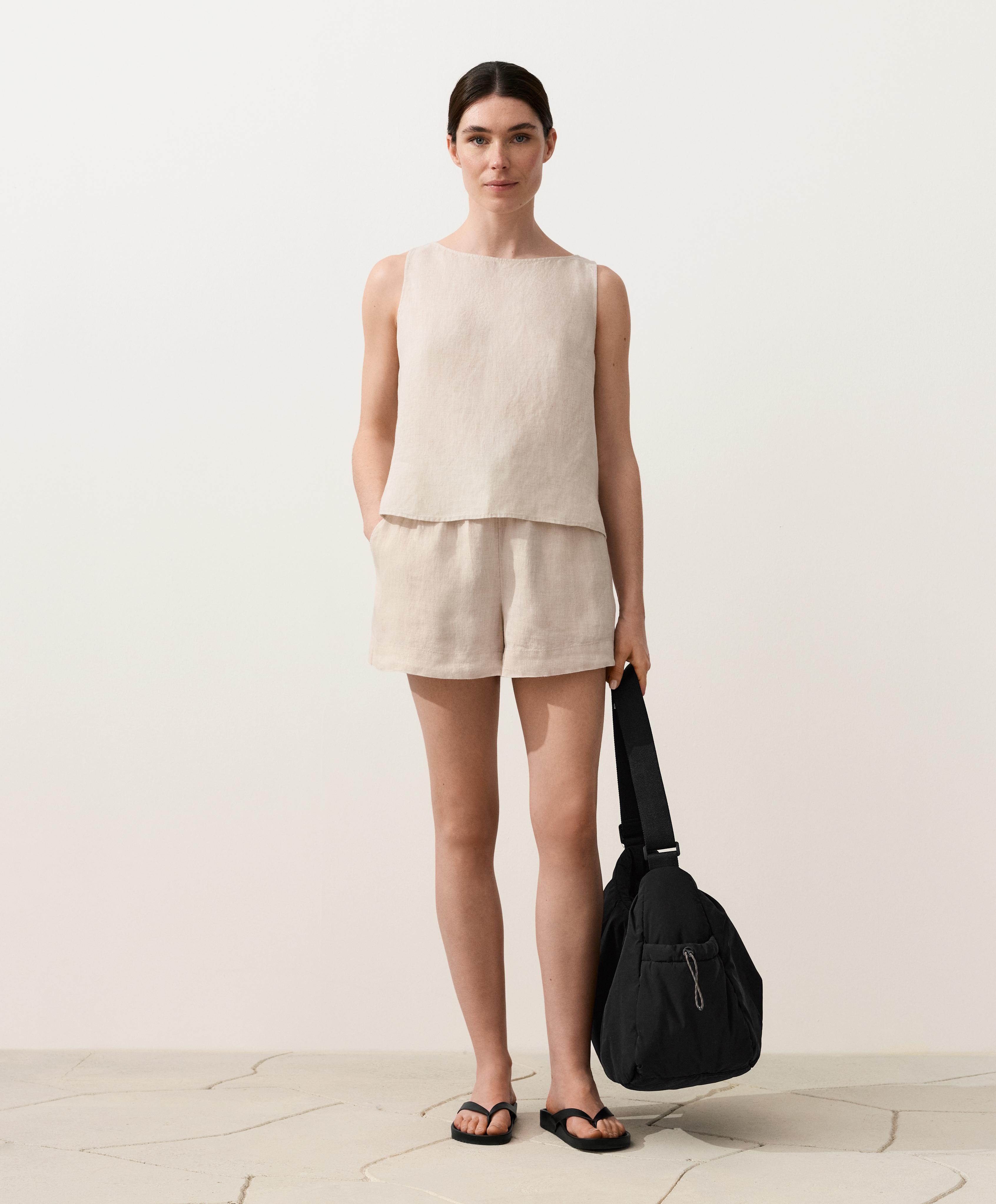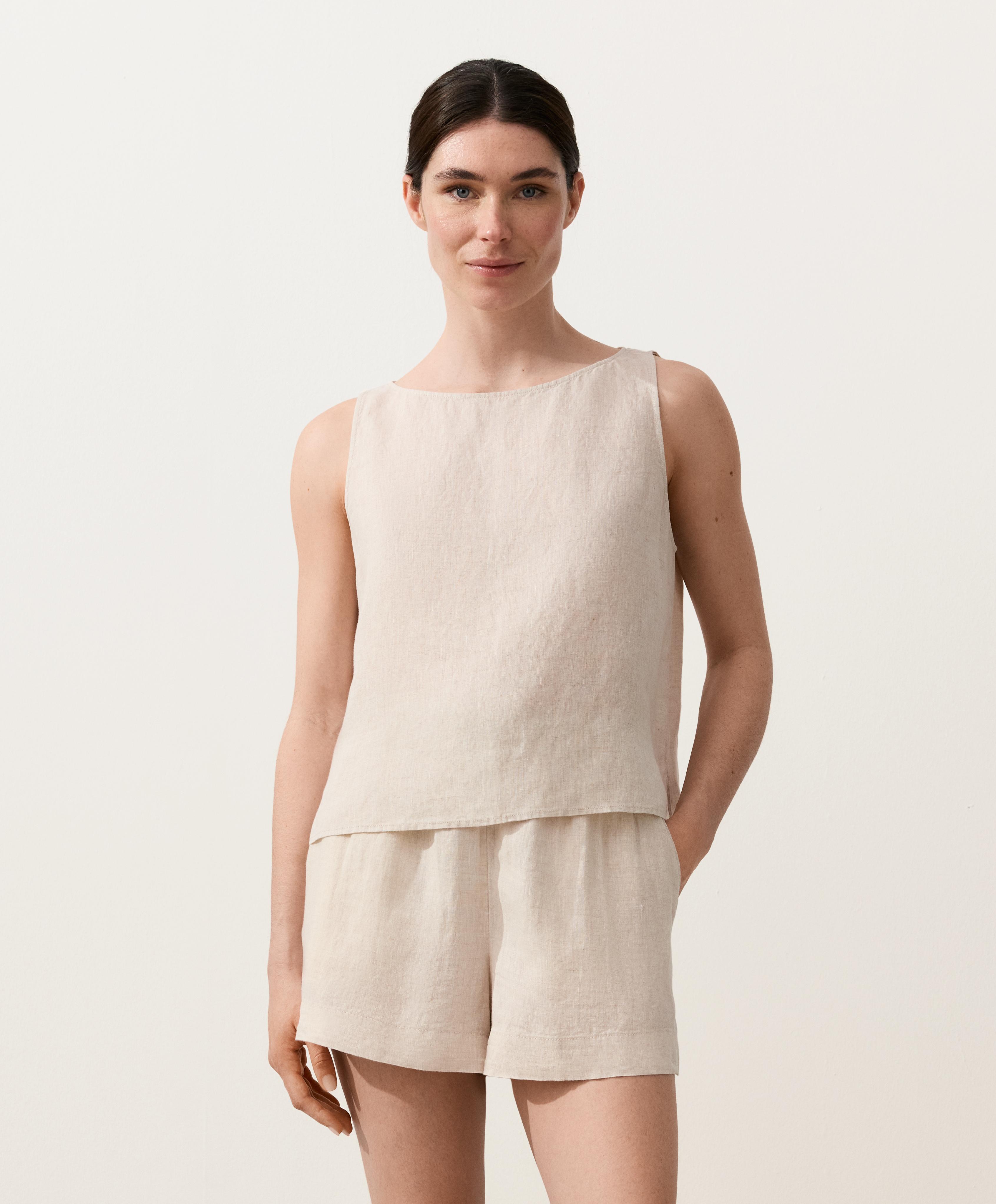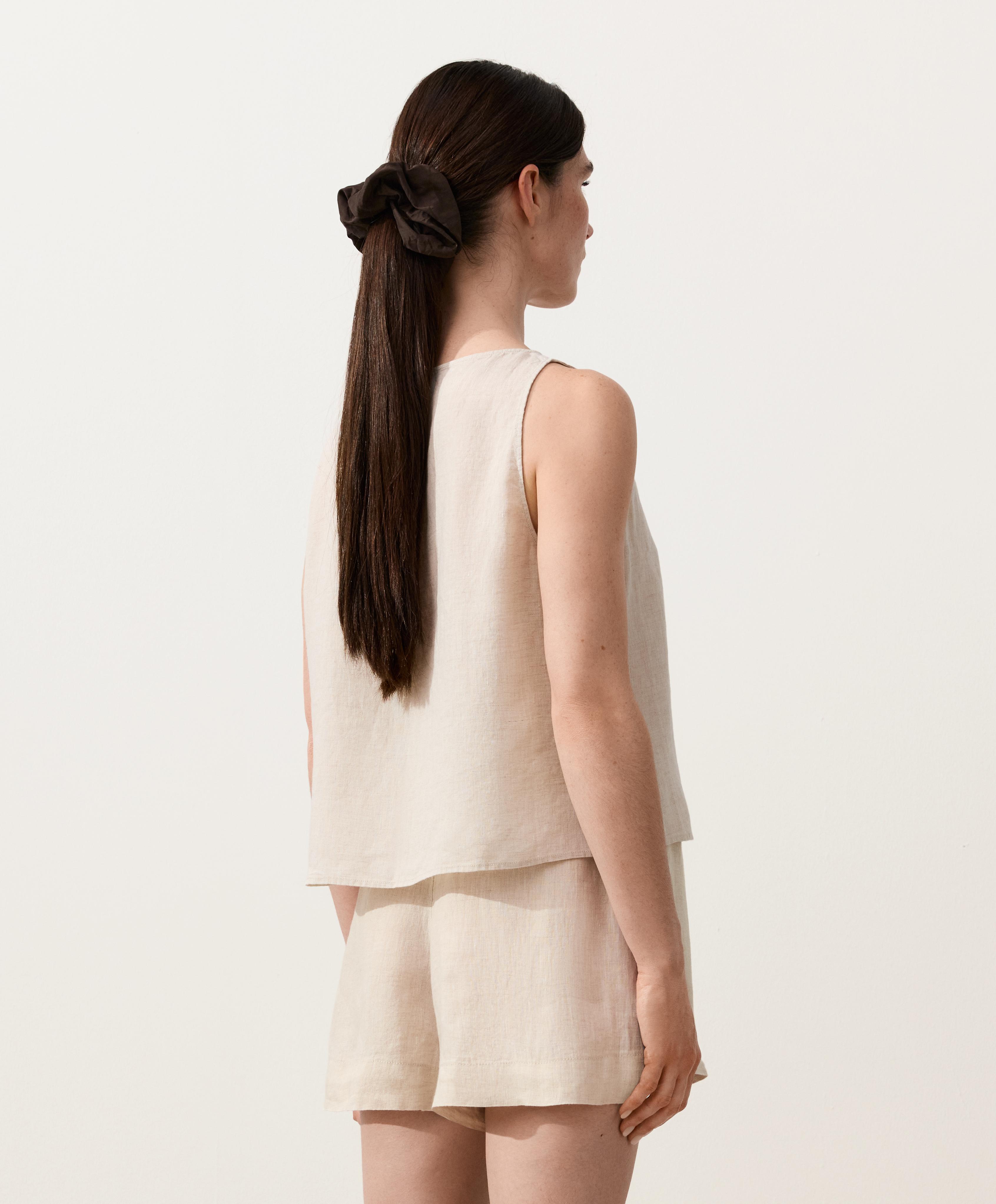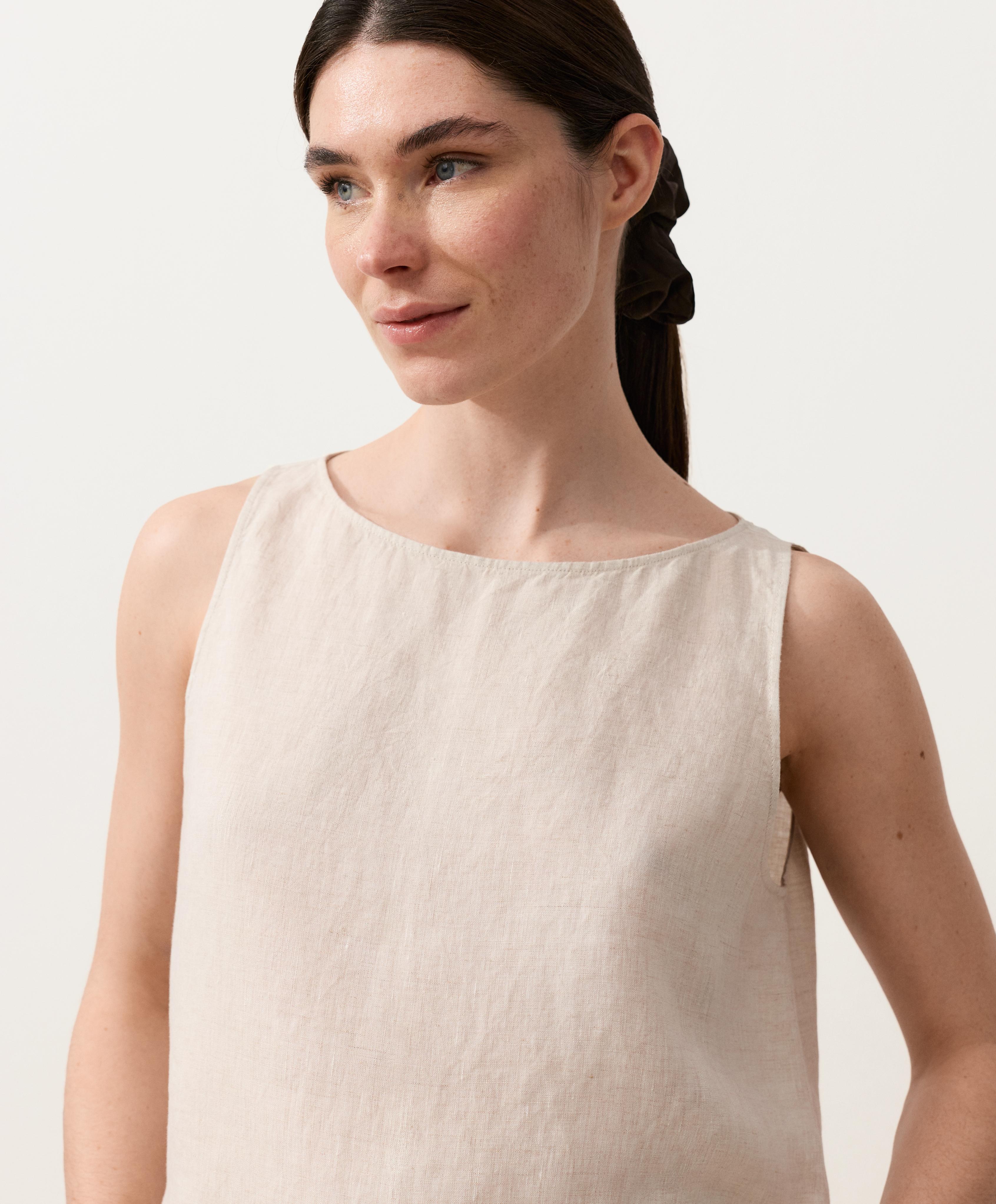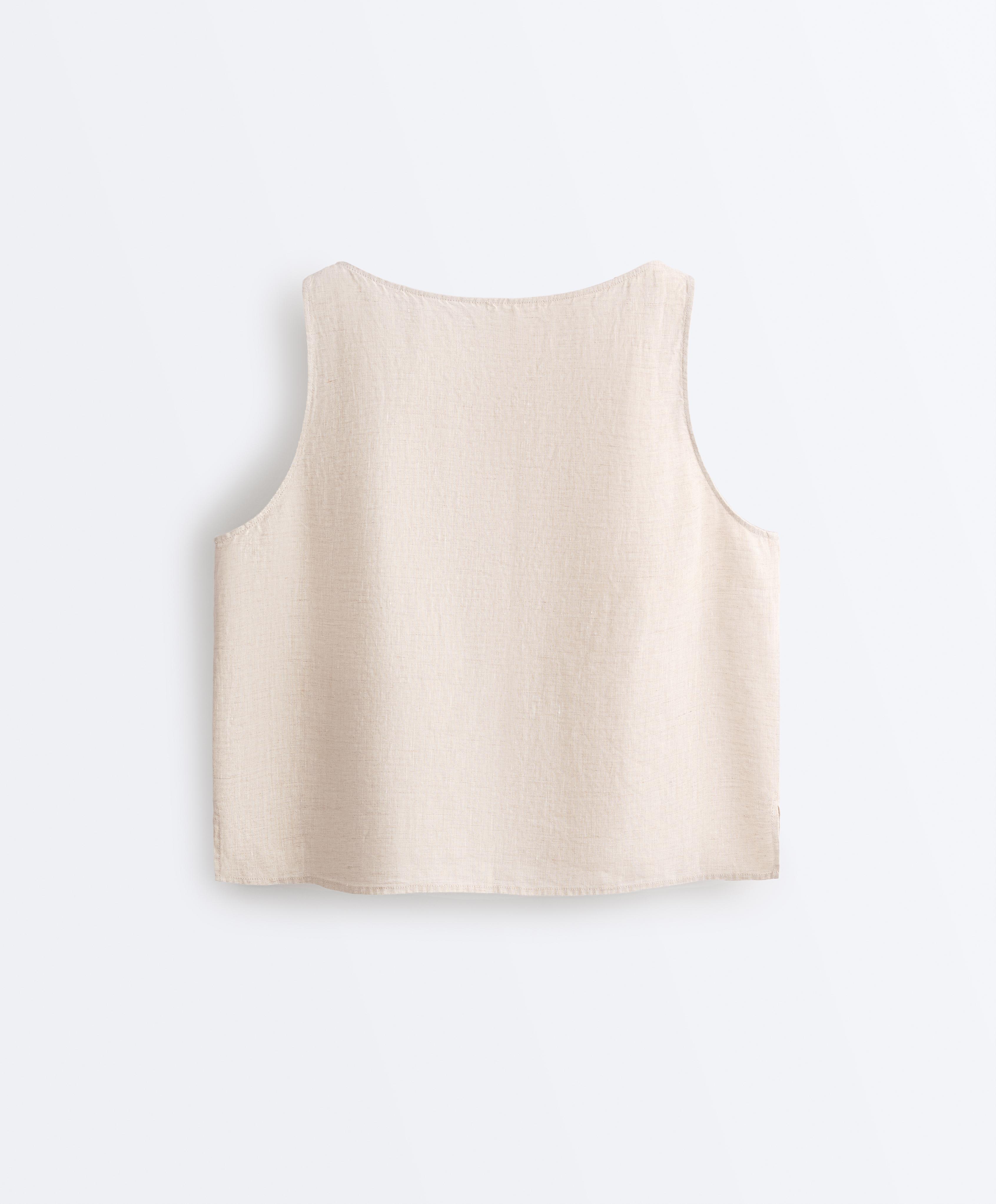 Топ без рукавов, изготовленный из 100% льняной ткани.