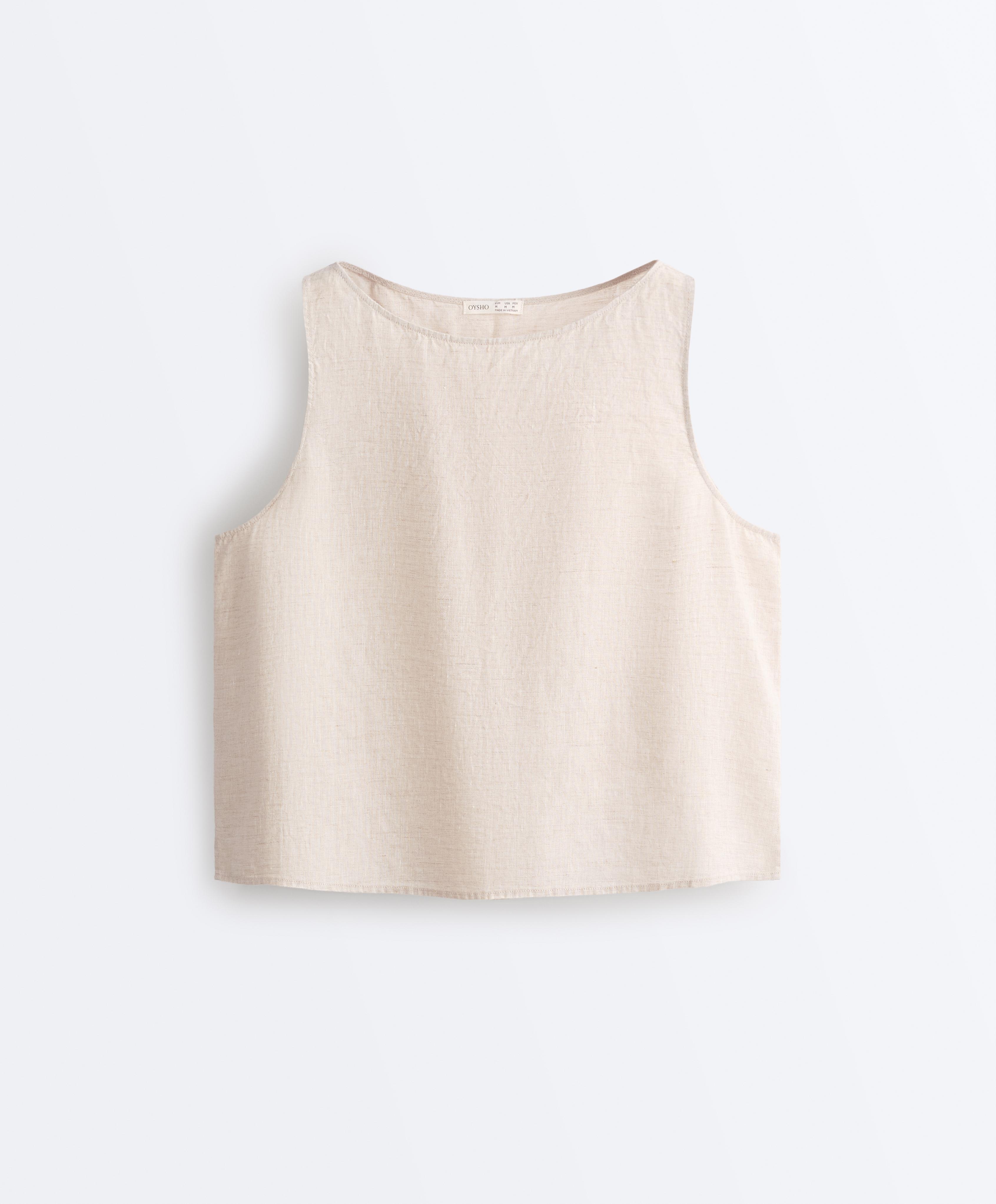 Oysho Топ из 100% льна, песочный меланж