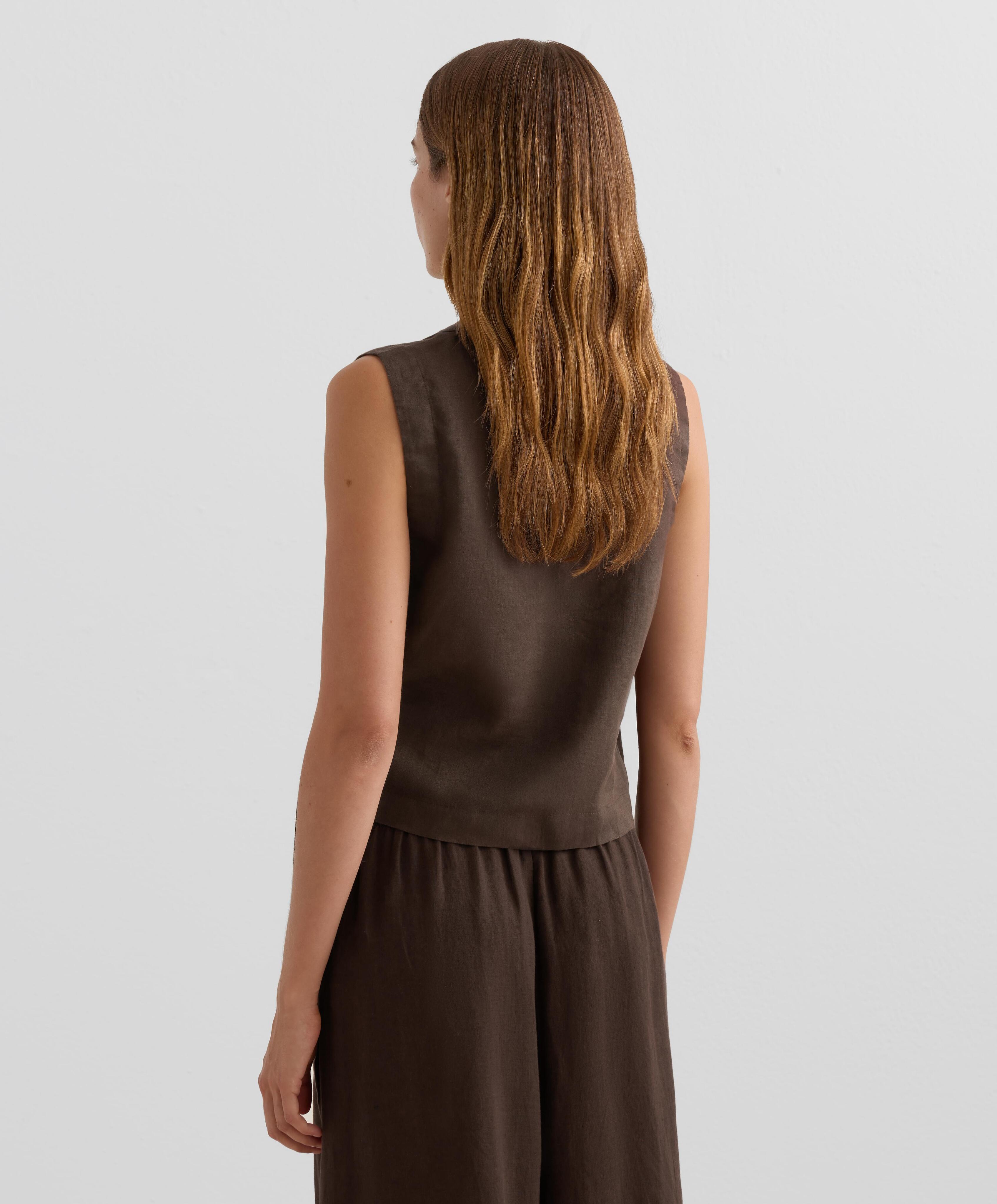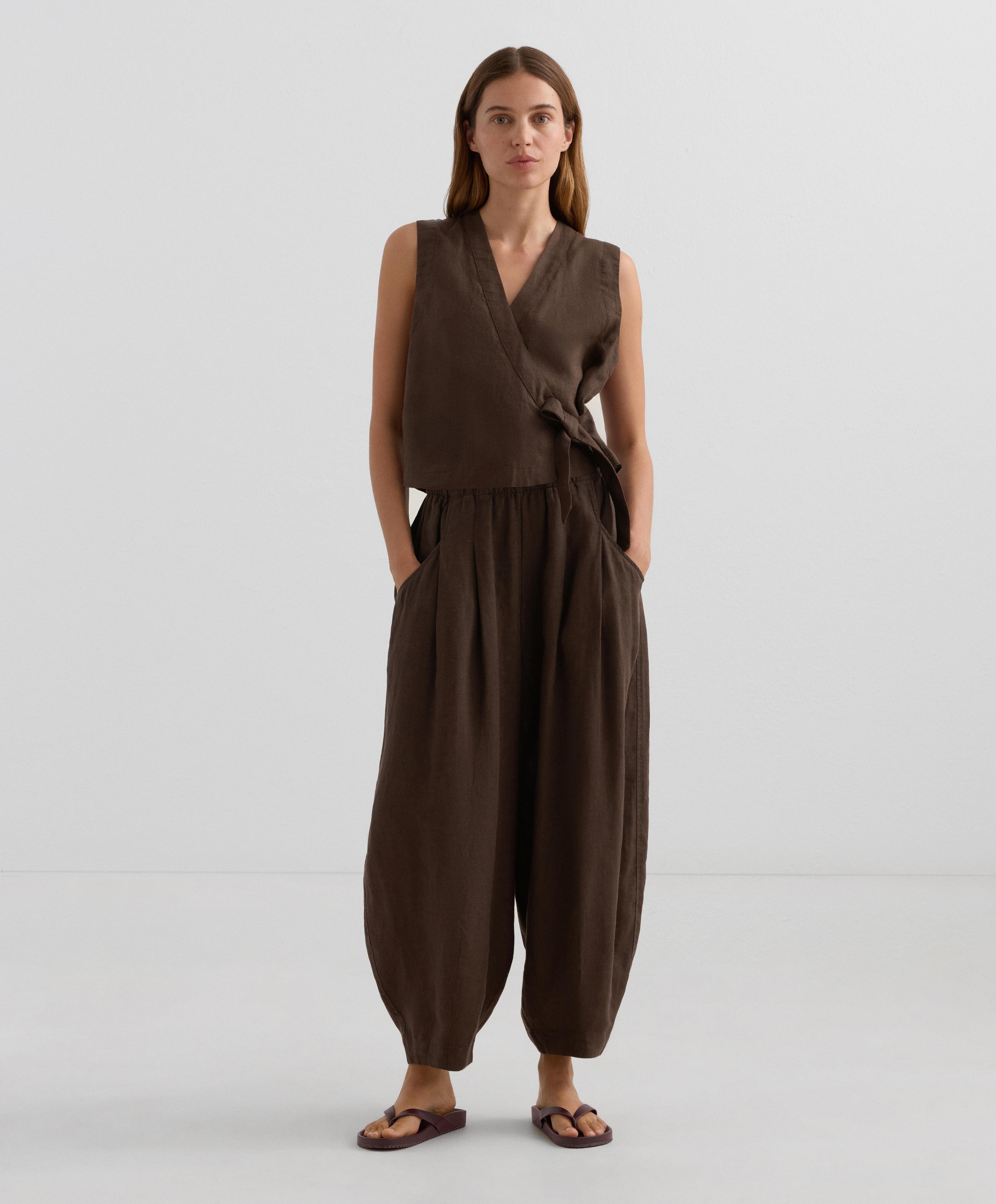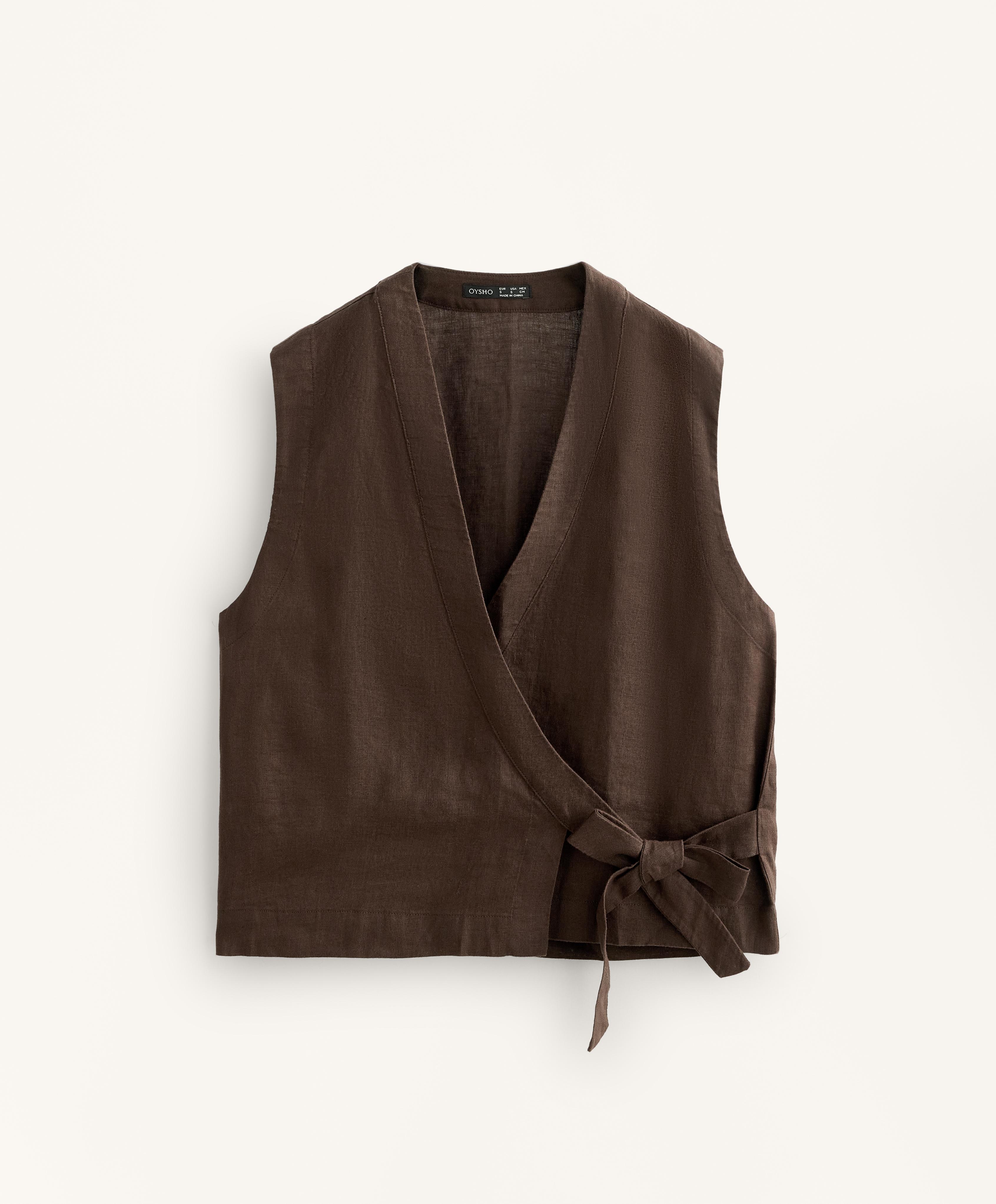 Oysho Топ из 100% льна с перекрестным кроем и завязками, темно-коричневый