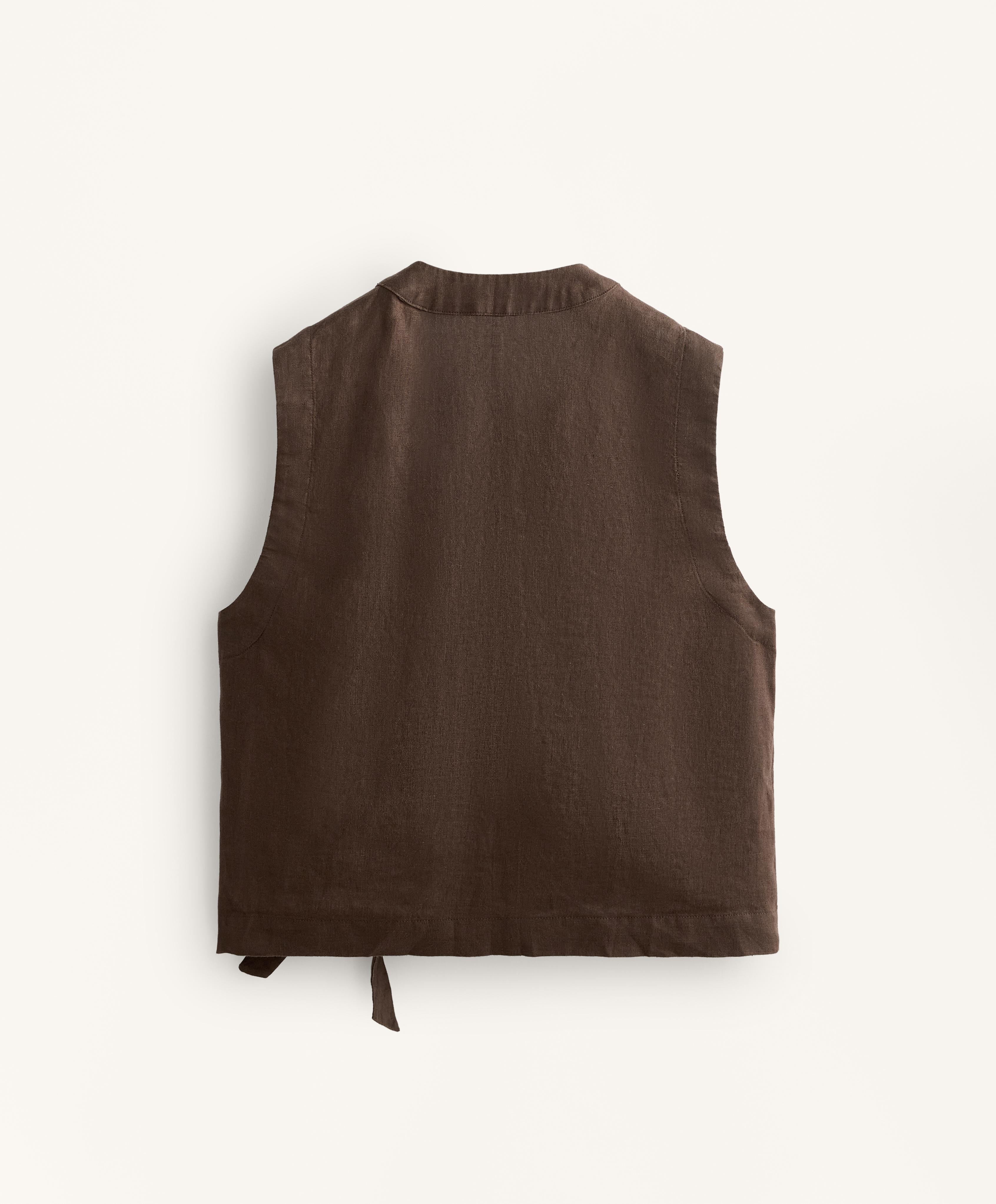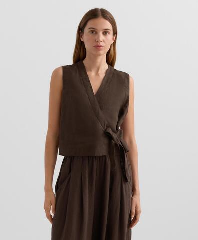 Топ на бретелях с перекрестной застежкой спереди и завязками. Материал: 100% лен.