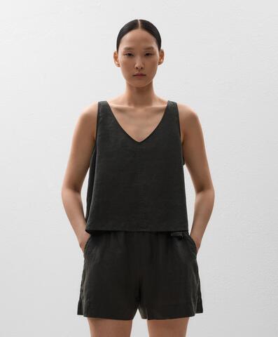 Топ без рукавов с V-образным вырезом. Ткань из 100% льна.