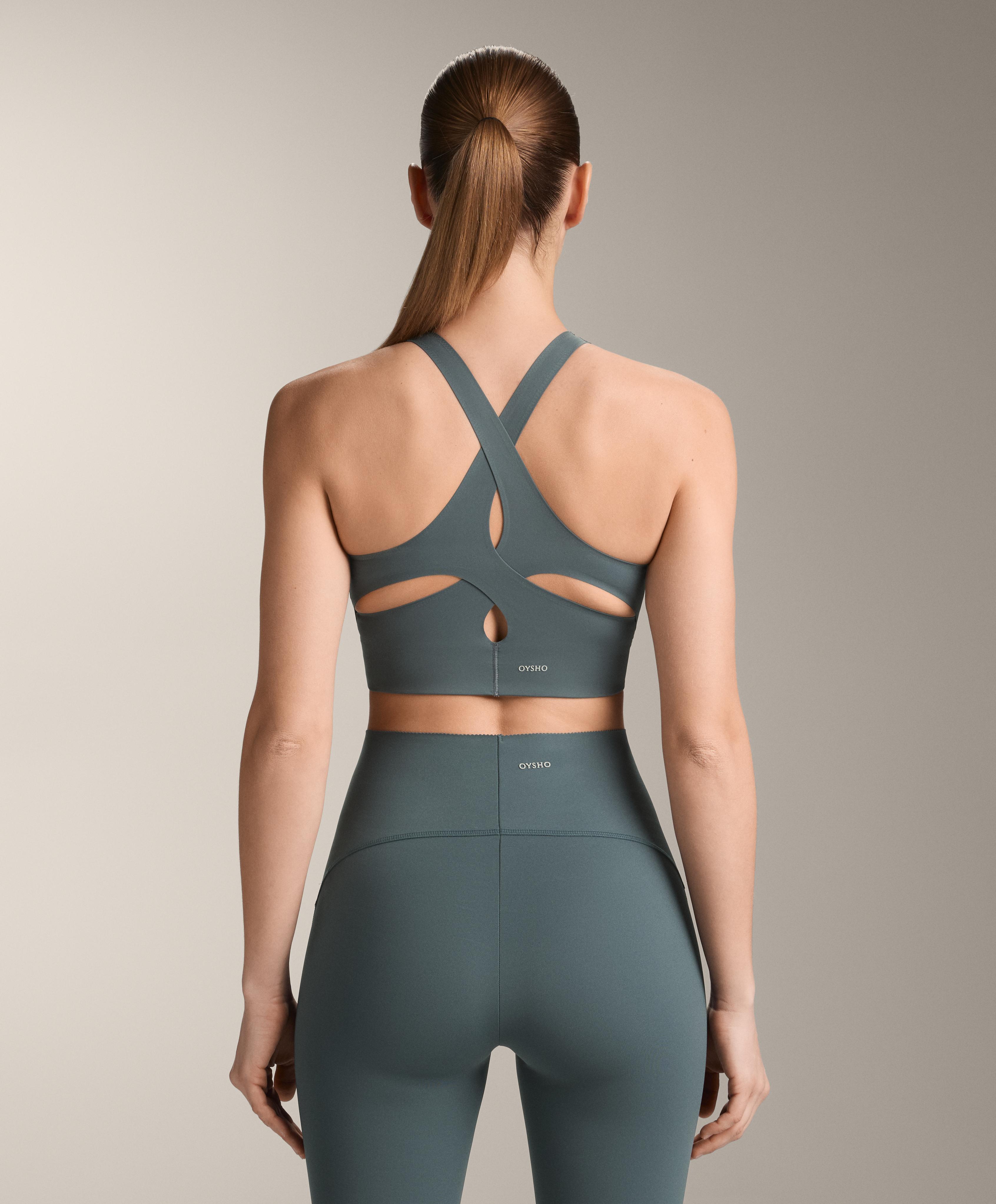 Oysho Топ Light Touch с перекрестной спинкой, серо-зеленый