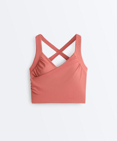 Oysho Топ-майка Comfortlux с перекрестными деталями, розоватый