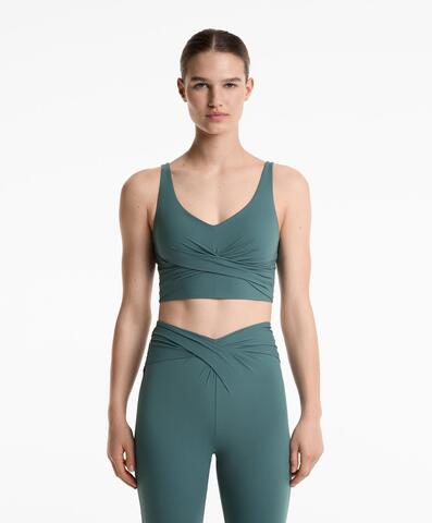 Oysho Топ-майка Light Touch с перекрестными деталями, зеленый
