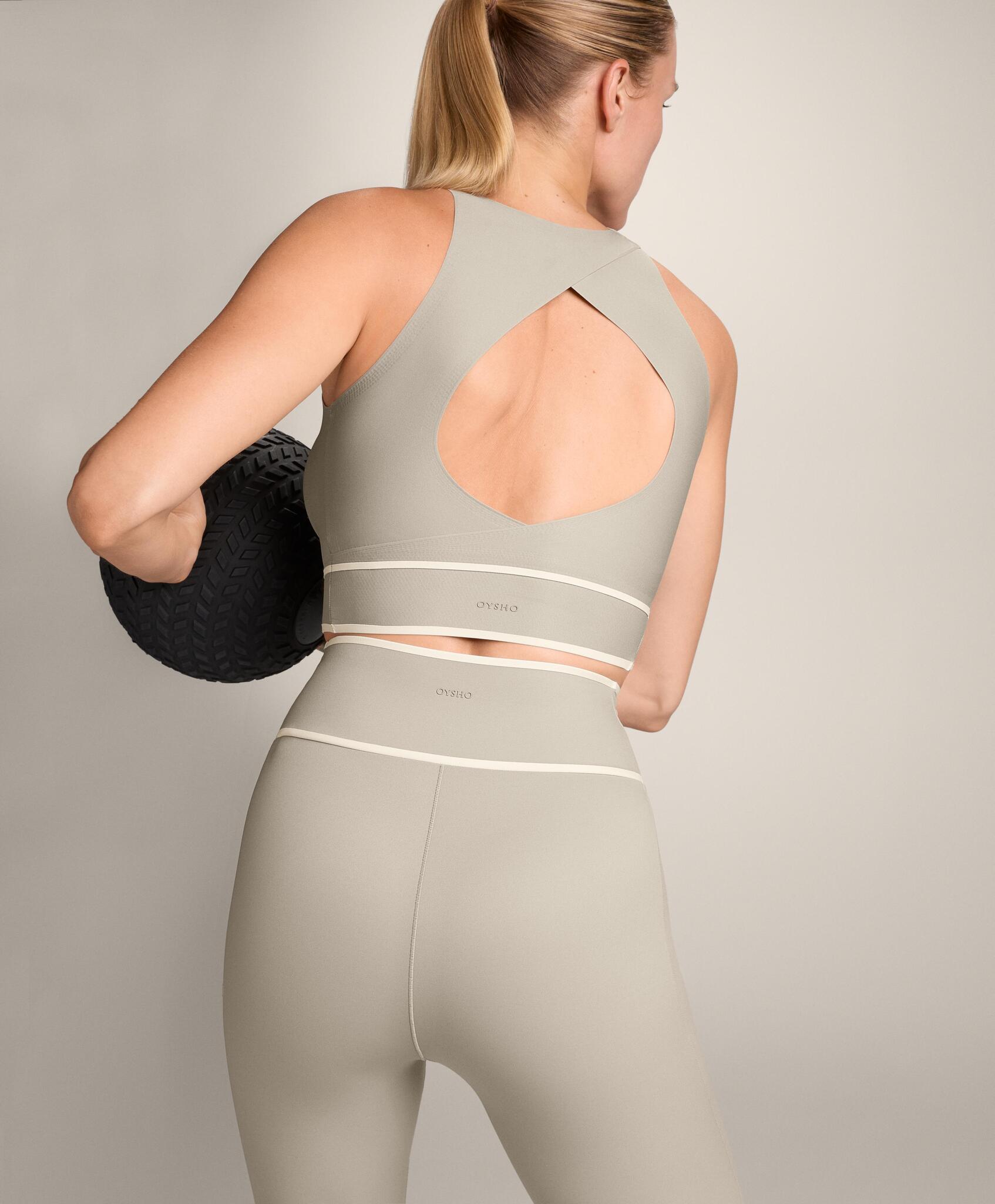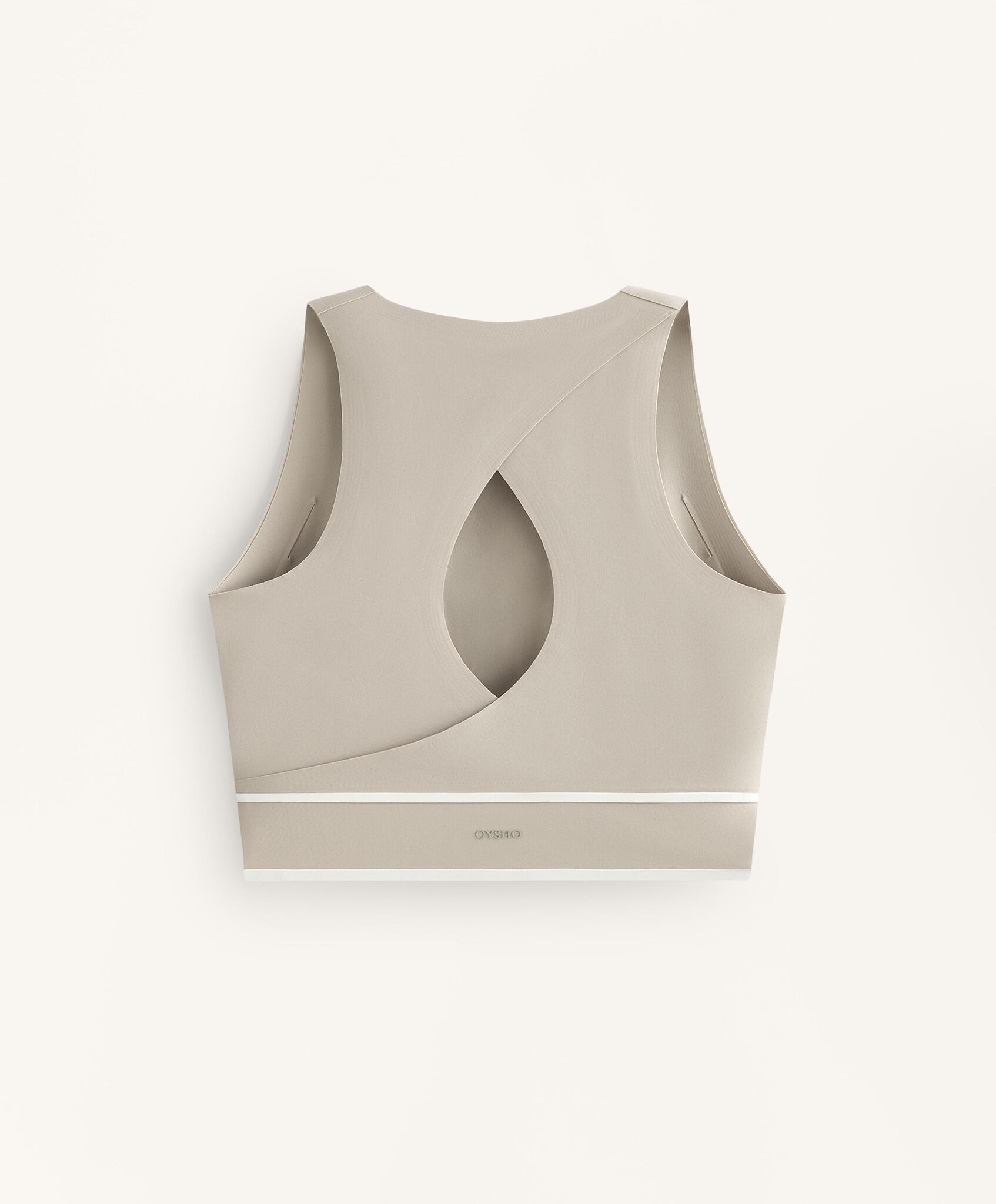 Майка со съемными чашечками для легкой коррекции фигуры. Контрастная деталь в нижней части. Дышащая, высокопрочная, быстросохнущая ткань.