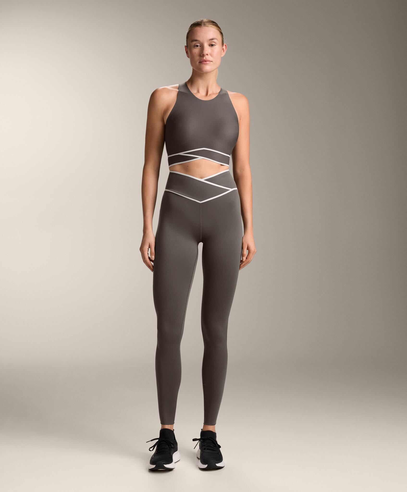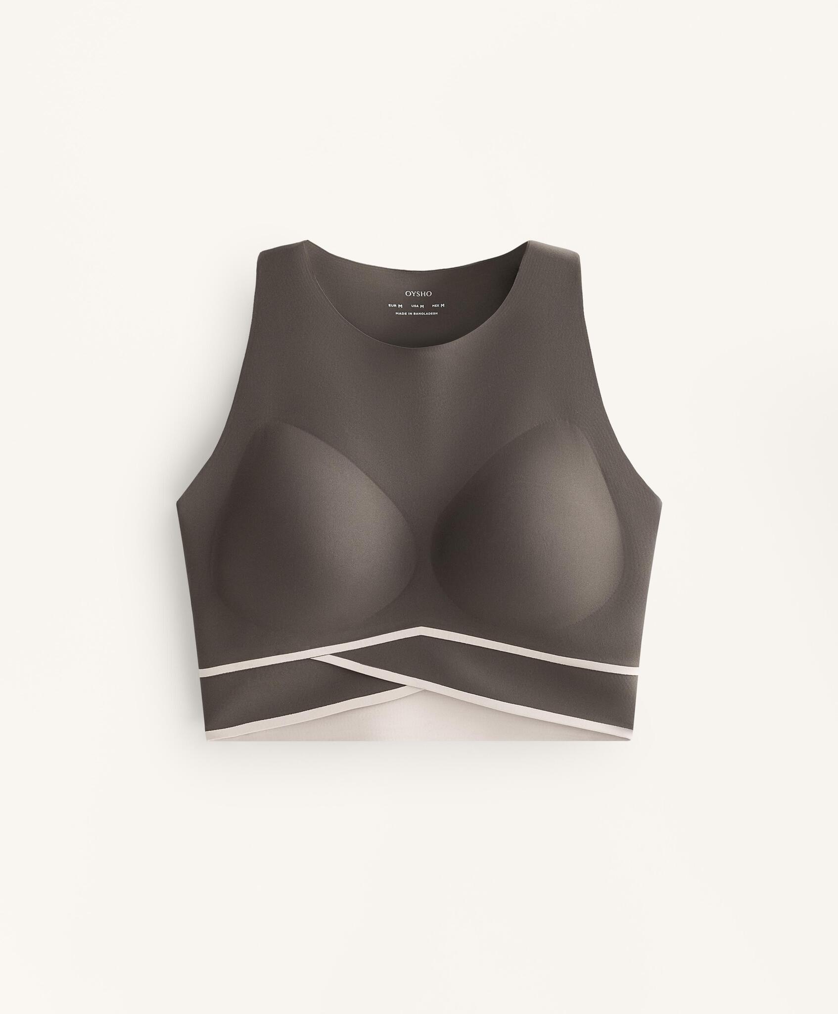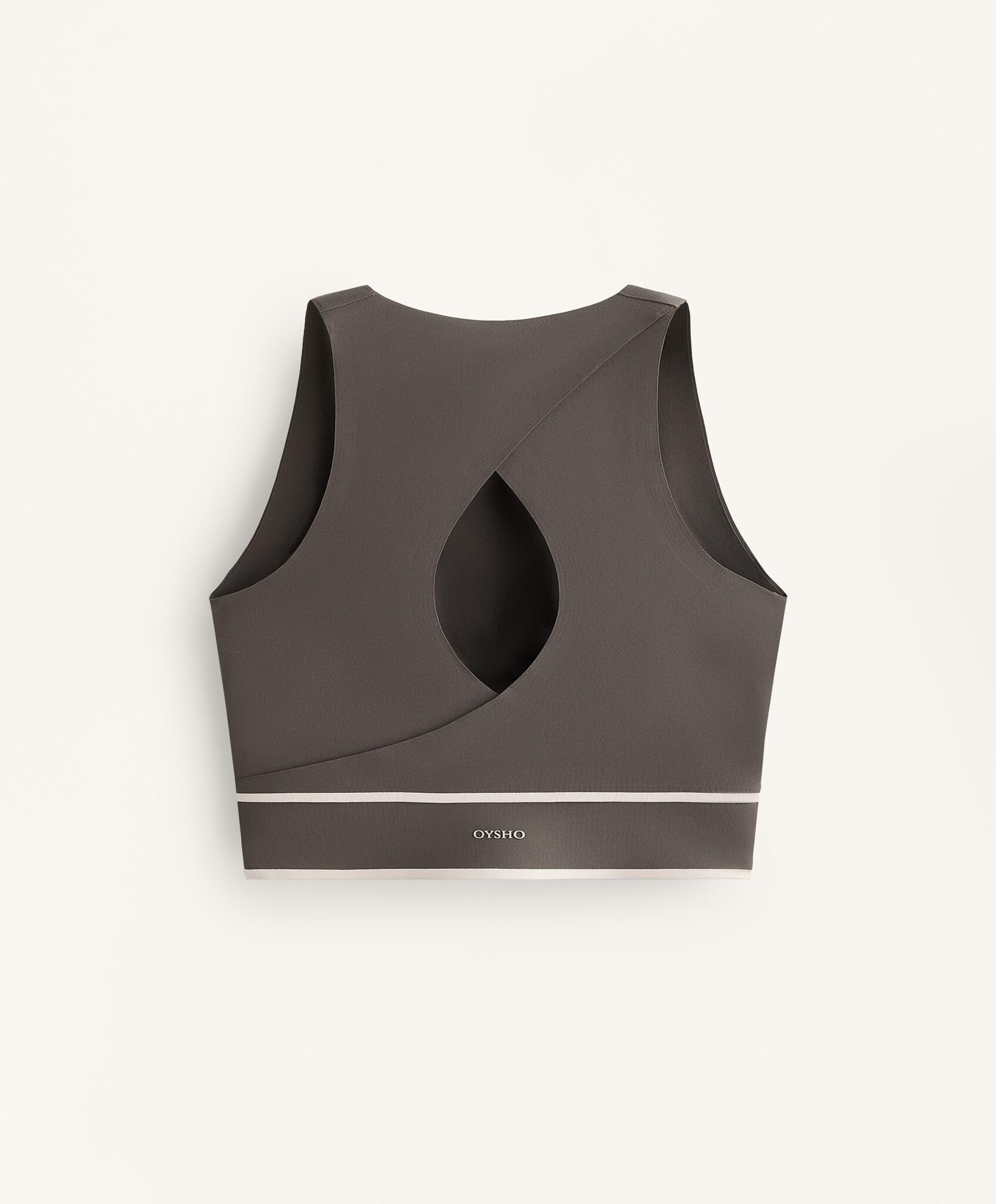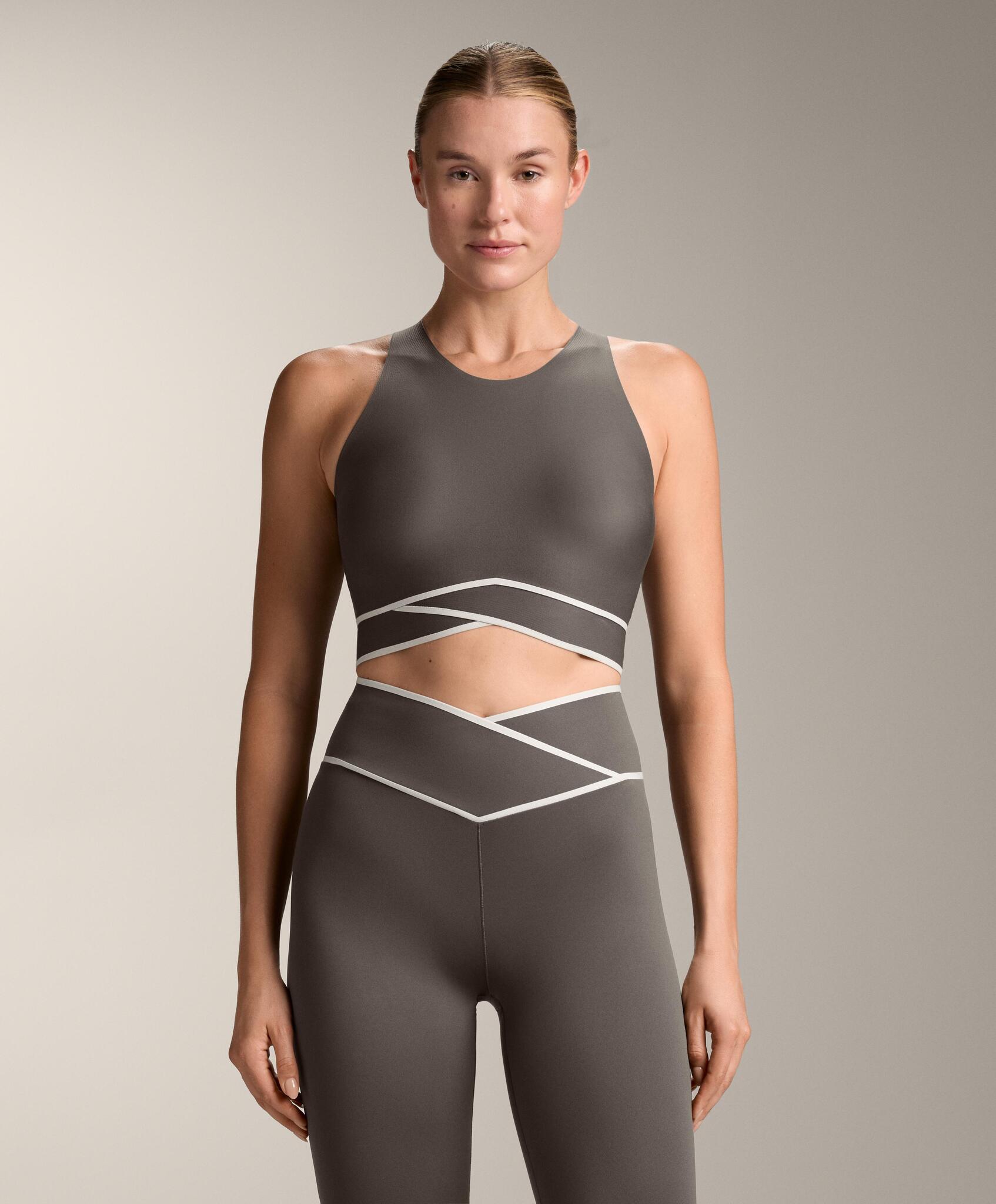 Майка со съемными чашечками для легкой коррекции фигуры. Контрастная деталь в нижней части. Дышащая, высокопрочная, быстросохнущая ткань.